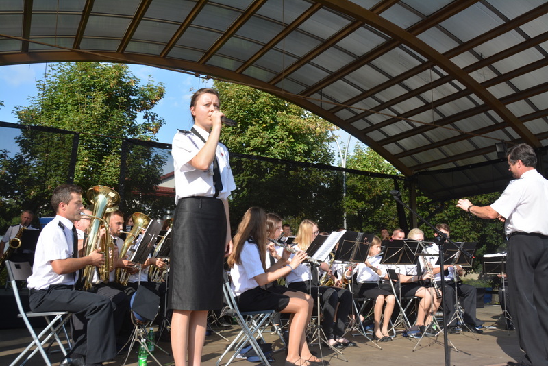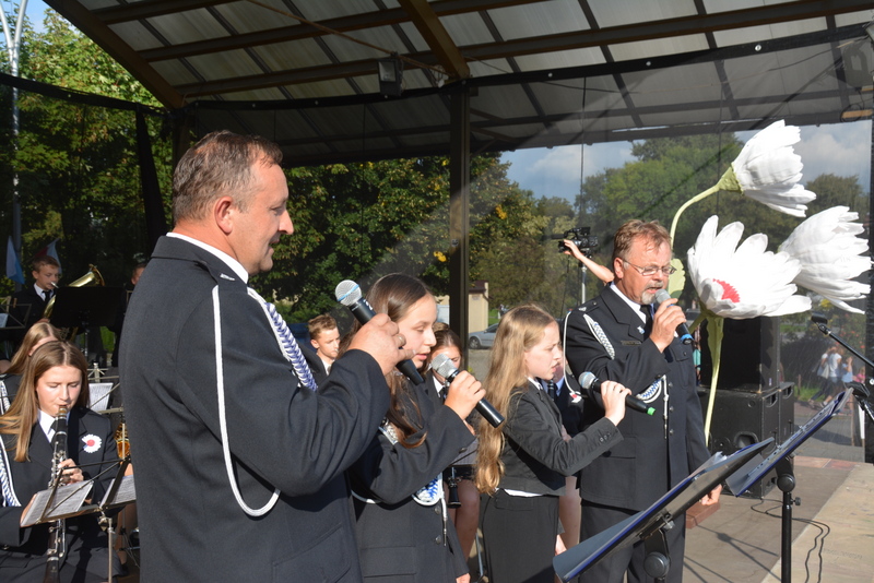 Jako pierwsza na estradzie zaprezentowała się brzeska orkiestra, która wykonała perfekcyjnie kilka utworów, m.in „My, pierwsza brygada”, ”Witaj majowa jutrzenko” oraz wiązankę melodii żołnierskich z lat 1917-1939. Kolejne prezentacje orkiestr poprzedzane były śpiewaczymi popisami Porębian i Jadowniczan. Mocne głosy naszych reprezentacyjnych zespołów znakomicie pobudziły publiczność do udziału we wspólnym śpiewaniu.