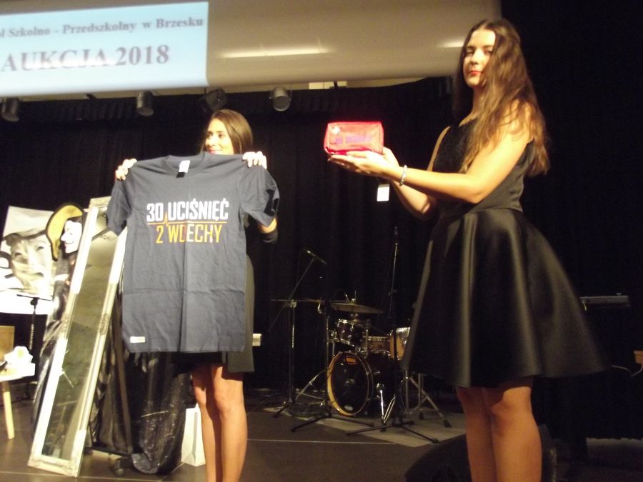 W akcję zaangażowali się brzescy i krakowscy przedsiębiorcy oraz przyjaciele szkoły, przekazując na jej rzecz wartościowe przedmioty, m.in. koszulki znanych sportowców z autografami, oryginalne stroje sportowe, rękodzieła, a także obrazy, m.in. grafiki Szymona Kobylińskiego czy brzeskiej artystki Marty Gardziel. Licytacja przeplatana była występami znanych absolwentów szkoły - Jędrzeja Rosy, Franciszka Podłęckiego, Darii Nalepy, Krzysztofa Musiała oraz występami obecnych uczniów szkolnego koła teatralnego „Stonoga”. Na zakończenie rozbawiał publiczność brzeski kabaret „Sprawa Drugorzędna”, który przygotował na tę okoliczność specjalny program artystyczny.