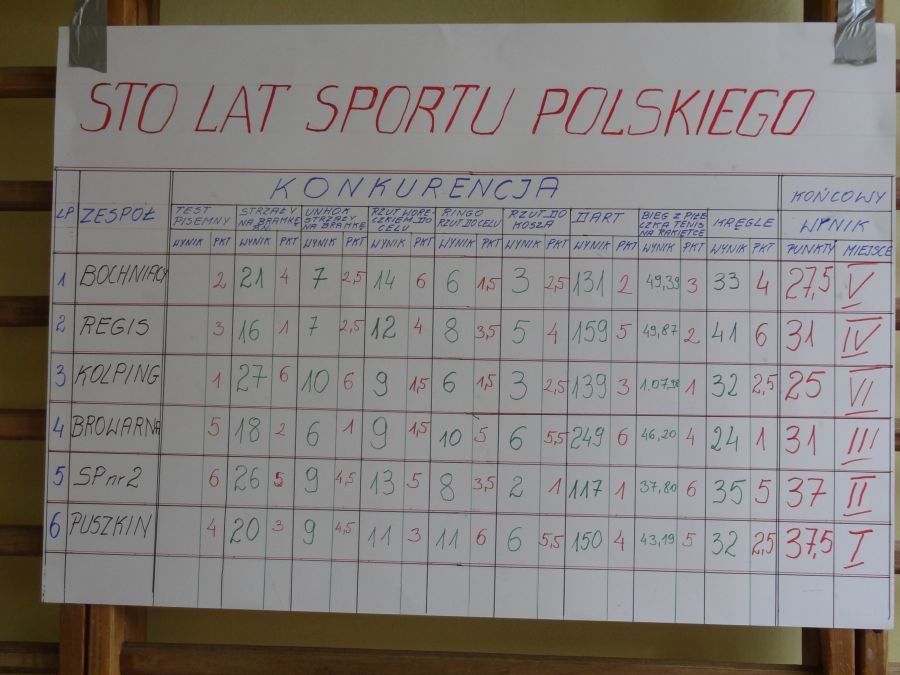 W zawodach brało udział sześć drużyn – Bochniacy, Regis, Kolping, Browarna, SP nr 2, Puszkin , ich nazwy to miejsca, gdzie seniorzy spotykają się i wspólnie uprawiają sport. Rozegrano kilka konkurencji, między innymi rzuty do bramki, unihokej, rzuty do celu, dart, kręgle. Zawodniczki – bo tych była zdecydowana większość (w rozgrywkach wzięło udział tylko dwóch panów) z wielkim zaangażowaniem starały się zdobywać dla swoich drużyn jak największą liczbę punktów, a zabawy było przy tym co nie miara.