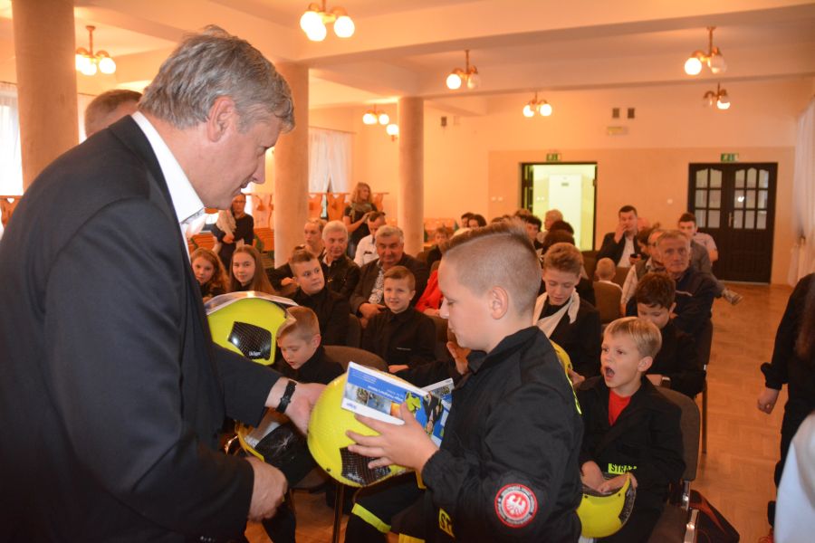 Dziecięca Drużyna Pożarnicza z Poręby Spytkowskiej jest jedną z dwóch tego typu formacji strażackich działających w gminie Brzesko. Niedawno najmłodsi strażacy z Jadownik otrzymali dziesięć kompletów umundurowania, a teraz burmistrz Grzegorz Wawryka wręczył hełmy członkom DDP z Poręby Spytkowskiej.