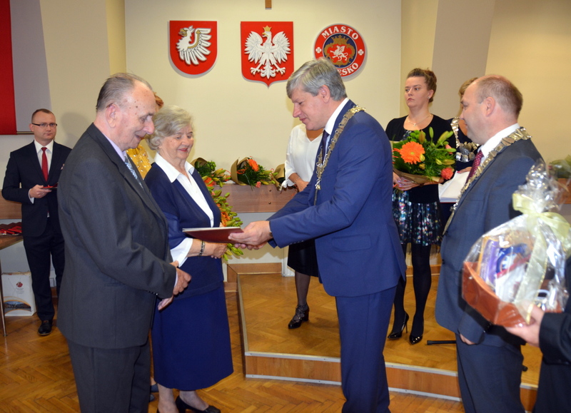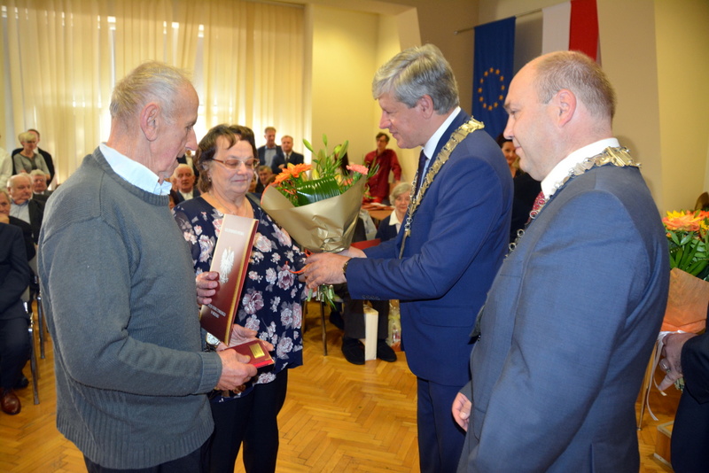 -Mam wielki zaszczyt gościć szanownych jubilatów, którzy w zdrowiu i chorobie, szczęściu i nieszczęściu przeżyli ze sobą pół wieku. Dowodzi to wielkiej miłości, ale także przyjaźni, wyrozumiałości i uczciwości. Życzę państwu dalszych lat życia w zdrowiu i pomyślności – mówił w czasie uroczystości burmistrz Grzegorz Wawryka.