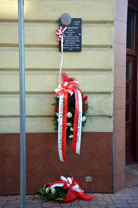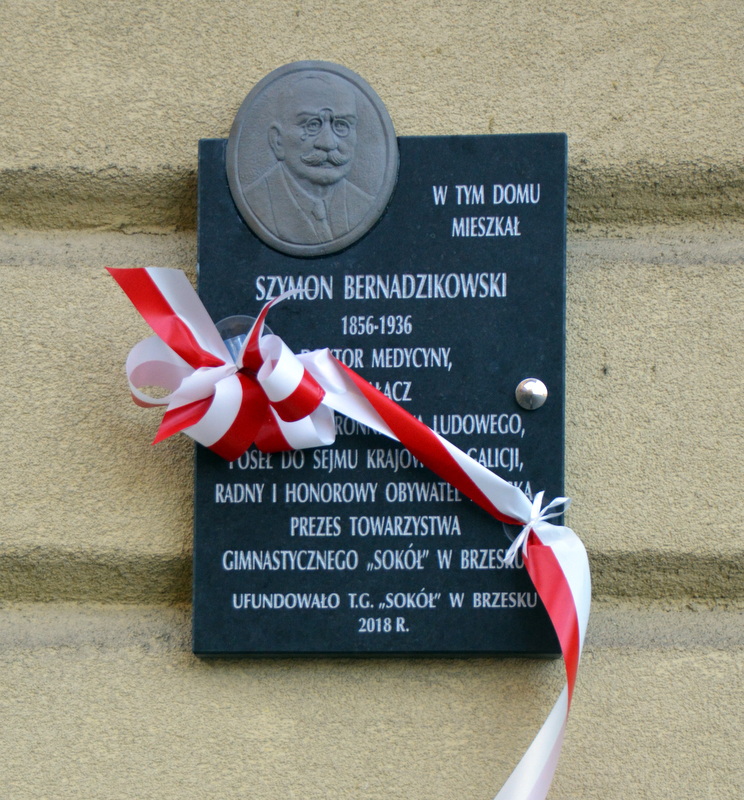 Brzeskie obchody święta niepodległości rozpoczęły się odsłonięciem i poświęceniem tablic upamiętniających znanych mieszkańców Brzeska, którzy złotymi zgłoskami zapisali się w jego historii. Przy ulicy Mickiewicza odsłonięto tablice Jana Władysława Brzeskiego - doktora medycyny, wieloletniego burmistrz Brzeska, radnego i honorowego obywatela miast, prezesa Towarzystwa Gimnastycznego „Sokół” oraz Szymona Bernadzikowskiego - doktora medycyny, działacza Polskiego Stronnictwa Ludowego, posła do Sejmu Krajowego Galicji, radnego i honorowego obywatela Brzeska, prezesa Towarzystwa Gimnastycznego „Sokół”. Tablice odsłonięto staraniem i nakładem Towarzystwa Gimnastycznego „Sokół” z prezesem Ludwikiem Lechowiczem na czele. 11 listopada uroczyście odsłonili je przedstawiciele „Sokoła”, burmistrz Grzegorz Wawryka i potomkowie znamienitych Brzeszczan.