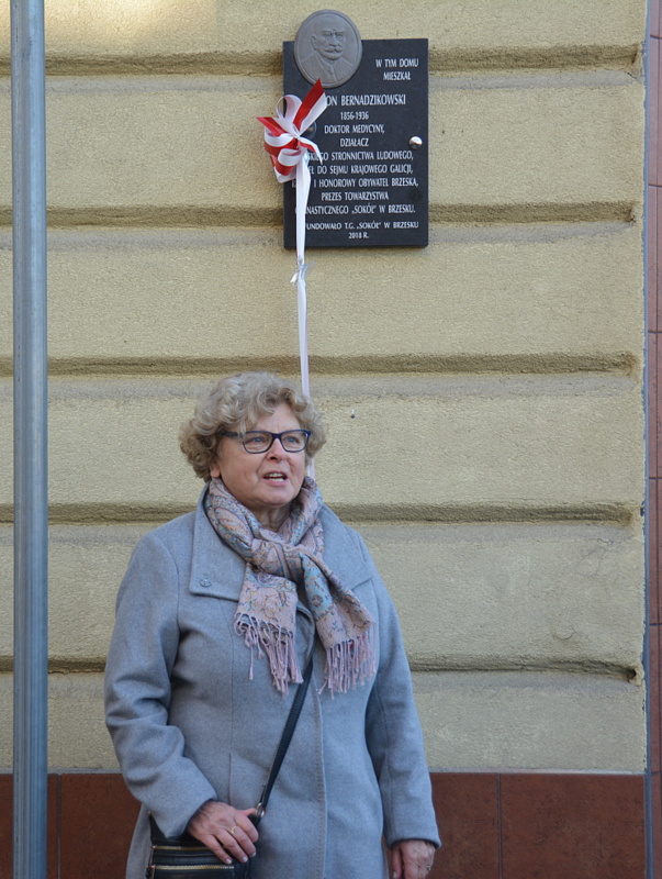 Anna Niżogorodcew, Andrzej Turnau, Krzysztof Bogdanowicz i Maria Filipowska brali udział w osłonięciu tablicy swojego znakomitego przodka – Szymona Bernadzikowskiego. Umieszczona ona została na ścianie dawnego domu Bernadzikowskich przy ulicy Mickiewicza 2, na skrzyżowaniu z ulicą Krótką. Szymon Bernadzikowski urodził się 20 listopada 1856 roku w Lipnicy Murowanej, gdzie ukończył szkołę powszechną i gimnazjum. Studia podjął w wydziale medycznym Uniwersytetu Jagiellońskiego, po ich zakończeniu wrócił do rodzinnej miejscowości, gdzie rozpoczął praktykę lekarską. Przez rok 1891 pastował urząd burmistrza Lipnicy, zaangażował się także w działalność galicyjskiego ruchu ludowego. W 1895 roku został delegatem Polskiego Stronnictwa Ludowego na zjazd krajowy, w tym samym roku wybrany został posłem Sejmu Krajowego, funkcję tę sprawował dwie kadencje. W sejmie wybrany został członkiem Rady Naczelnej PSL, a w 1903 roku jednym z jego wiceprezesów. Na stanowisku tym pozostał do czasów wybuchu I wojny światowej. W 1911 roku stanął na czele resortu zdrowia w Wydziale Krajowym. Organizował szpitale, tworzył miejsca pracy dla lekarzy na wsiach i w małych miasteczkach, w 1914 roku otrzymał tytuł honorowego obywatela Brzeska. W okresie wojny przebywał w Wiedniu, gdzie organizował pomoc medyczną. Po powrocie do Brzeska podjął działania mające na celu zjednoczenie ruchu ludowego. W związku z problemami zdrowotnymi wycofał się z życia politycznego. Do 3 września 1936 roku, czyli do dnia swojej śmierci prowadził praktykę medyczną. Szymon Bernadzikowski był również wybitnym obywatelem miasta, przez wiele lat pełnił funkcję radnego rady miejskiej i powiatowej, dbał o rozwój gospodarczy, społeczny oraz oświatowy miasta, włączył się w działalność TG „Sokół”, którego przez wiele lat był prezesem.