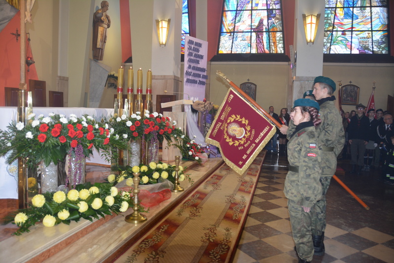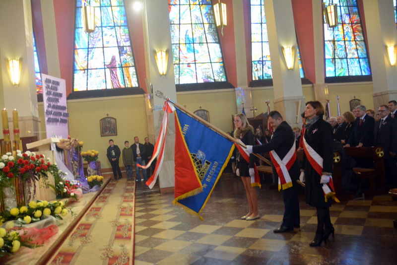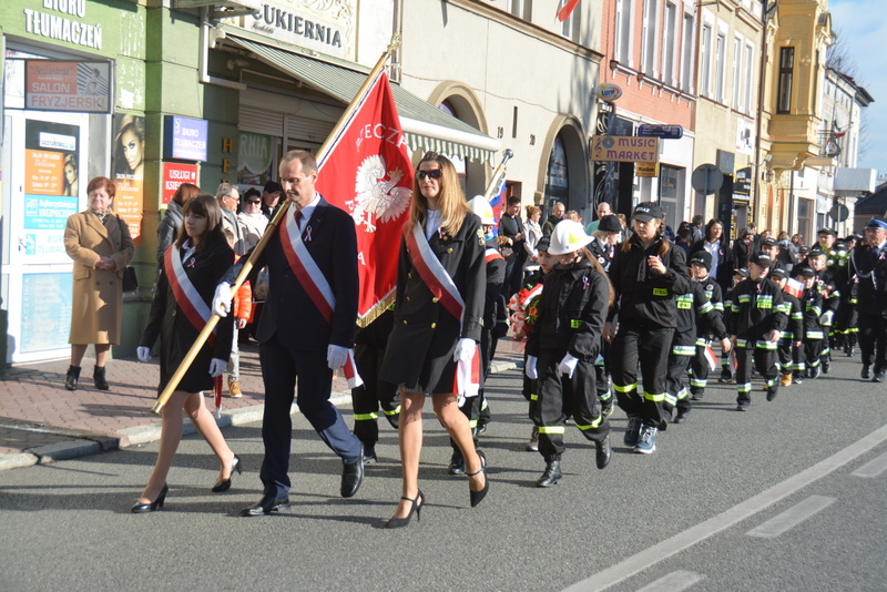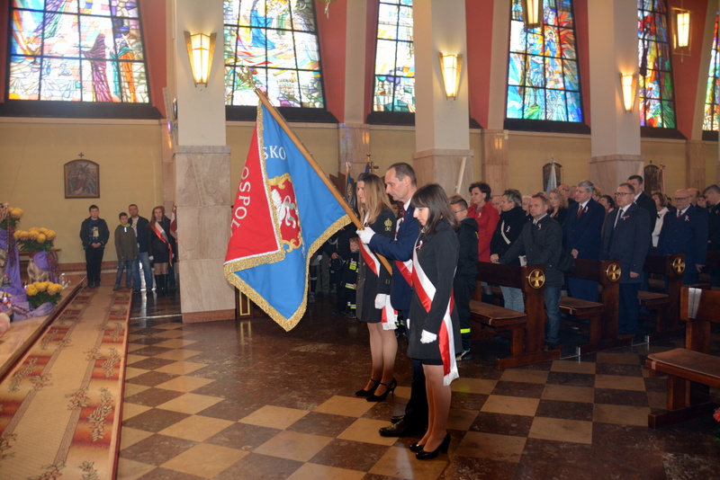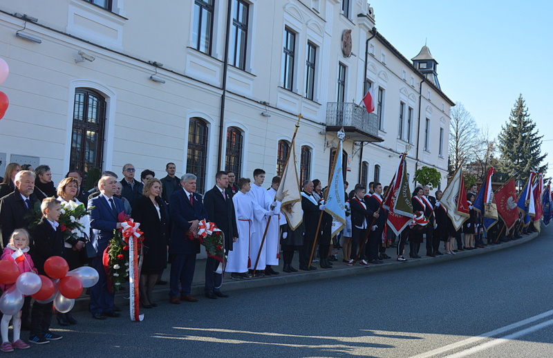 O godzinie 10.00 przed budynkiem urzędu miejskiego rozpoczęła się zbiórka mieszkańców, delegacji i pocztów sztandarowych, które następnie przeszły do sanktuarium pod wezwaniem świętego Jakuba Apostoła. Tam, w intencji Ojczyzny odprawiona została uroczysta msza święta koncelebrowana pod przewodnictwem księdza kustosza Józefa Drabika.
