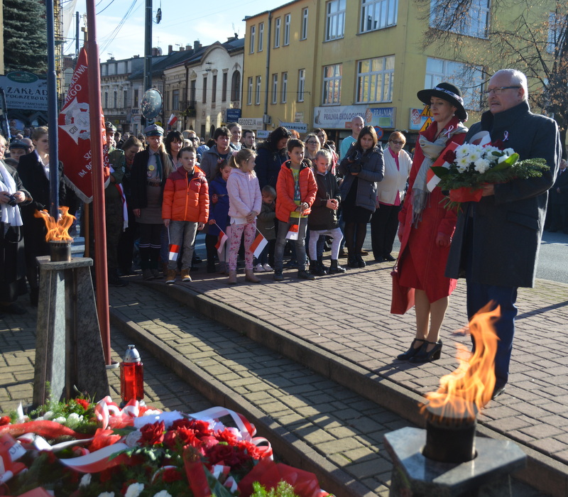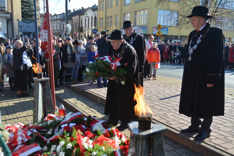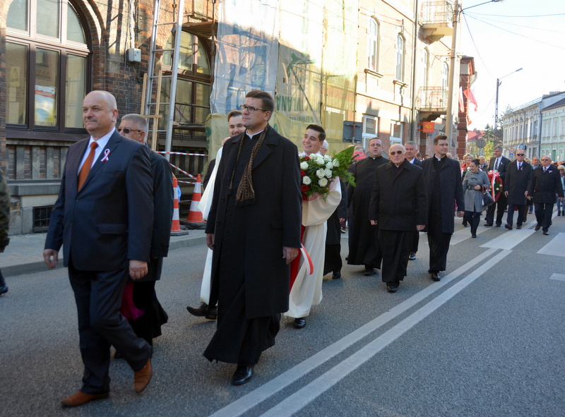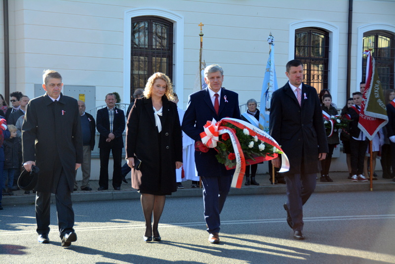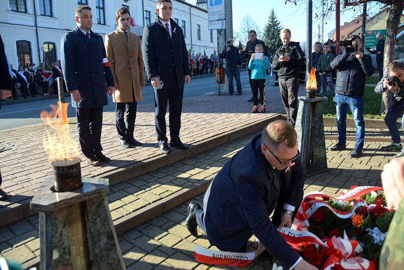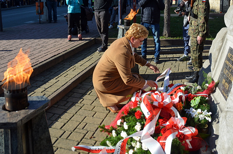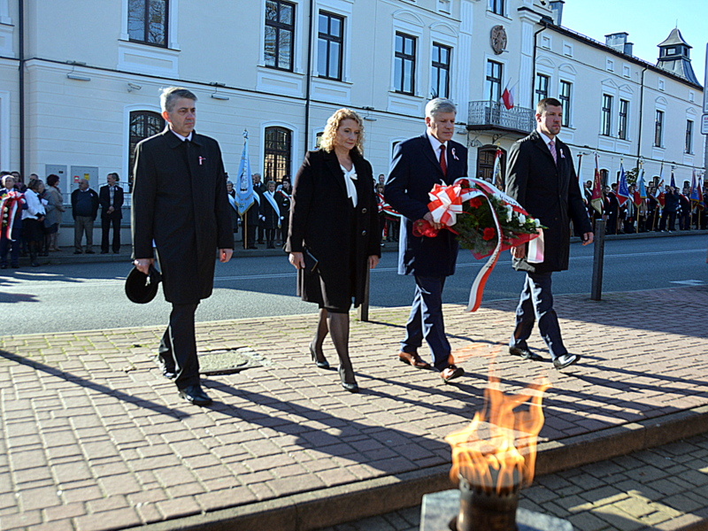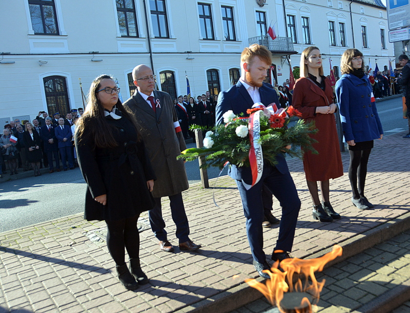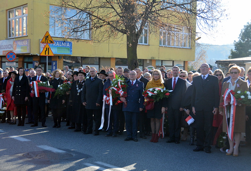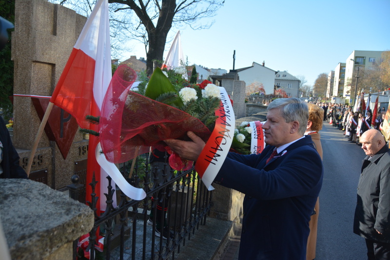 Burmistrz Grzegorz Wawryka, burmistrz elekt Tomasz Latocha oraz poseł Józefa Szczurek-Żelazko i europoseł Edward Czesak złożyli również kwiaty na grobie pomordowanych w hitlerowskich więzieniach i obozach zagłady. Po przemarszu na Plac Kazimierza Wielkiego pocztów i delegacji nastąpiło zakończenie oficjalnej części obchodów Święta Niepodległości.