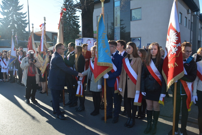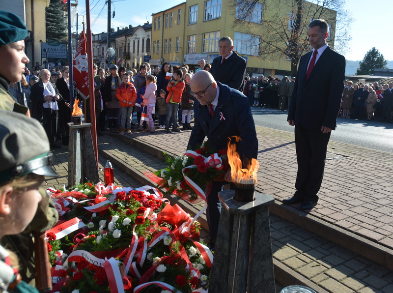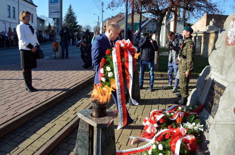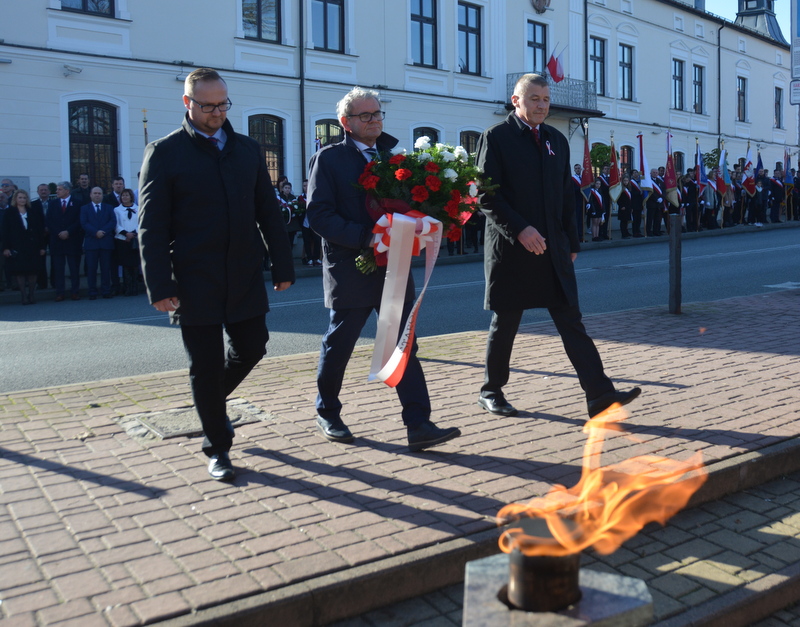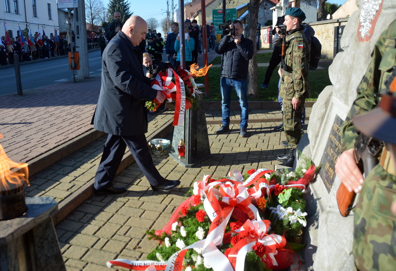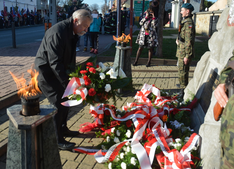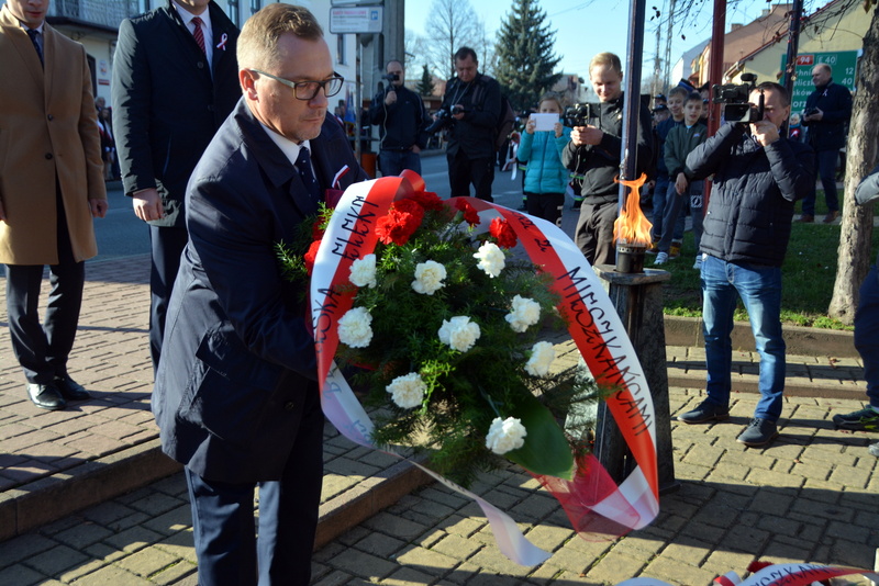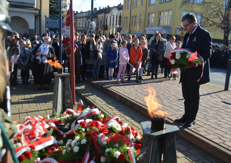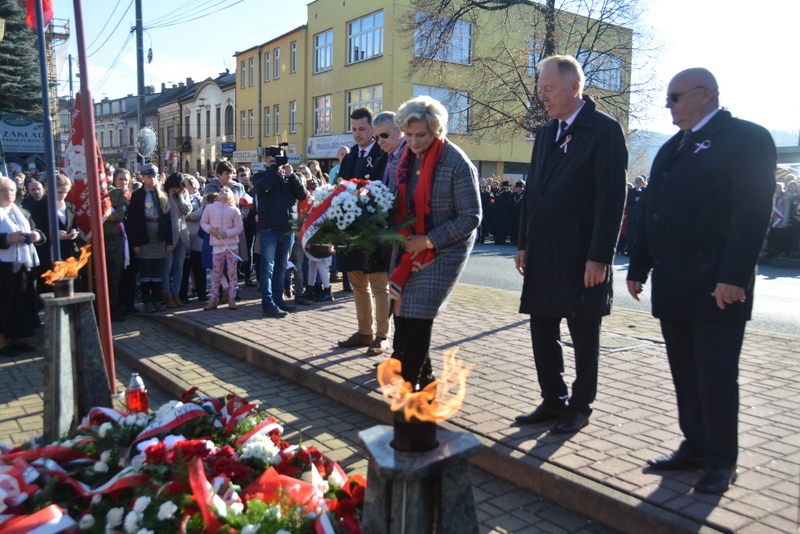 Burmistrz Grzegorz Wawryka, burmistrz elekt Tomasz Latocha oraz poseł Józefa Szczurek-Żelazko i europoseł Edward Czesak złożyli również kwiaty na grobie pomordowanych w hitlerowskich więzieniach i obozach zagłady. Po przemarszu na Plac Kazimierza Wielkiego pocztów i delegacji nastąpiło zakończenie oficjalnej części obchodów Święta Niepodległości.