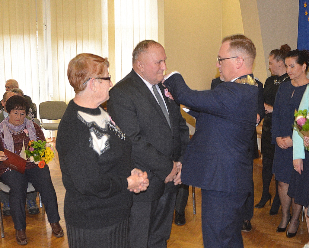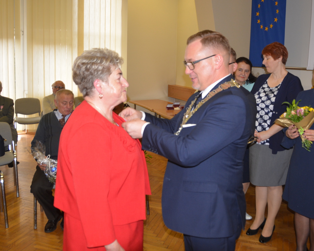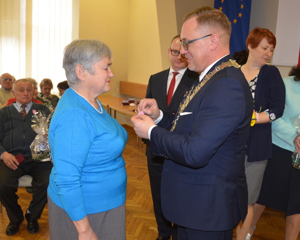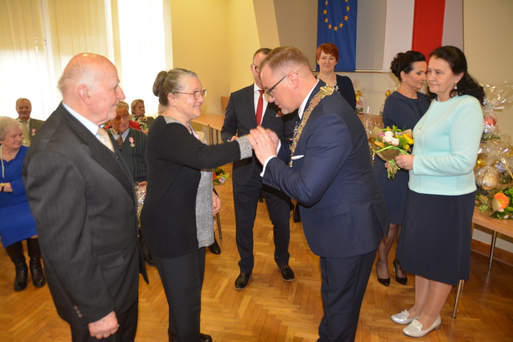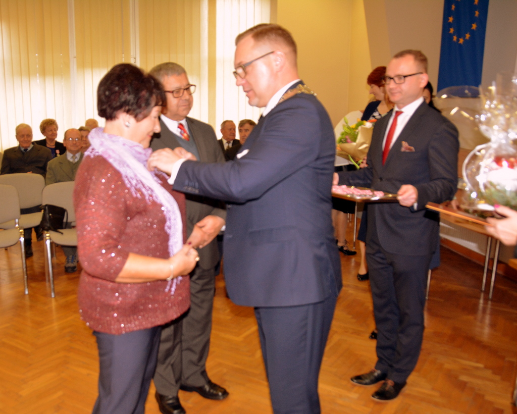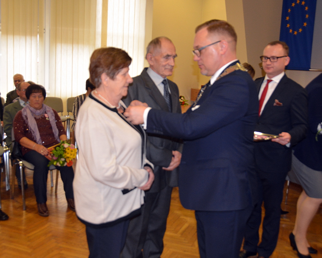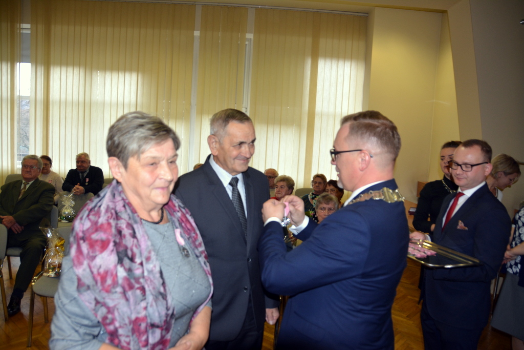 -Niełatwo jest wyrazić słowami nasz podziw i szacunek dla wspólnej, 50-letniej drogi dwojga ludzi, którzy mimo trudności i różnicy charakterów idą razem przez życie, dając świadectwo, że miłość przezwycięża wszystkie przeszkody i trudności. Przyznany przez Prezydenta Rzeczypospolitej Polskiej medal ma szczególne znaczenie, otrzymuje go dwoje ludzi, których wspólne rodzinne życie jest powodem do dumy i radości dla najbliższych, a także wzorem i przykładem wierności – mówił w czasie uroczystości burmistrz Tomasz Latocha. Jubilatom złożył życzenia zdrowia, pogody ducha oraz kolejnych lat przeżytych w spokoju i radości. Skromną uroczystość uświetnił występ uczniów ze szkoły muzycznej.
