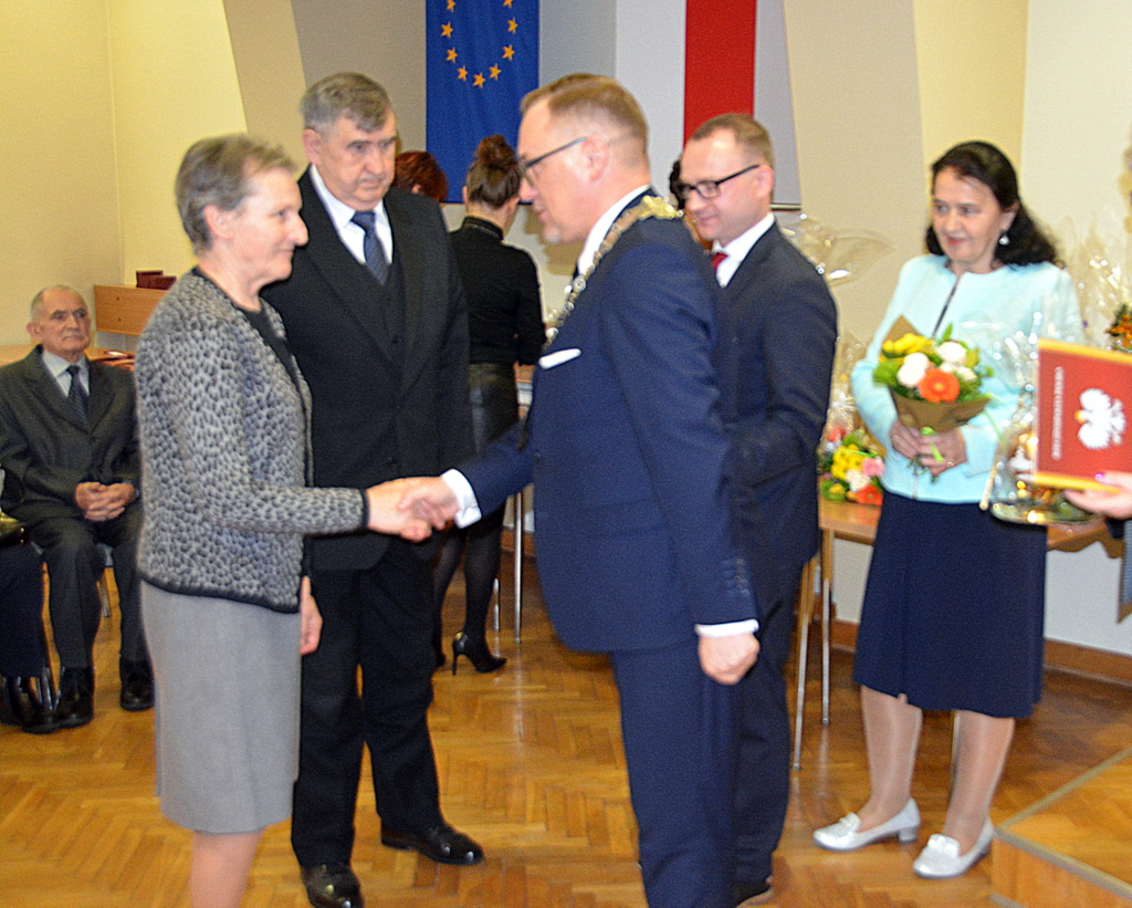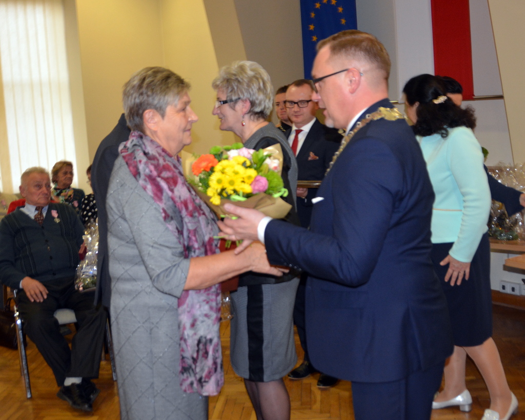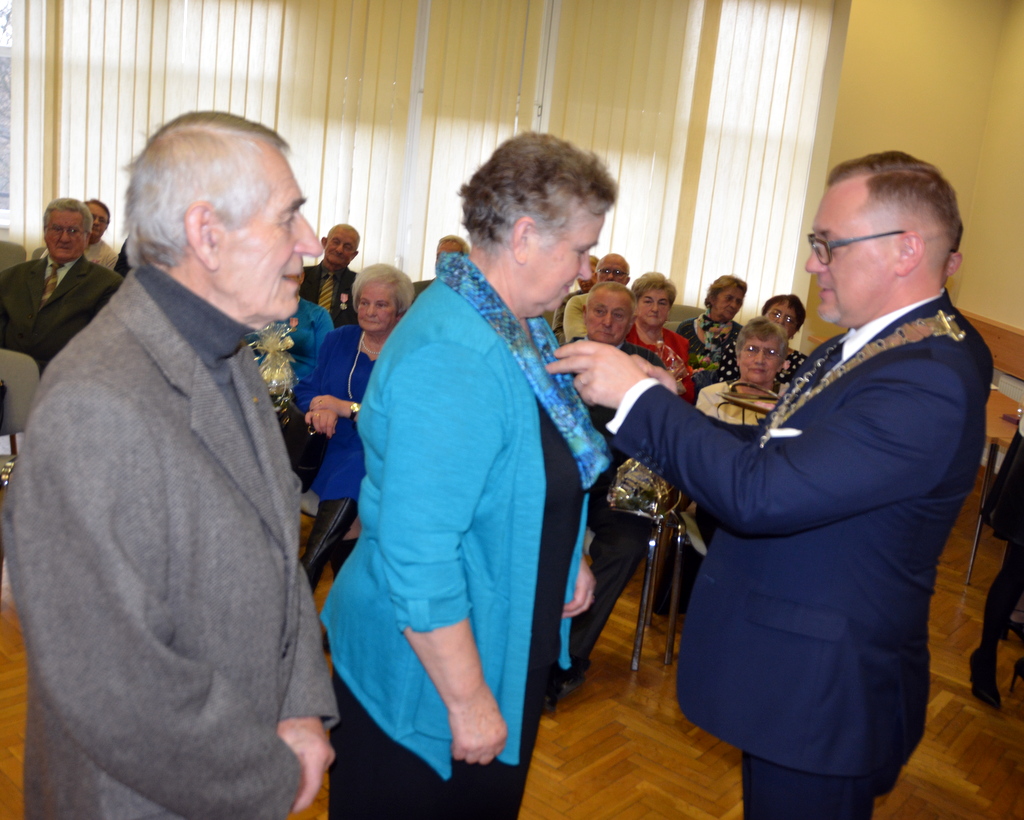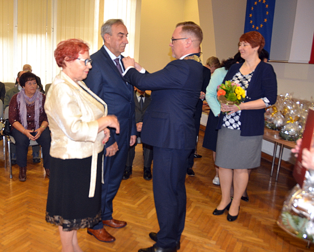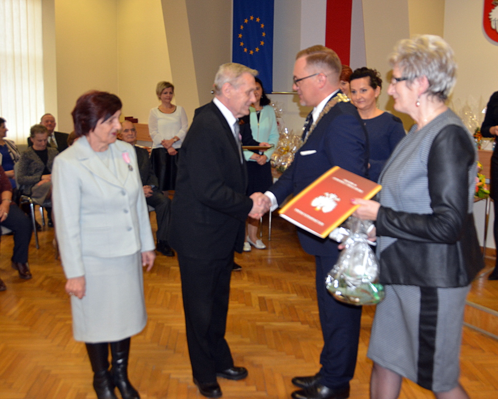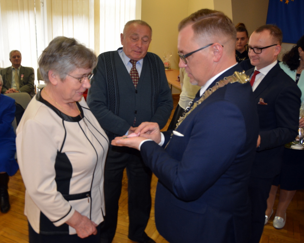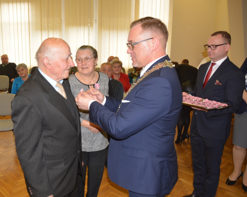 -Niełatwo jest wyrazić słowami nasz podziw i szacunek dla wspólnej, 50-letniej drogi dwojga ludzi, którzy mimo trudności i różnicy charakterów idą razem przez życie, dając świadectwo, że miłość przezwycięża wszystkie przeszkody i trudności. Przyznany przez Prezydenta Rzeczypospolitej Polskiej medal ma szczególne znaczenie, otrzymuje go dwoje ludzi, których wspólne rodzinne życie jest powodem do dumy i radości dla najbliższych, a także wzorem i przykładem wierności – mówił w czasie uroczystości burmistrz Tomasz Latocha. Jubilatom złożył życzenia zdrowia, pogody ducha oraz kolejnych lat przeżytych w spokoju i radości. Skromną uroczystość uświetnił występ uczniów ze szkoły muzycznej.