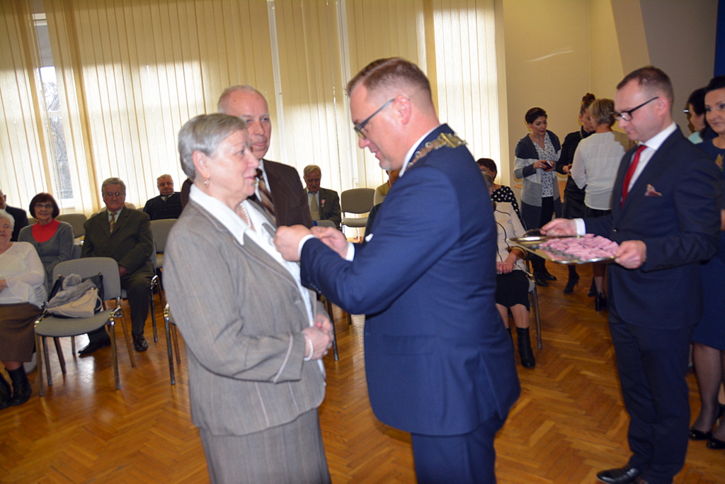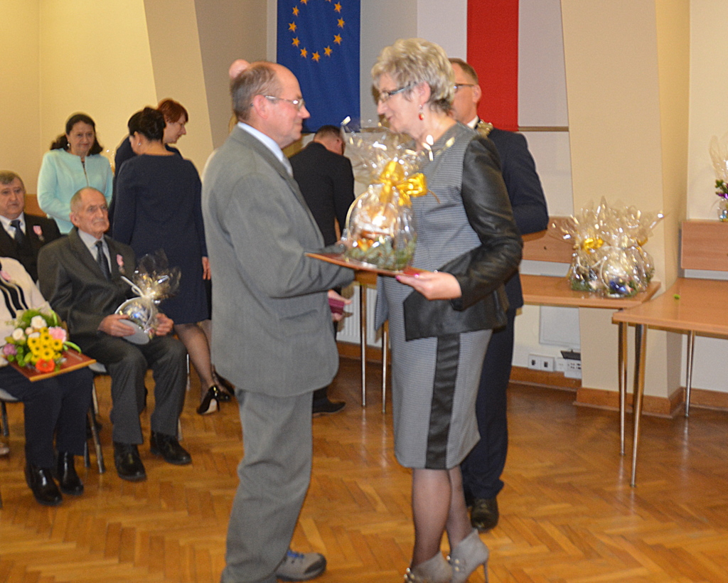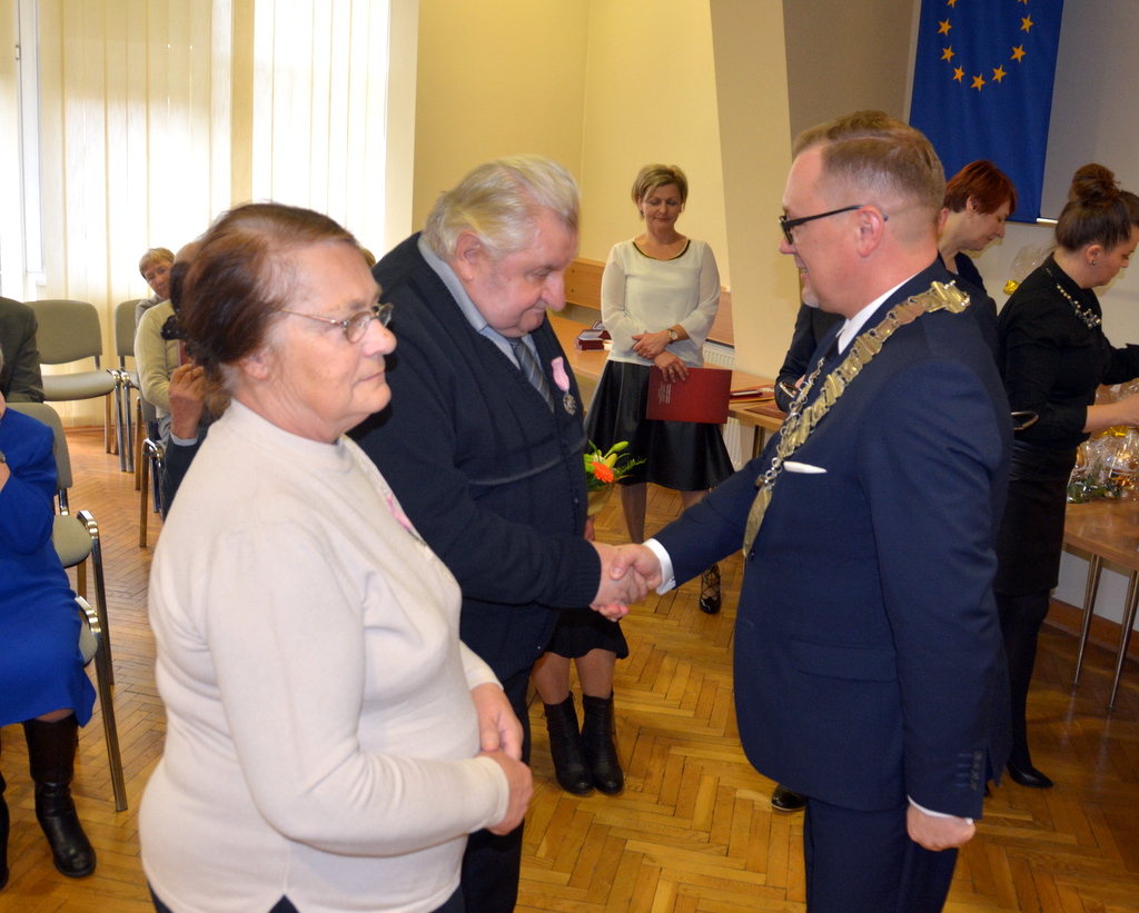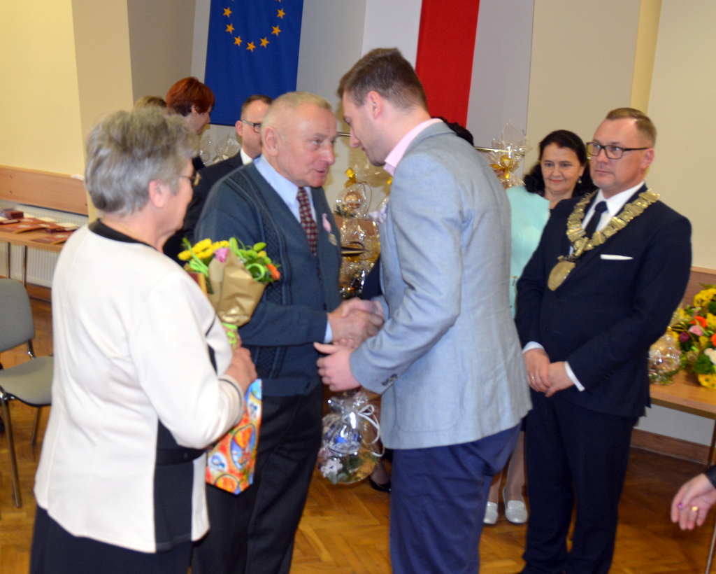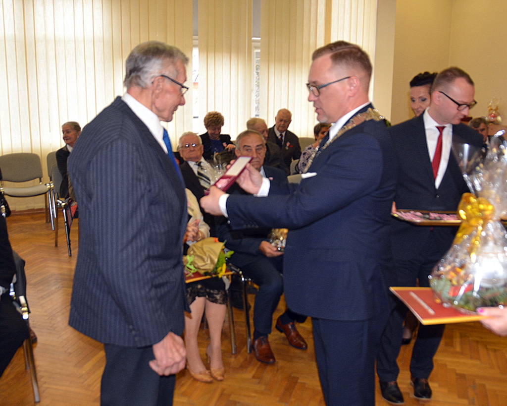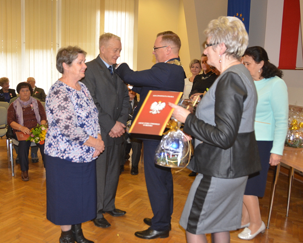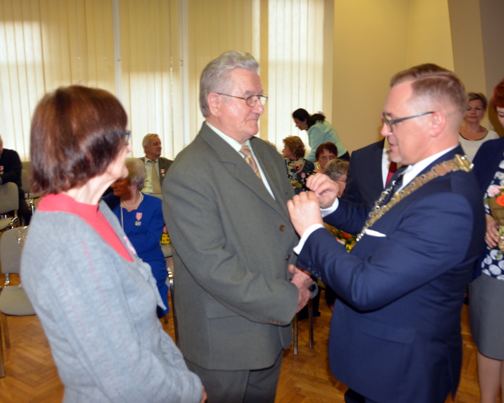 -Niełatwo jest wyrazić słowami nasz podziw i szacunek dla wspólnej, 50-letniej drogi dwojga ludzi, którzy mimo trudności i różnicy charakterów idą razem przez życie, dając świadectwo, że miłość przezwycięża wszystkie przeszkody i trudności. Przyznany przez Prezydenta Rzeczypospolitej Polskiej medal ma szczególne znaczenie, otrzymuje go dwoje ludzi, których wspólne rodzinne życie jest powodem do dumy i radości dla najbliższych, a także wzorem i przykładem wierności – mówił w czasie uroczystości burmistrz Tomasz Latocha. Jubilatom złożył życzenia zdrowia, pogody ducha oraz kolejnych lat przeżytych w spokoju i radości. Skromną uroczystość uświetnił występ uczniów ze szkoły muzycznej.