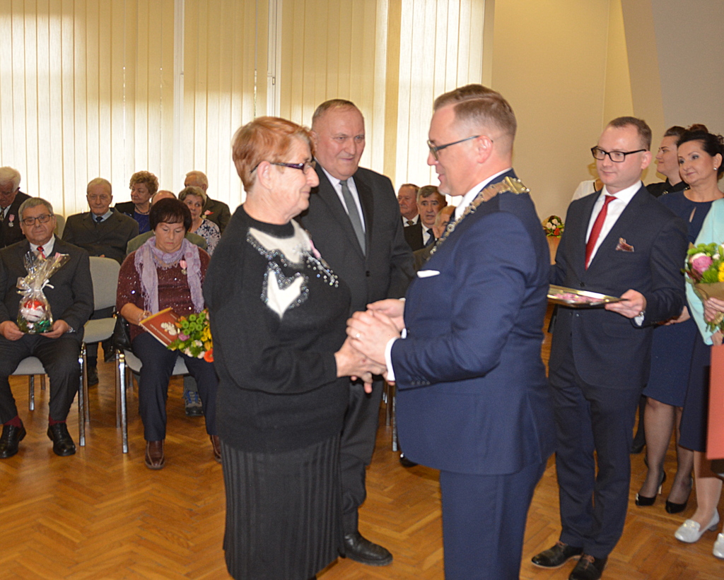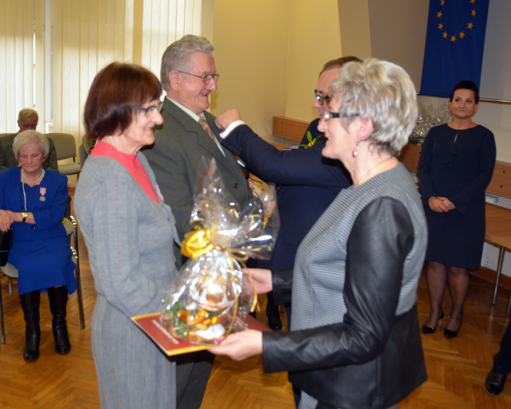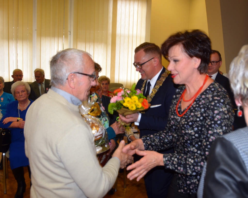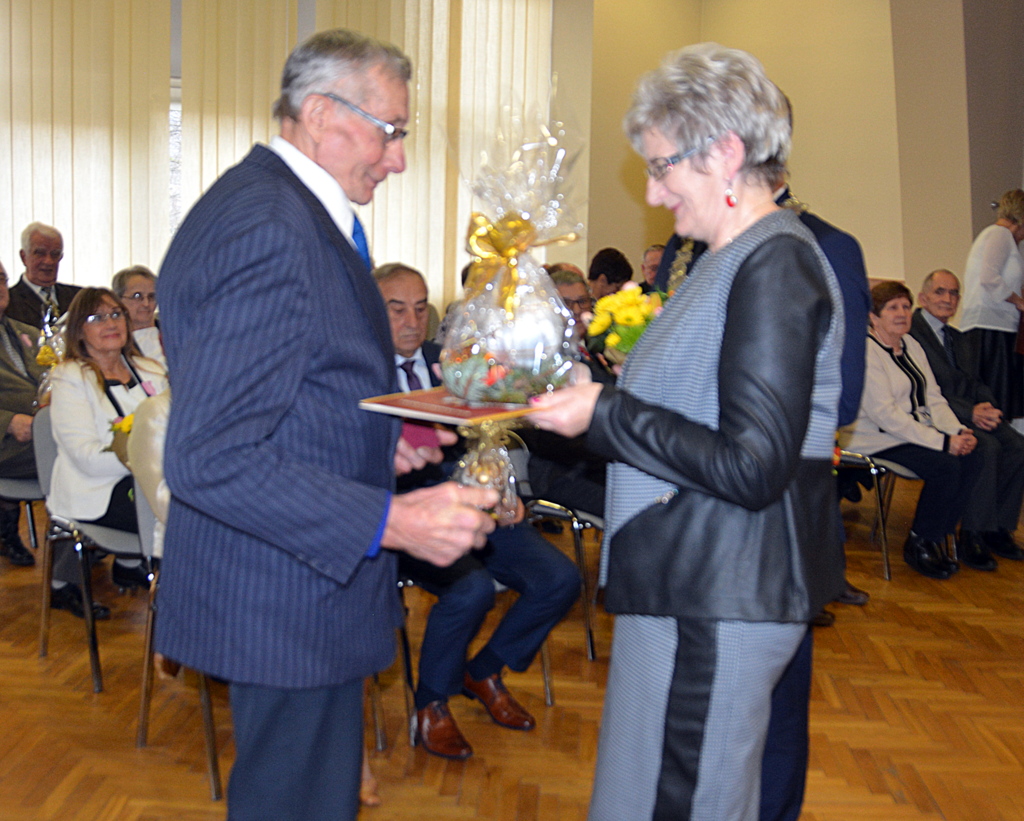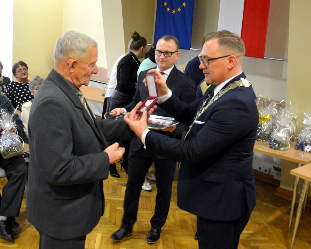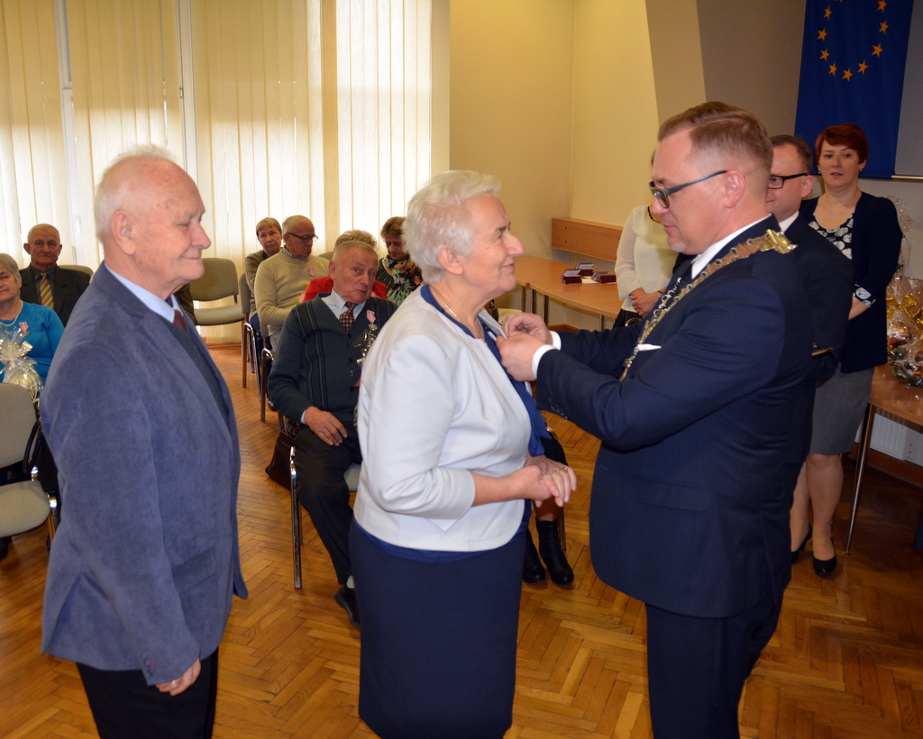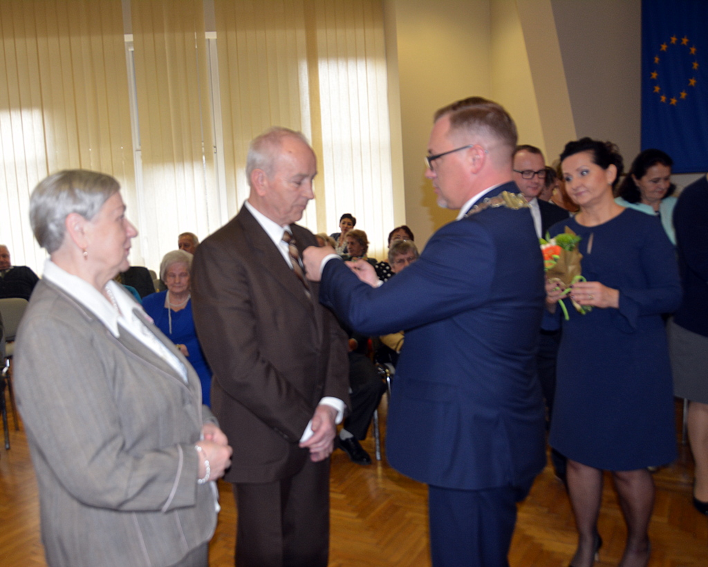 -Niełatwo jest wyrazić słowami nasz podziw i szacunek dla wspólnej, 50-letniej drogi dwojga ludzi, którzy mimo trudności i różnicy charakterów idą razem przez życie, dając świadectwo, że miłość przezwycięża wszystkie przeszkody i trudności. Przyznany przez Prezydenta Rzeczypospolitej Polskiej medal ma szczególne znaczenie, otrzymuje go dwoje ludzi, których wspólne rodzinne życie jest powodem do dumy i radości dla najbliższych, a także wzorem i przykładem wierności – mówił w czasie uroczystości burmistrz Tomasz Latocha. Jubilatom złożył życzenia zdrowia, pogody ducha oraz kolejnych lat przeżytych w spokoju i radości. Skromną uroczystość uświetnił występ uczniów ze szkoły muzycznej.