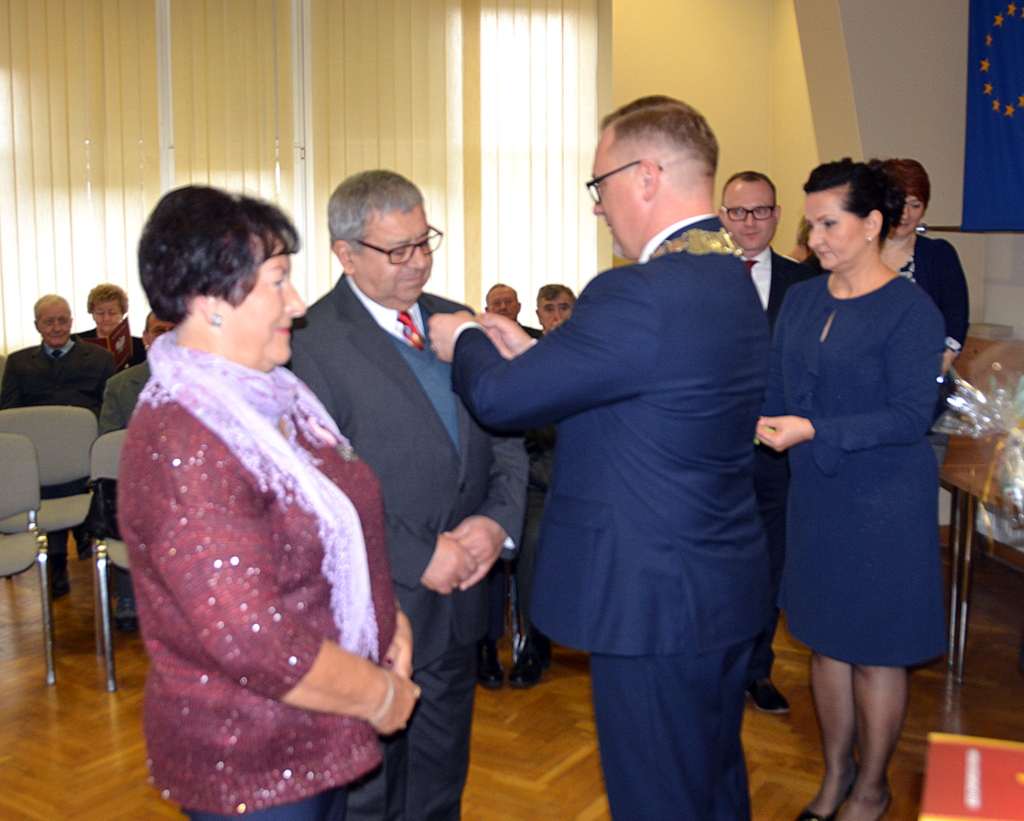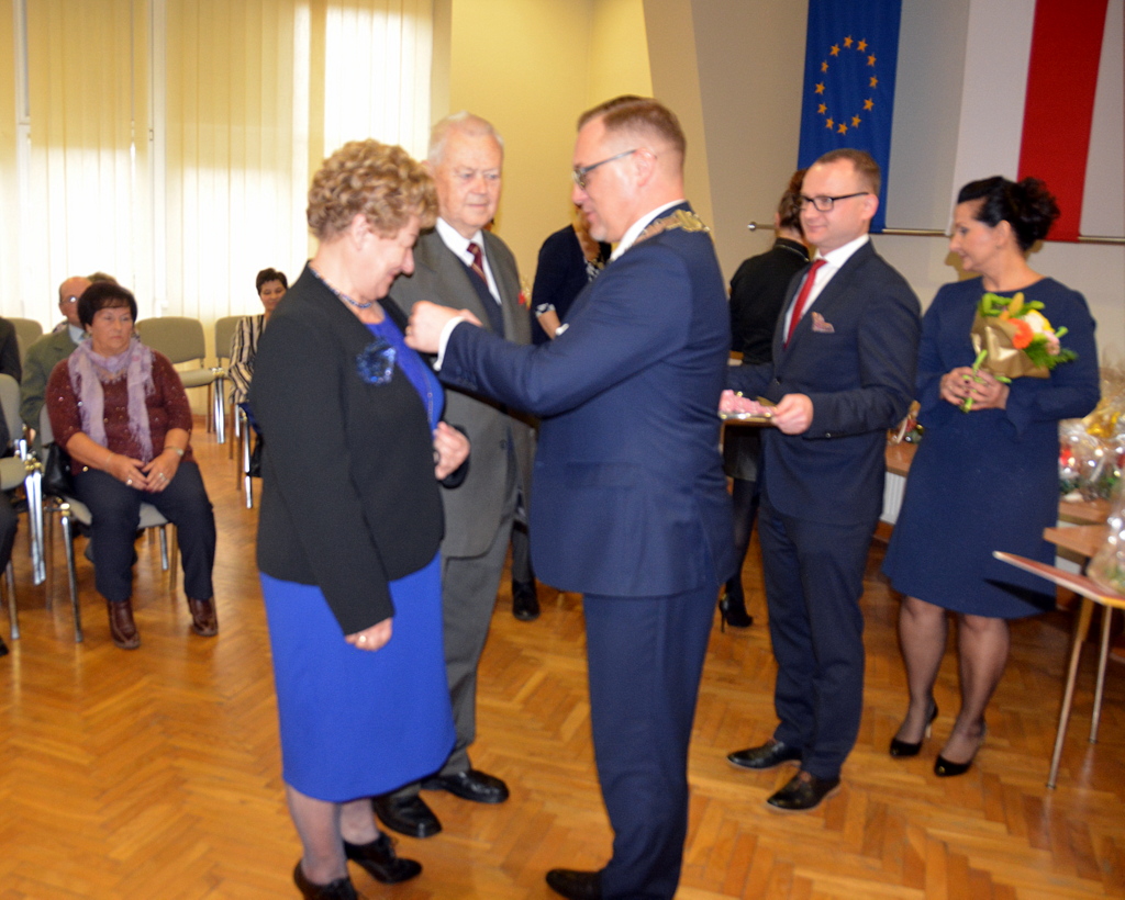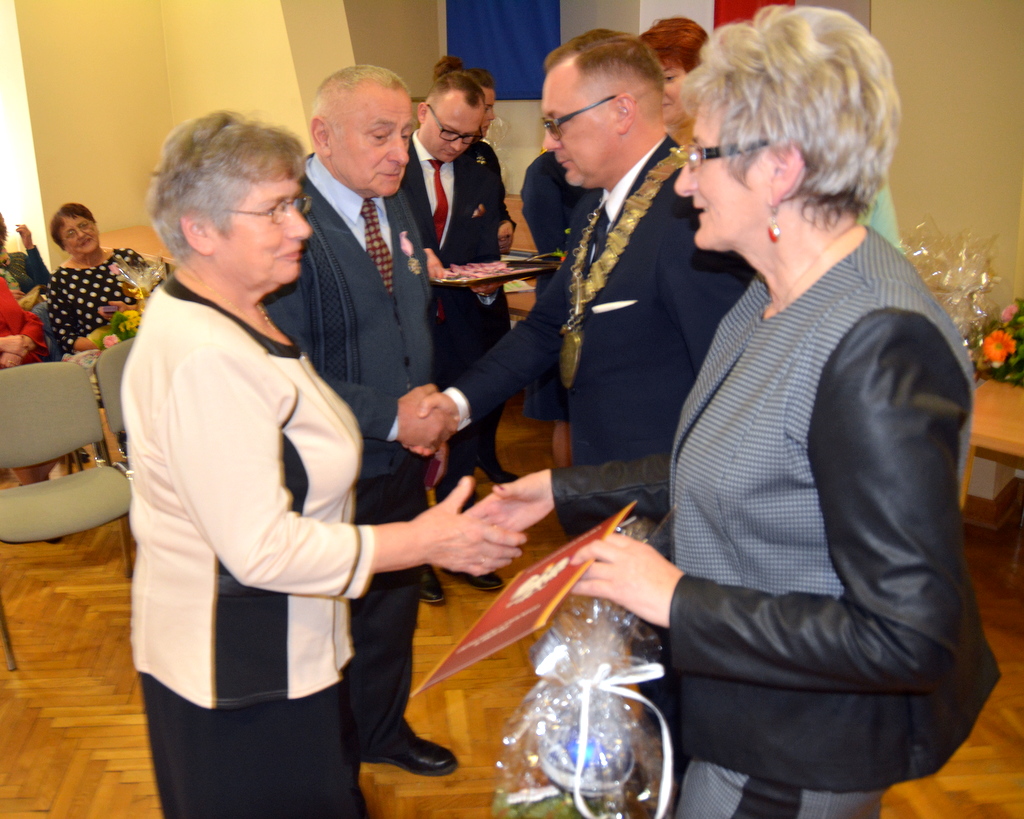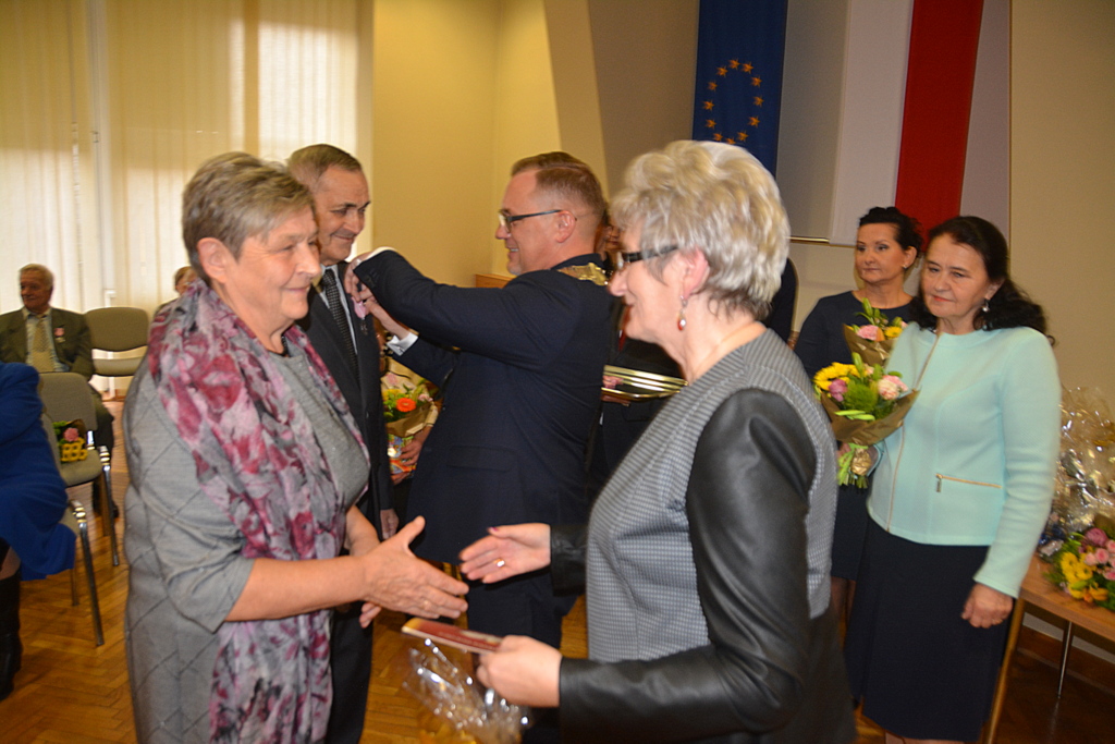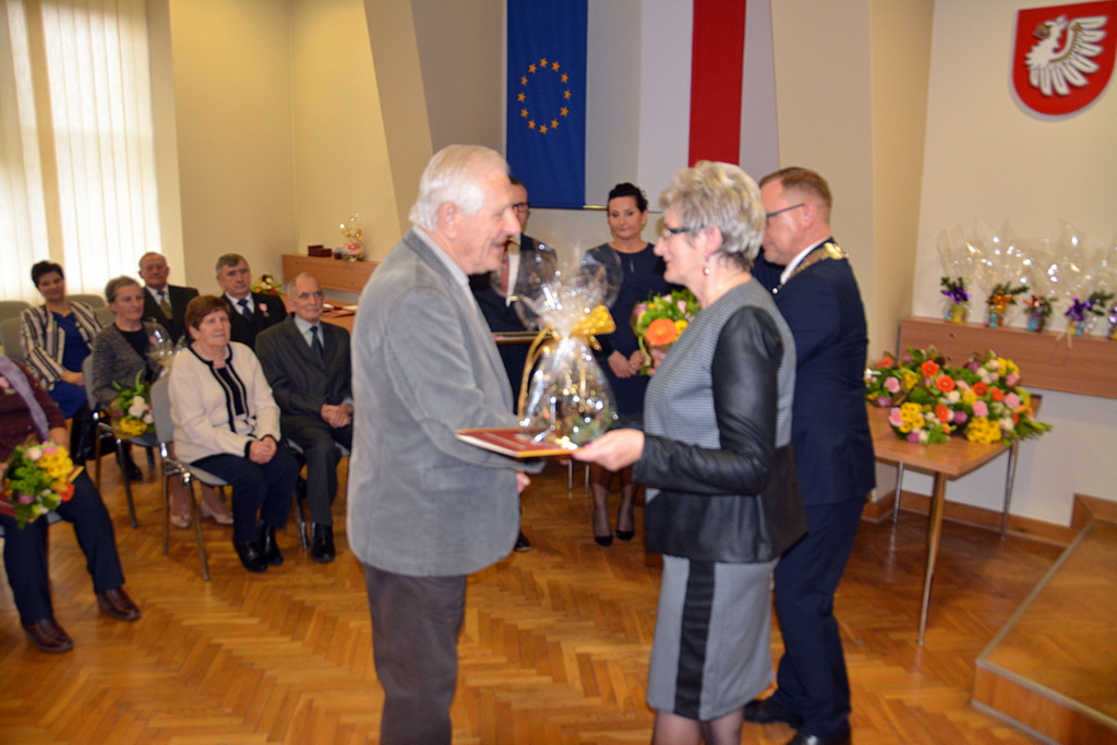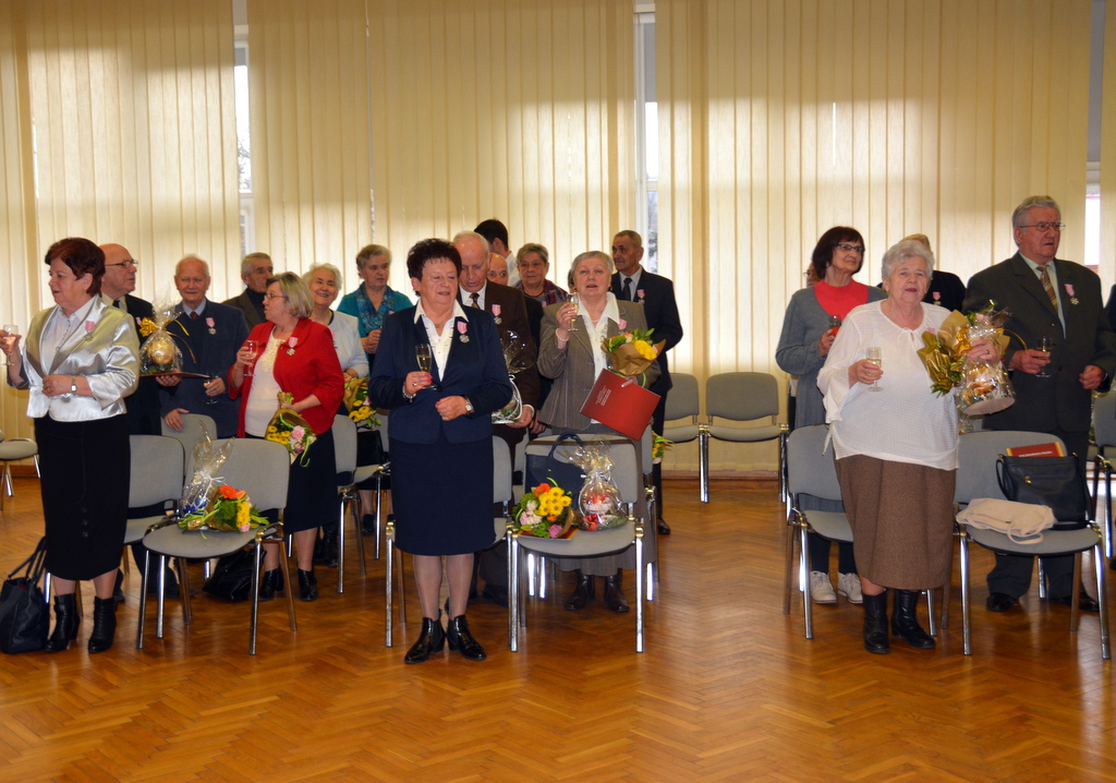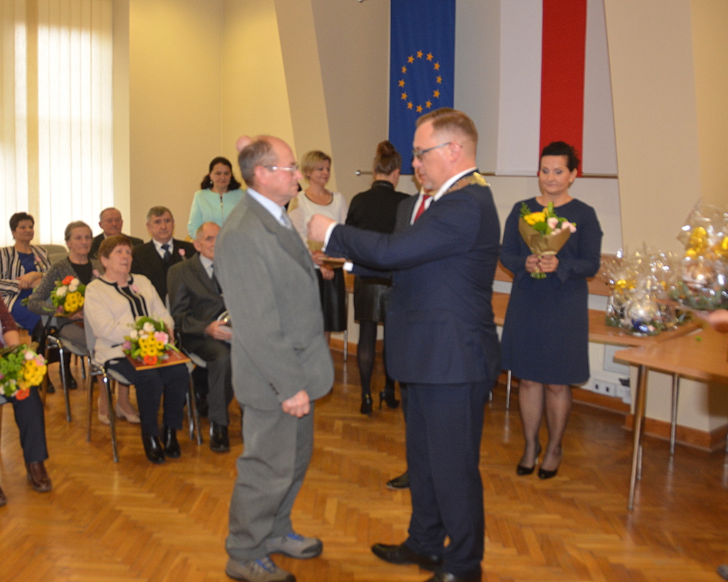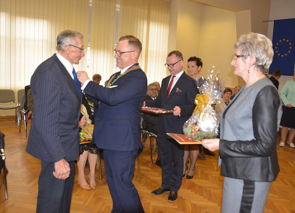 -Niełatwo jest wyrazić słowami nasz podziw i szacunek dla wspólnej, 50-letniej drogi dwojga ludzi, którzy mimo trudności i różnicy charakterów idą razem przez życie, dając świadectwo, że miłość przezwycięża wszystkie przeszkody i trudności. Przyznany przez Prezydenta Rzeczypospolitej Polskiej medal ma szczególne znaczenie, otrzymuje go dwoje ludzi, których wspólne rodzinne życie jest powodem do dumy i radości dla najbliższych, a także wzorem i przykładem wierności – mówił w czasie uroczystości burmistrz Tomasz Latocha. Jubilatom złożył życzenia zdrowia, pogody ducha oraz kolejnych lat przeżytych w spokoju i radości. Skromną uroczystość uświetnił występ uczniów ze szkoły muzycznej.
