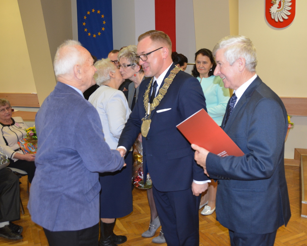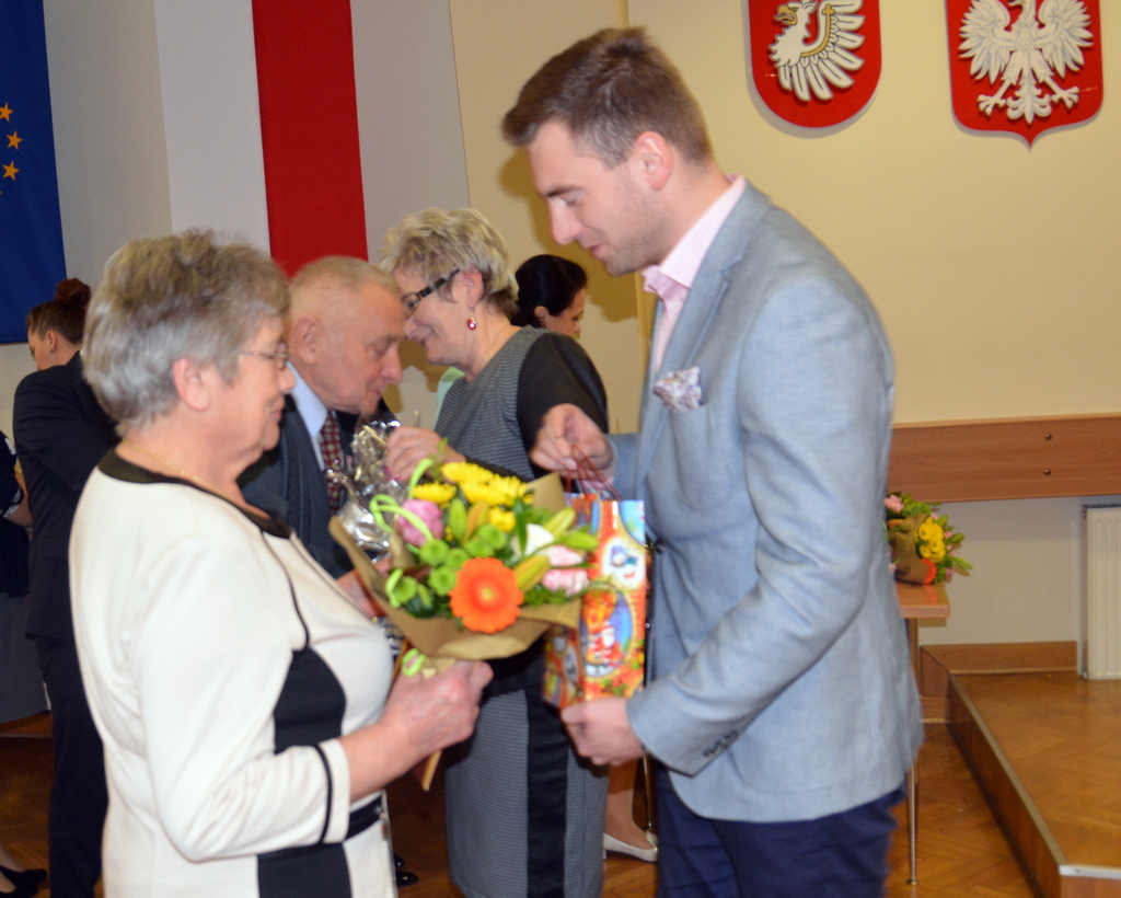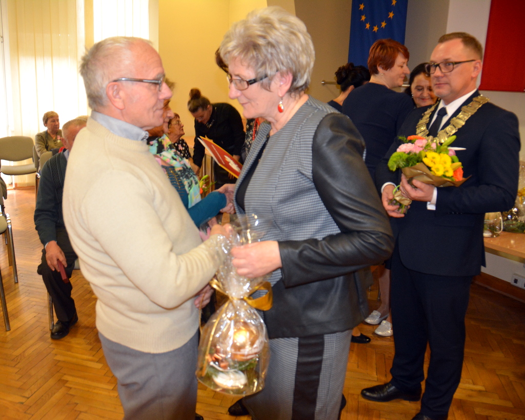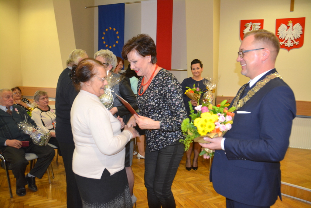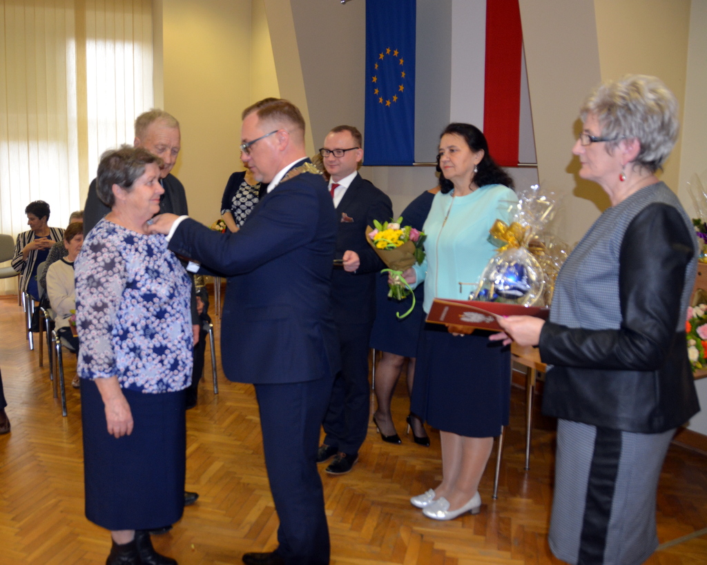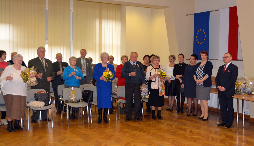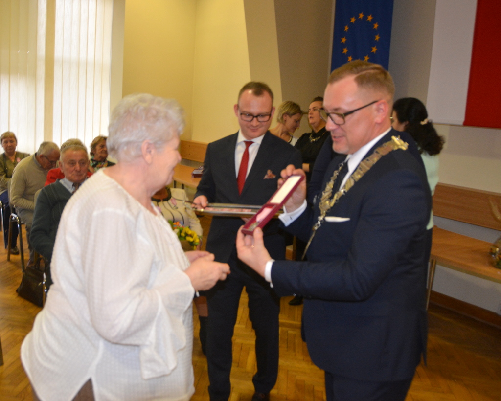 -Niełatwo jest wyrazić słowami nasz podziw i szacunek dla wspólnej, 50-letniej drogi dwojga ludzi, którzy mimo trudności i różnicy charakterów idą razem przez życie, dając świadectwo, że miłość przezwycięża wszystkie przeszkody i trudności. Przyznany przez Prezydenta Rzeczypospolitej Polskiej medal ma szczególne znaczenie, otrzymuje go dwoje ludzi, których wspólne rodzinne życie jest powodem do dumy i radości dla najbliższych, a także wzorem i przykładem wierności – mówił w czasie uroczystości burmistrz Tomasz Latocha. Jubilatom złożył życzenia zdrowia, pogody ducha oraz kolejnych lat przeżytych w spokoju i radości. Skromną uroczystość uświetnił występ uczniów ze szkoły muzycznej.