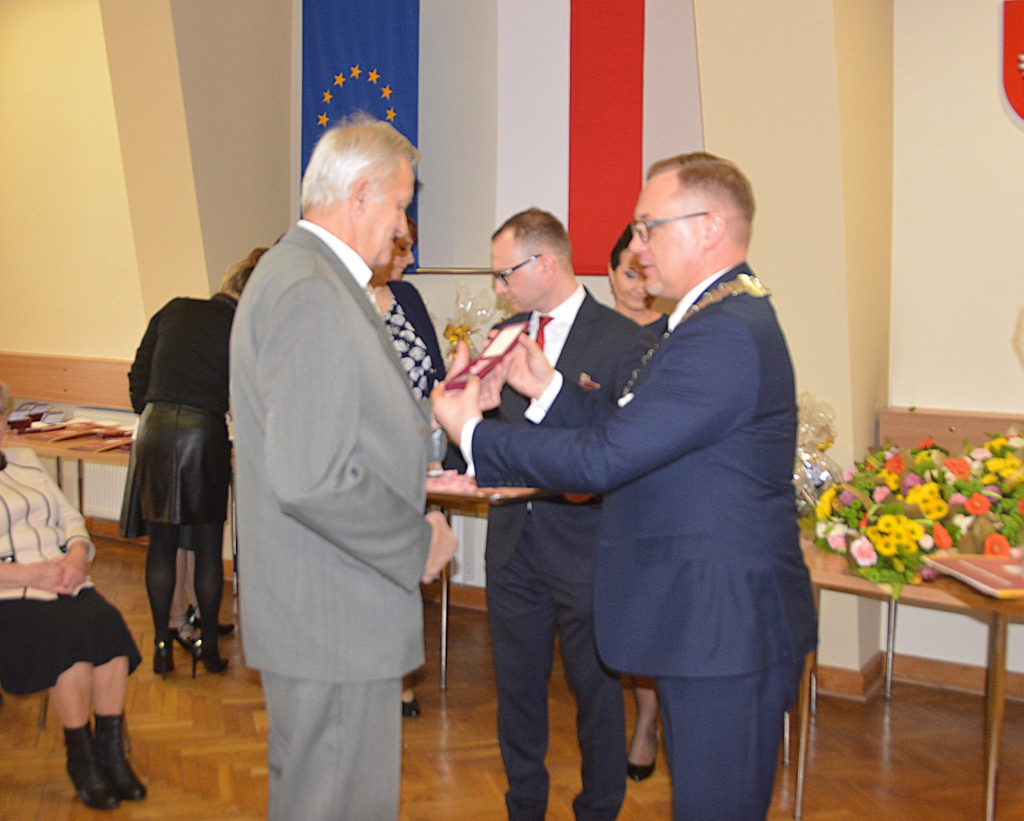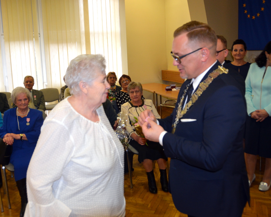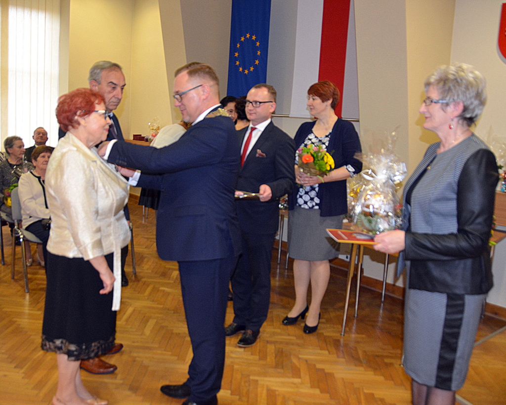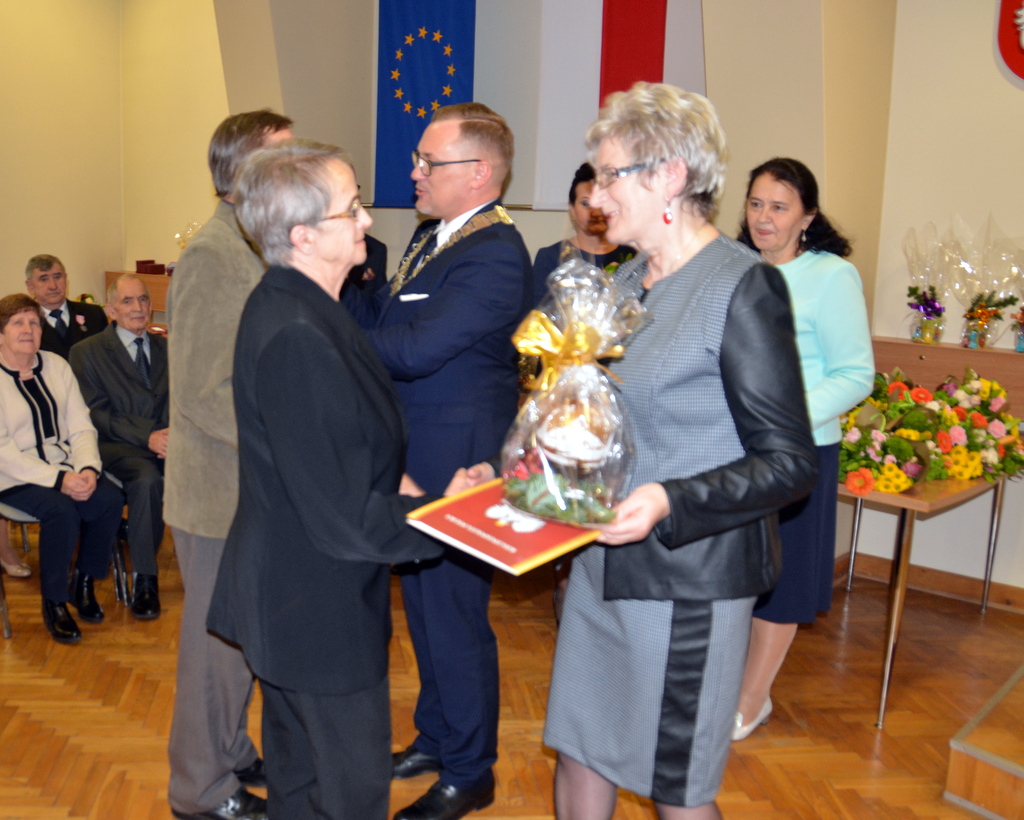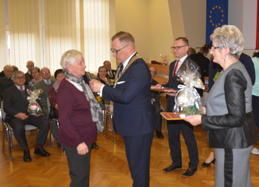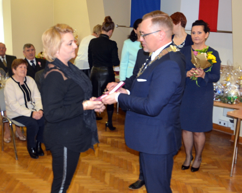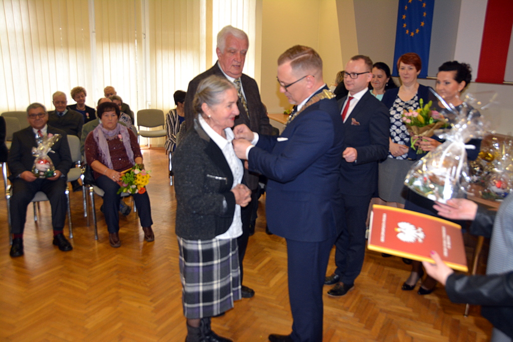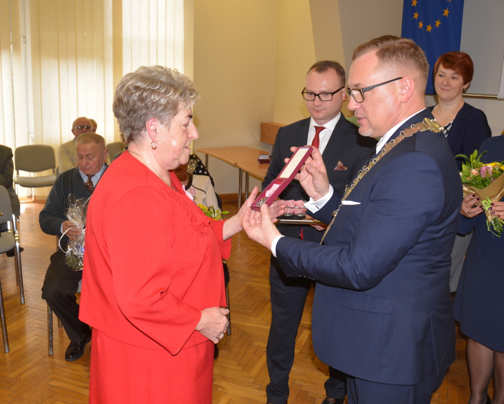 -Niełatwo jest wyrazić słowami nasz podziw i szacunek dla wspólnej, 50-letniej drogi dwojga ludzi, którzy mimo trudności i różnicy charakterów idą razem przez życie, dając świadectwo, że miłość przezwycięża wszystkie przeszkody i trudności. Przyznany przez Prezydenta Rzeczypospolitej Polskiej medal ma szczególne znaczenie, otrzymuje go dwoje ludzi, których wspólne rodzinne życie jest powodem do dumy i radości dla najbliższych, a także wzorem i przykładem wierności – mówił w czasie uroczystości burmistrz Tomasz Latocha. Jubilatom złożył życzenia zdrowia, pogody ducha oraz kolejnych lat przeżytych w spokoju i radości. Skromną uroczystość uświetnił występ uczniów ze szkoły muzycznej.