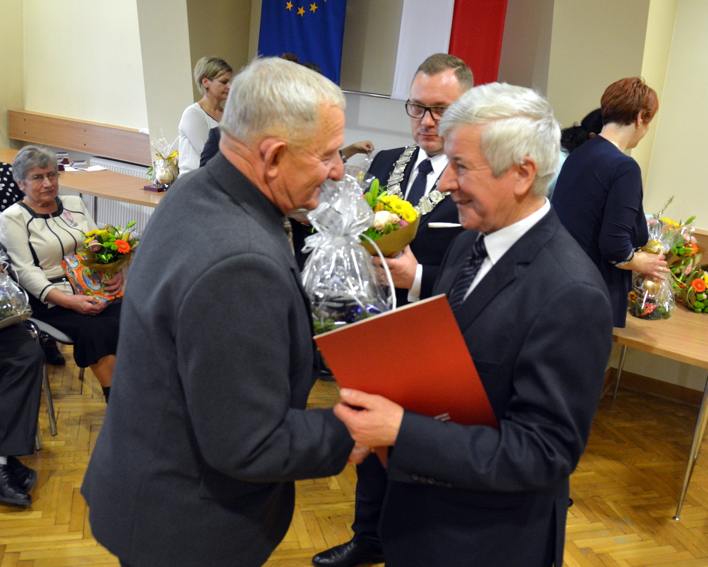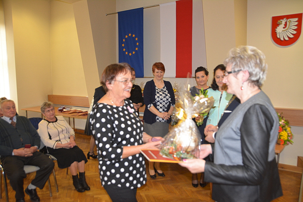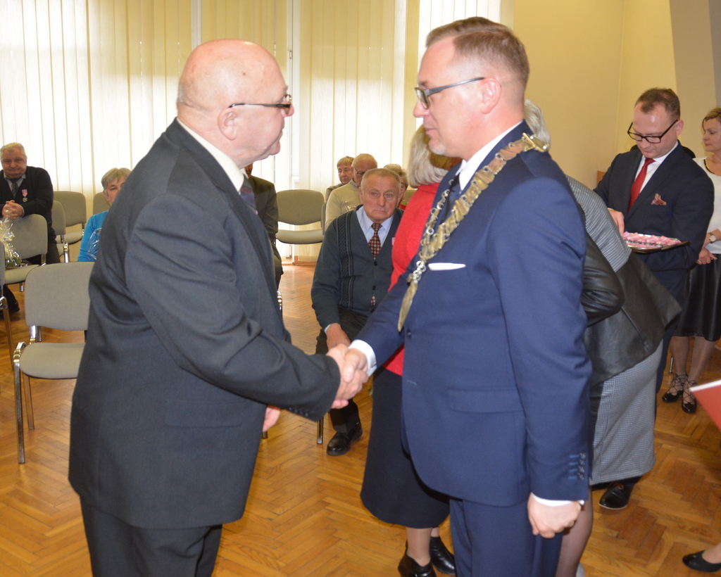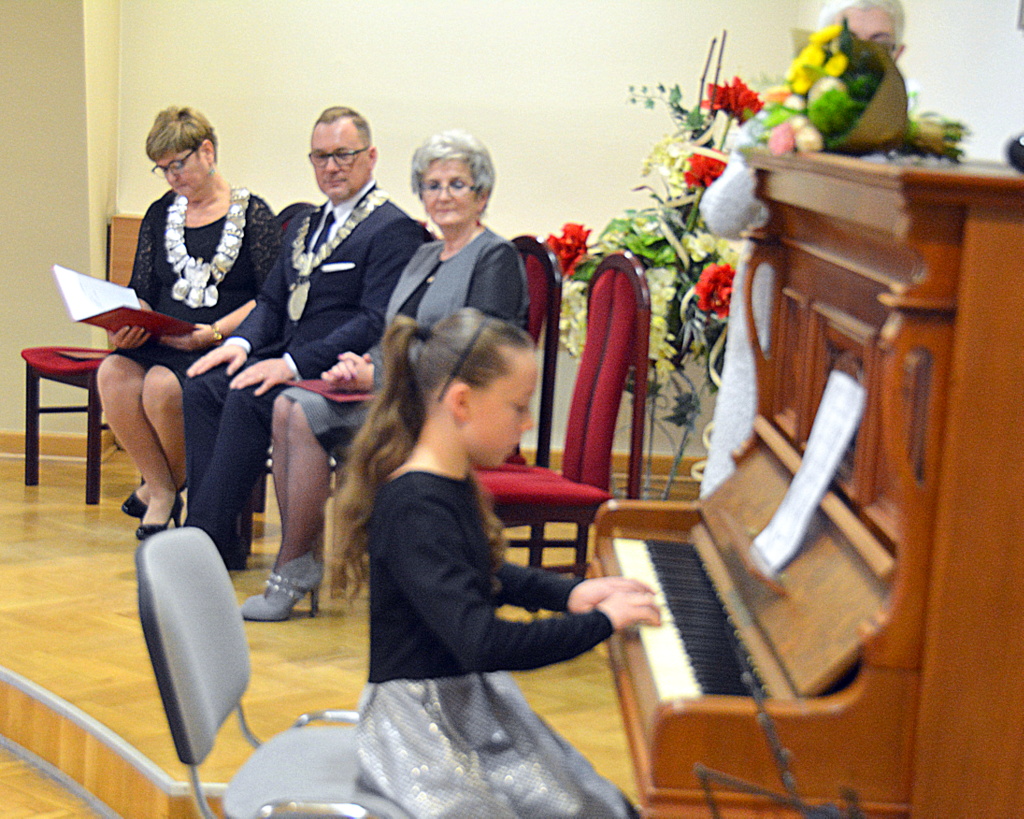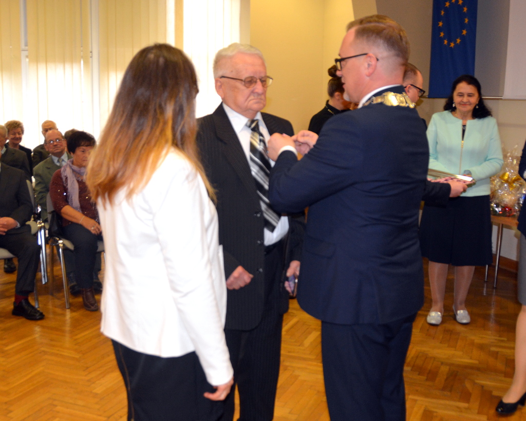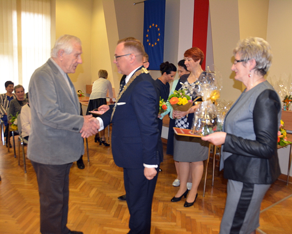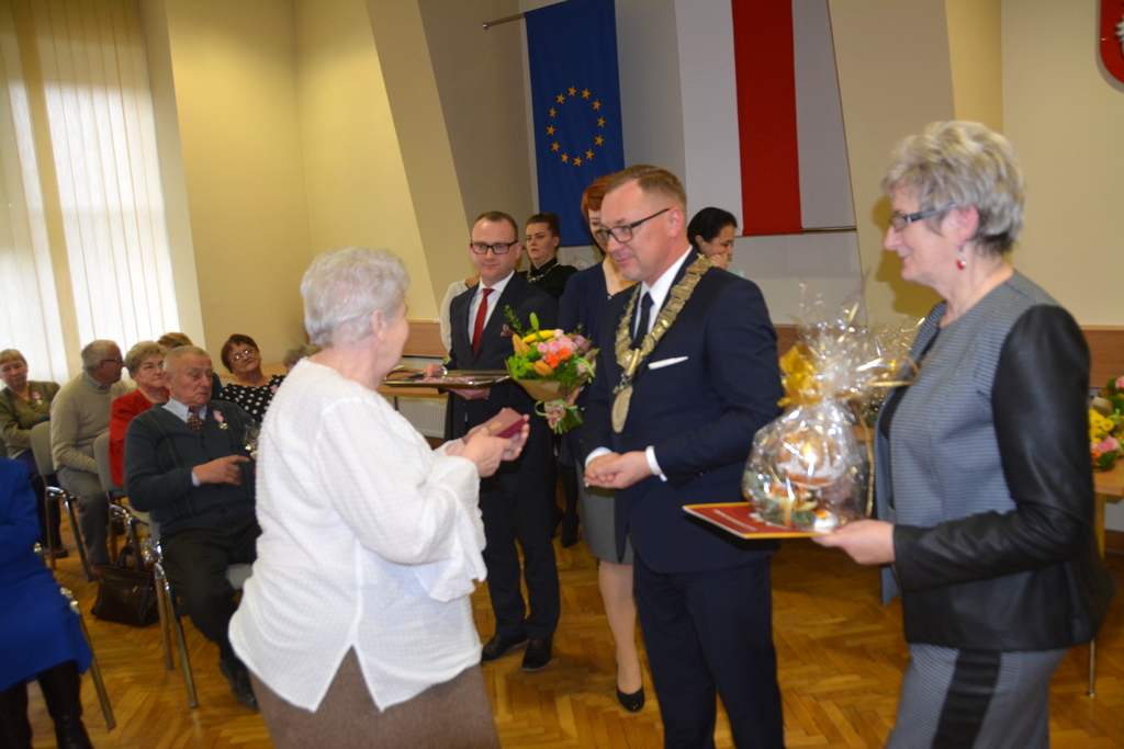 -Niełatwo jest wyrazić słowami nasz podziw i szacunek dla wspólnej, 50-letniej drogi dwojga ludzi, którzy mimo trudności i różnicy charakterów idą razem przez życie, dając świadectwo, że miłość przezwycięża wszystkie przeszkody i trudności. Przyznany przez Prezydenta Rzeczypospolitej Polskiej medal ma szczególne znaczenie, otrzymuje go dwoje ludzi, których wspólne rodzinne życie jest powodem do dumy i radości dla najbliższych, a także wzorem i przykładem wierności – mówił w czasie uroczystości burmistrz Tomasz Latocha. Jubilatom złożył życzenia zdrowia, pogody ducha oraz kolejnych lat przeżytych w spokoju i radości. Skromną uroczystość uświetnił występ uczniów ze szkoły muzycznej.