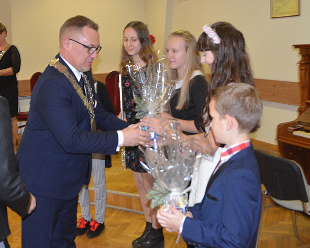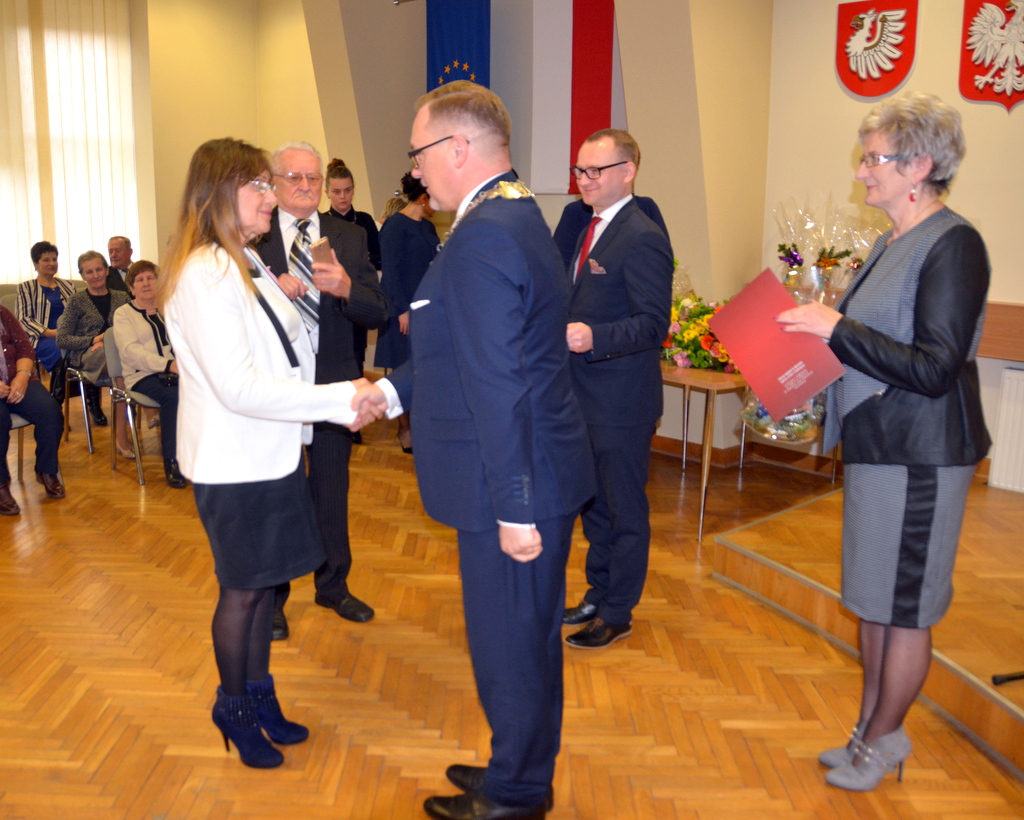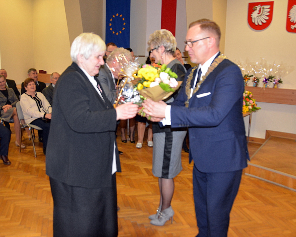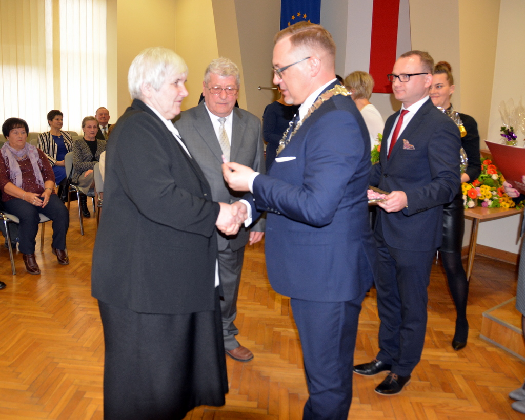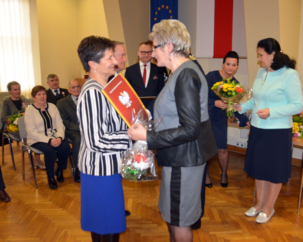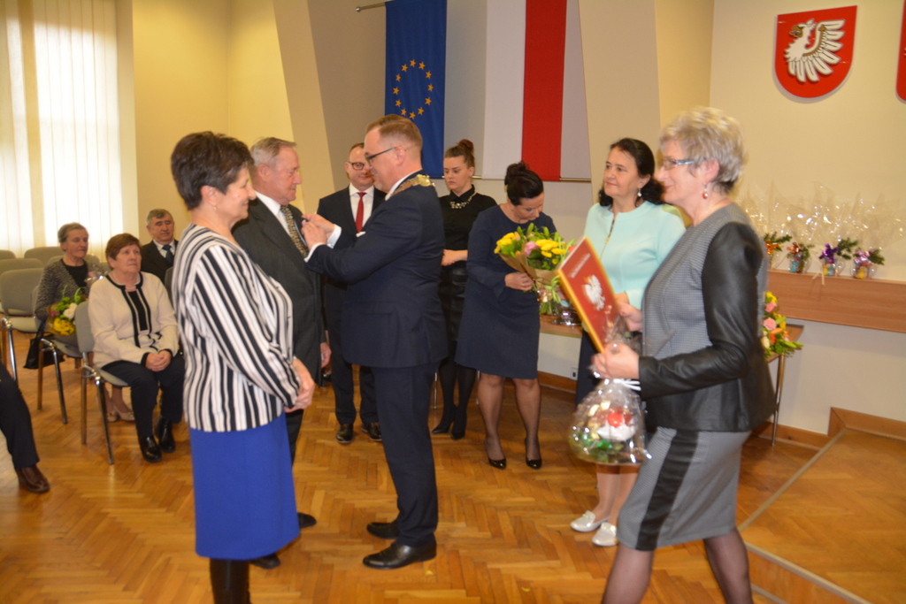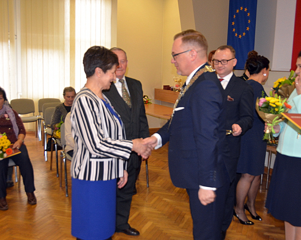 -Niełatwo jest wyrazić słowami nasz podziw i szacunek dla wspólnej, 50-letniej drogi dwojga ludzi, którzy mimo trudności i różnicy charakterów idą razem przez życie, dając świadectwo, że miłość przezwycięża wszystkie przeszkody i trudności. Przyznany przez Prezydenta Rzeczypospolitej Polskiej medal ma szczególne znaczenie, otrzymuje go dwoje ludzi, których wspólne rodzinne życie jest powodem do dumy i radości dla najbliższych, a także wzorem i przykładem wierności – mówił w czasie uroczystości burmistrz Tomasz Latocha. Jubilatom złożył życzenia zdrowia, pogody ducha oraz kolejnych lat przeżytych w spokoju i radości. Skromną uroczystość uświetnił występ uczniów ze szkoły muzycznej.