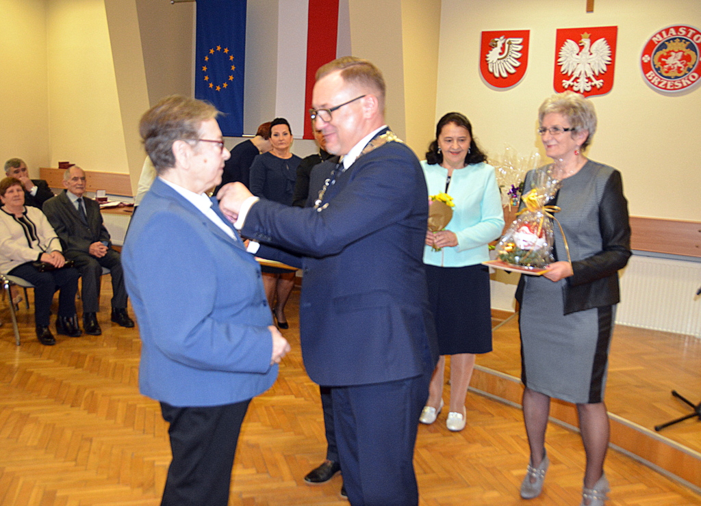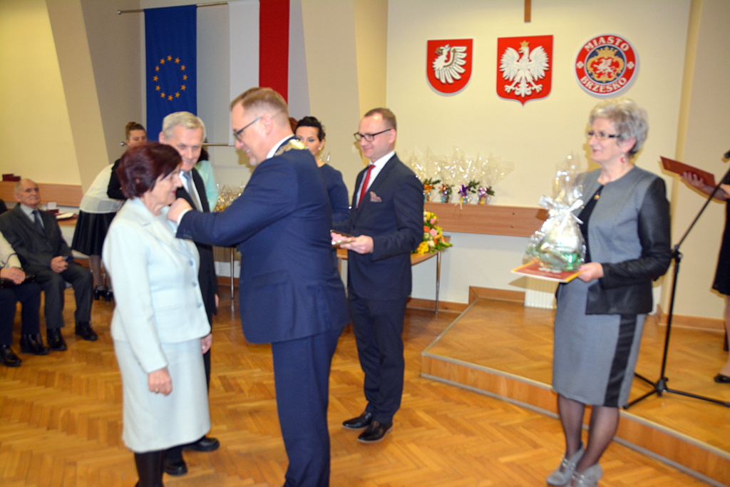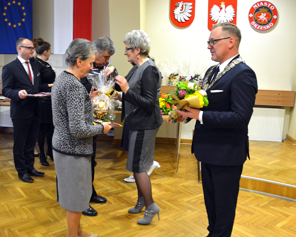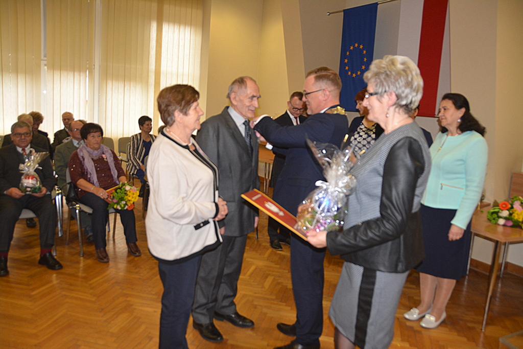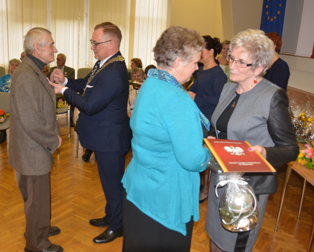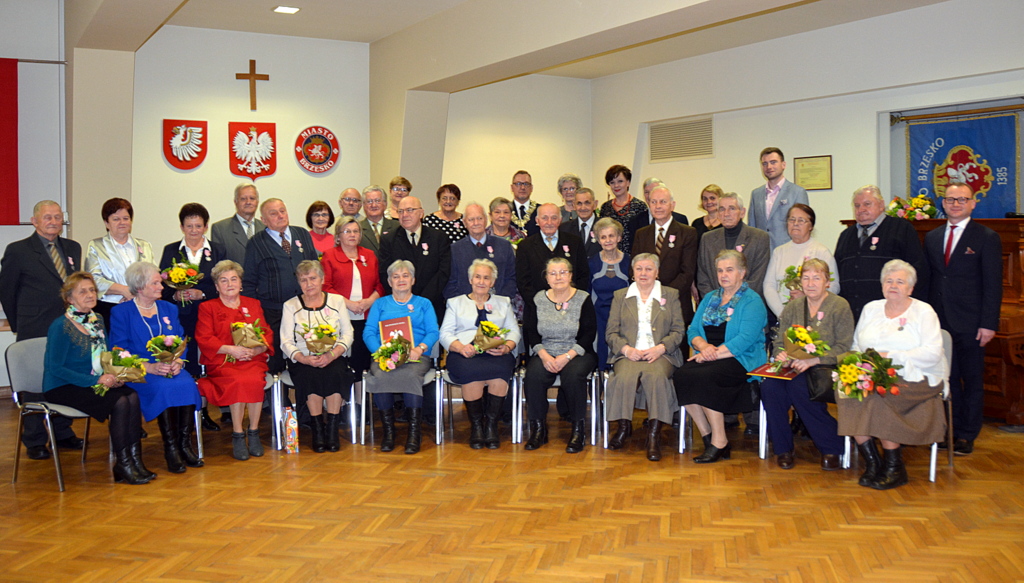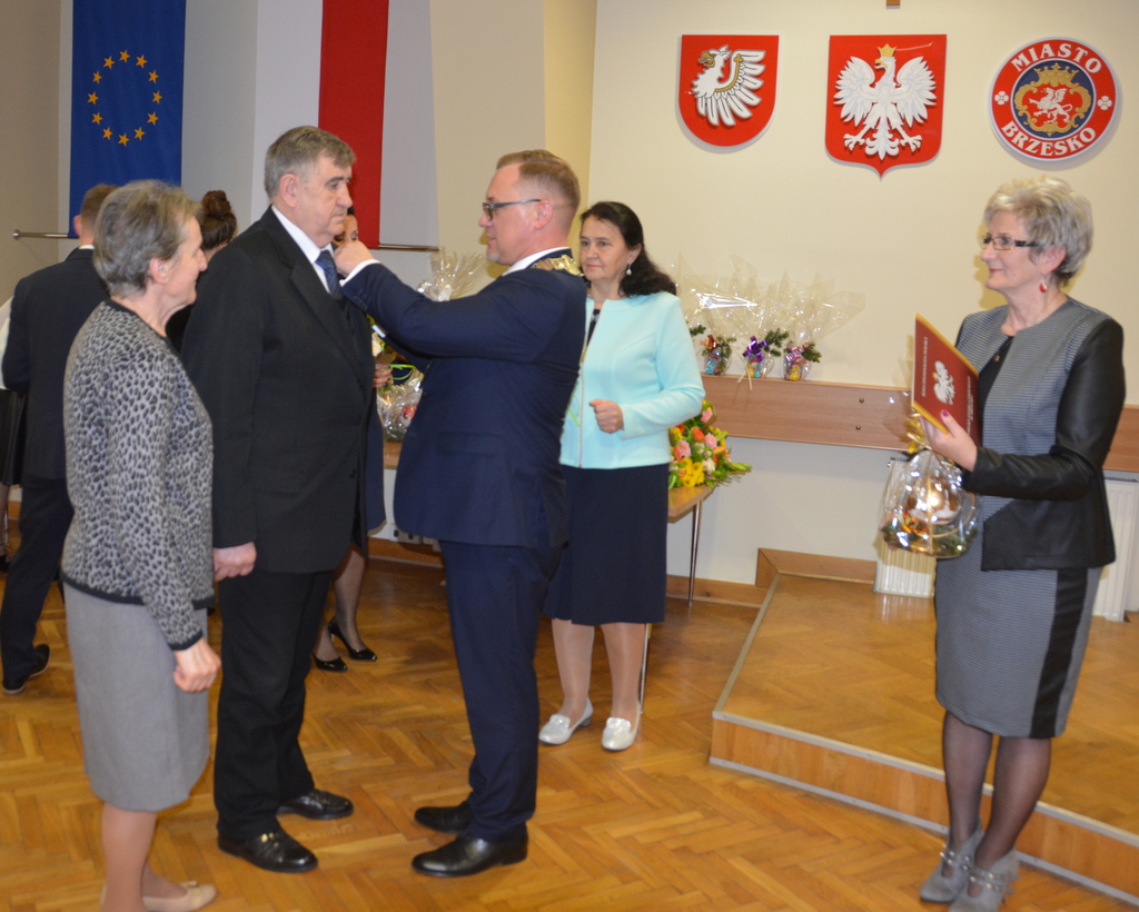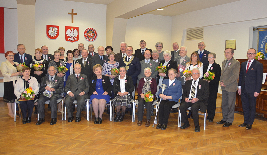 Burmistrz Brzeska Tomasz Latocha w towarzystwie przewodniczącej rady miejskiej Marii Kądziołki, pracowników urzędu stanu cywilnego, radnych i przewodniczących zarządów osiedli wręczyli Medale za Długoletnie Pożycie Małżeńskie przyznane przez Prezydenta RP parom, które w tym roku świętują jubileusz złotych godów.