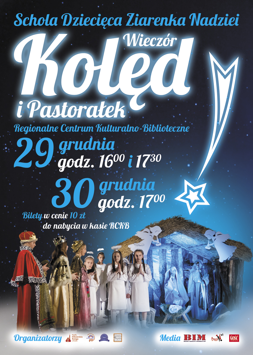Zapraszamy na tradycyjny bożonarodzeniowy wieczór kolęd i pastorałek zatytułowany „Tego się nie spodziewają". Premiera koncertu będzie miała miejsce 29 grudnia o godzinie 16.00, drugi koncert tego dnia o 17.30 oraz dzień później - 30 grudnia o godzinie 17.00. Koncerty odbędą się w Regionalnym Centrum Kulturalno-Bibliotecznym, bilety w cenie 10 złotych, w kasie RCK-B.