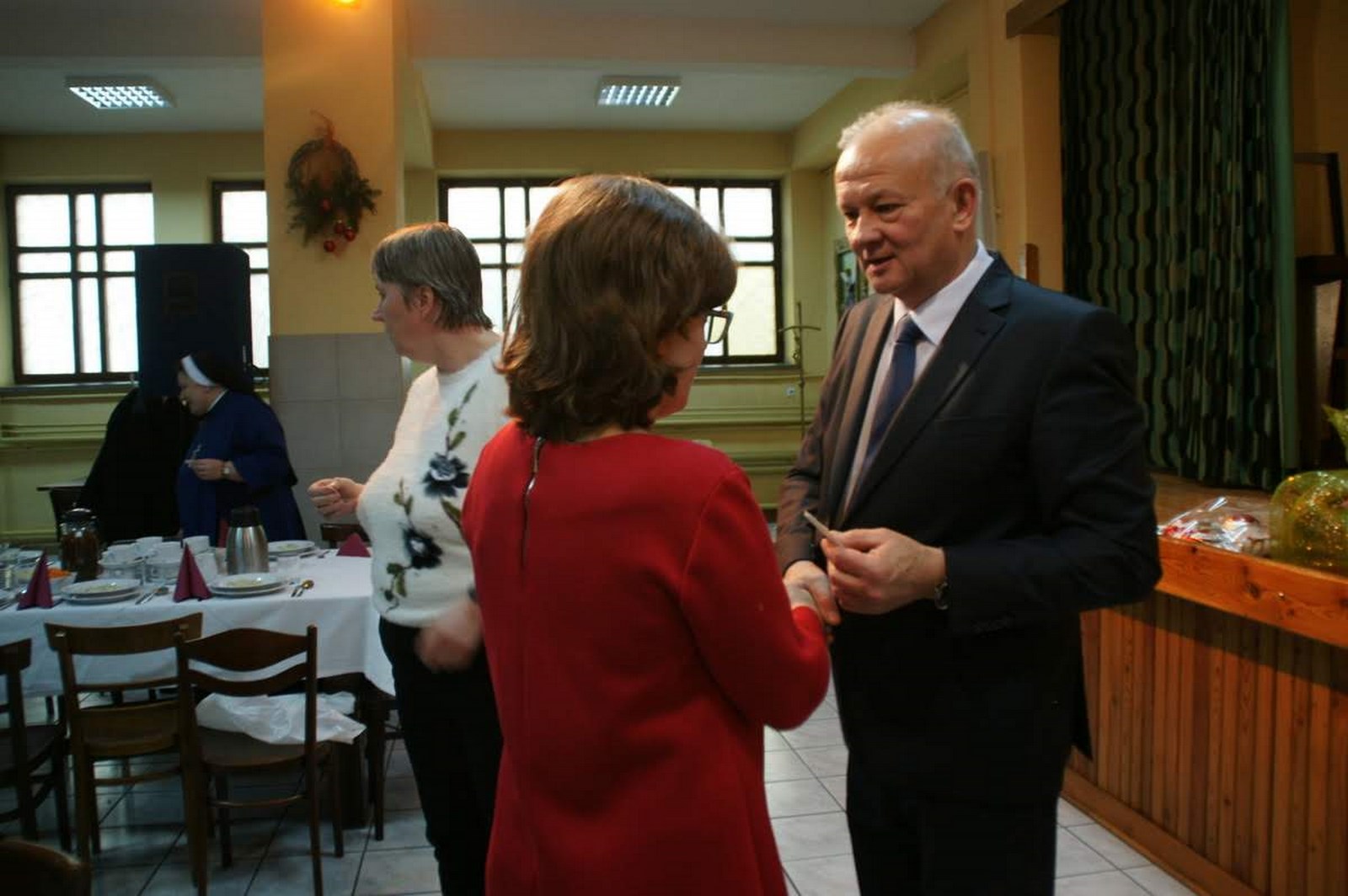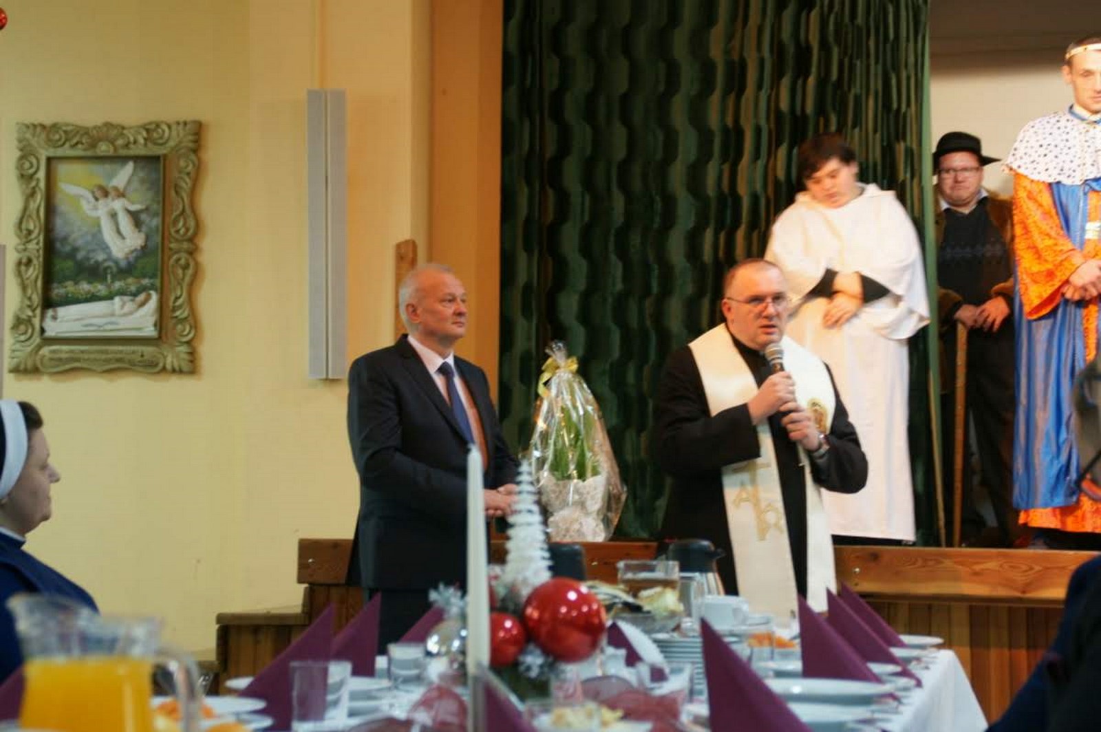 Nie zabrakło także kustosza sanktuarium św. Jakuba Apostoła w Brzesku - Józefa Drabika oraz duszpasterza osób niepełnosprawnych - Józefa Waśko, który odmówił modlitwę i poświęcił opłatki. Po wspólnym odśpiewaniu kolęd, wzajemnych życzeniach i tradycyjnym łamaniu się opłatkiem wszyscy zasiedli do wspólnego wigilijnego poczęstunku.