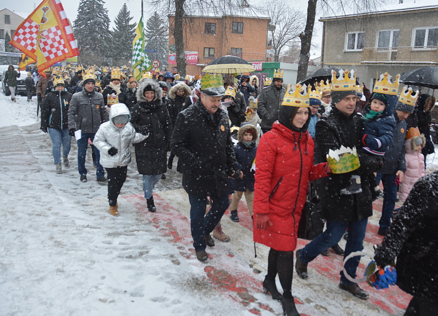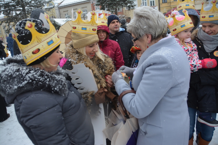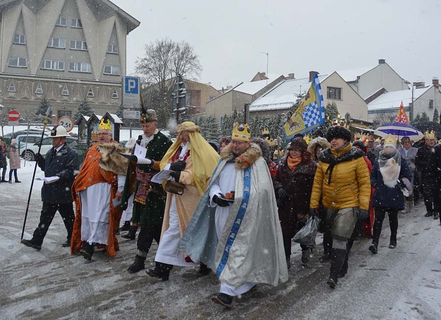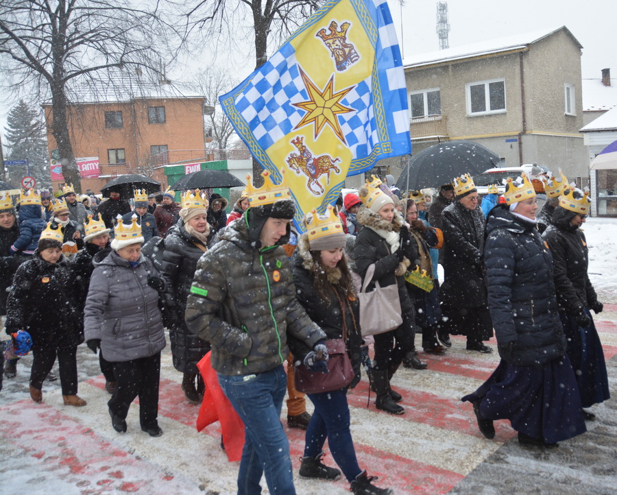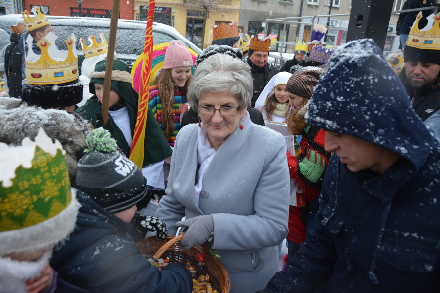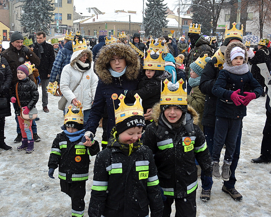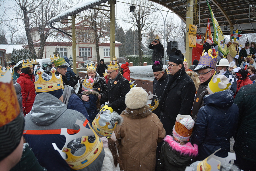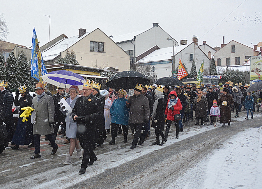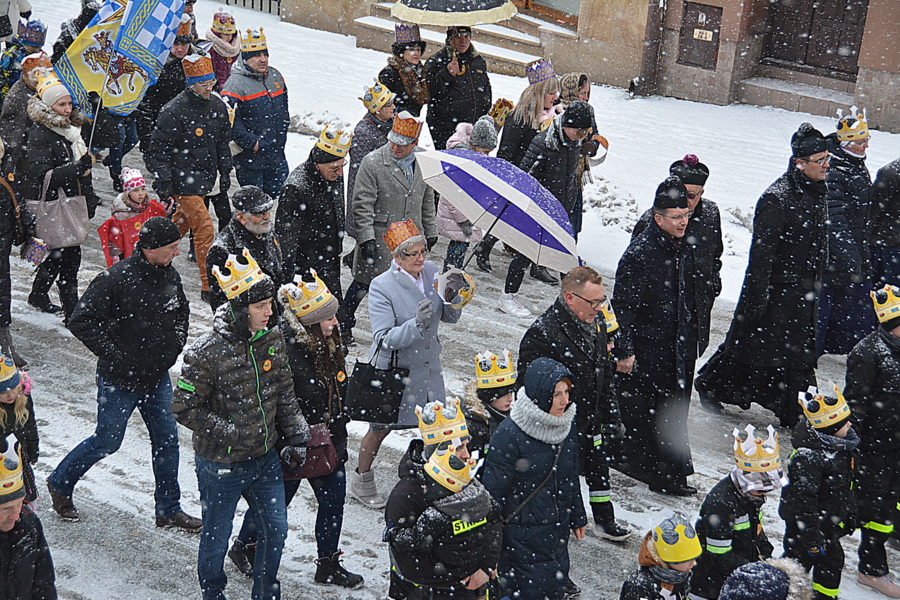 Już kilkanaście minut przed wymarszem na Plac Kazimierza tłumnie przybywali mieszkańcy, których burmistrz Tomasz Latocha oraz przewodnicząca rady miejskiej, Maria Kądziołka i miejscy radni obdarowywali koronami, śpiewnikami i pamiątkowymi naklejkami z symbolami Święta Trzech Króli, a ksiądz prałat Józef Drabik wraz z proboszczem parafii Miłosierdzia Bożego, prałatem Wojciechem Wernerem udzielili wszystkim błogosławieństwa.