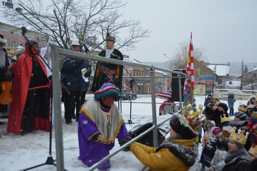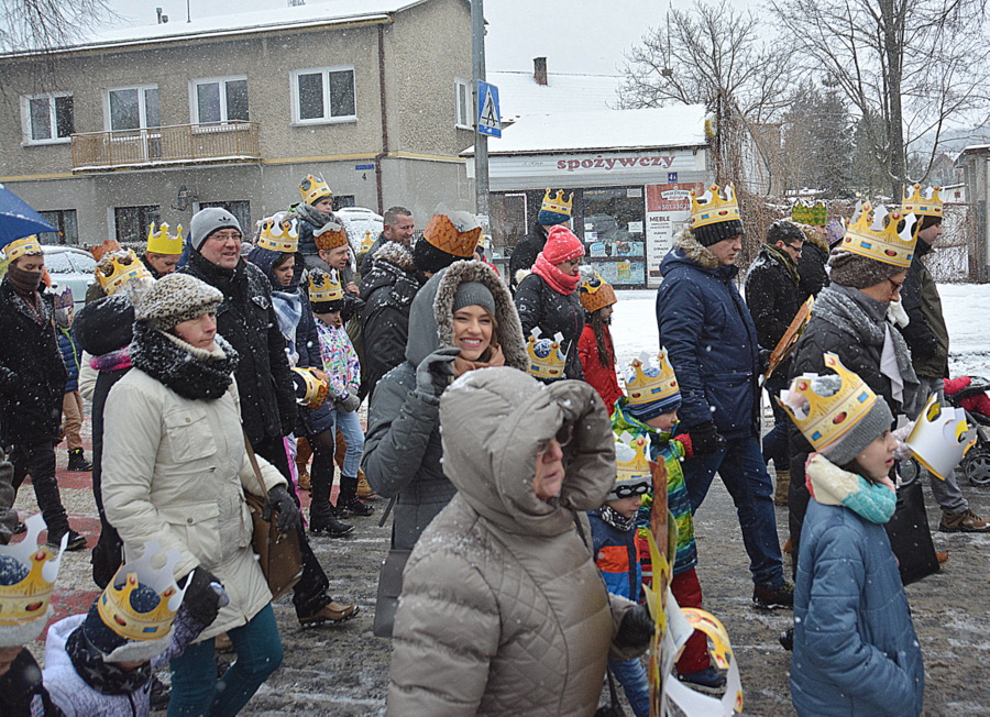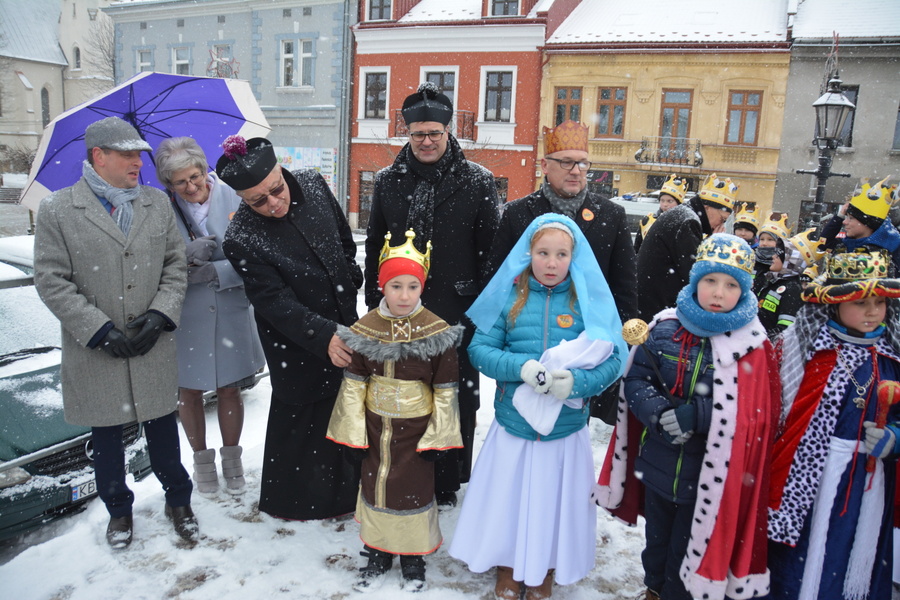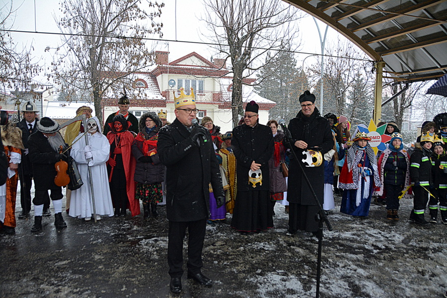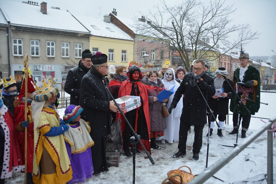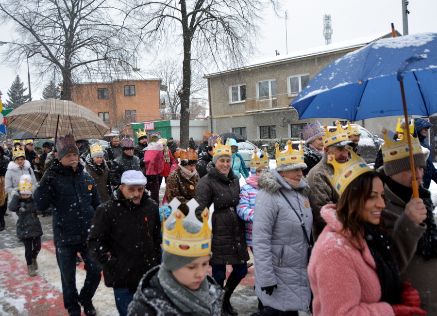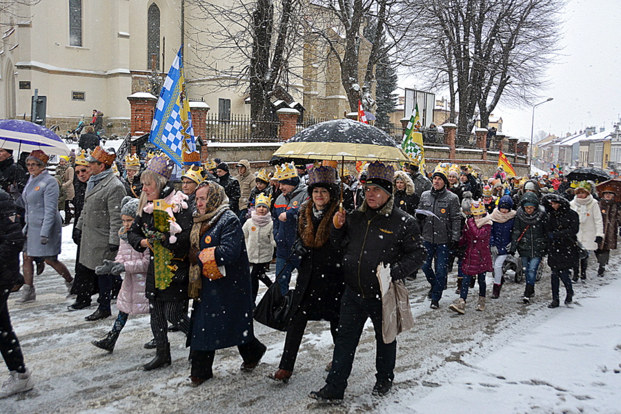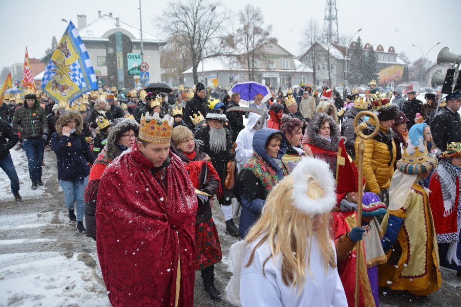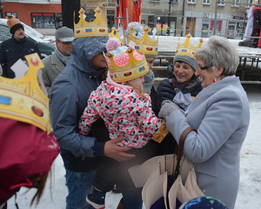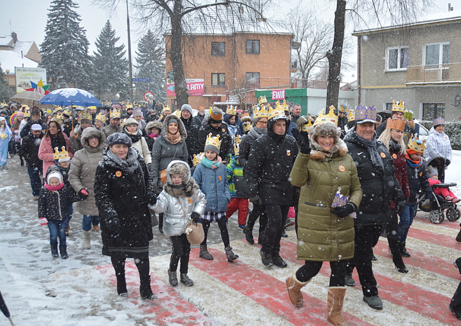 Już kilkanaście minut przed wymarszem na Plac Kazimierza tłumnie przybywali mieszkańcy, których burmistrz Tomasz Latocha oraz przewodnicząca rady miejskiej, Maria Kądziołka i miejscy radni obdarowywali koronami, śpiewnikami i pamiątkowymi naklejkami z symbolami Święta Trzech Króli, a ksiądz prałat Józef Drabik wraz z proboszczem parafii Miłosierdzia Bożego, prałatem Wojciechem Wernerem udzielili wszystkim błogosławieństwa.