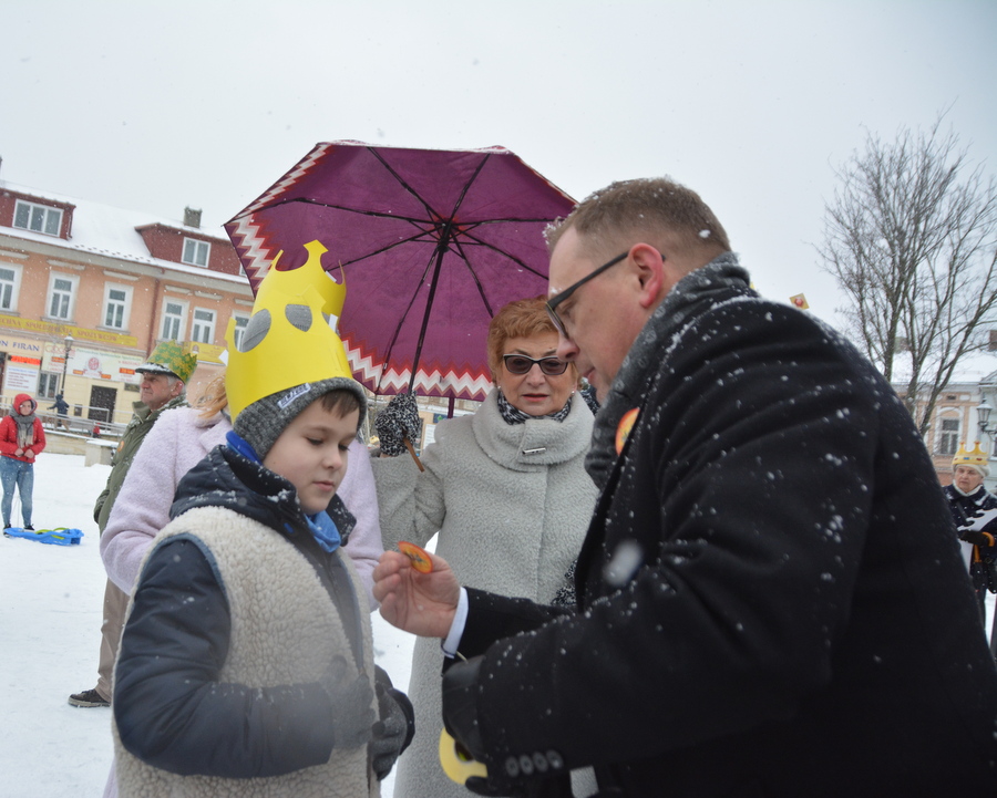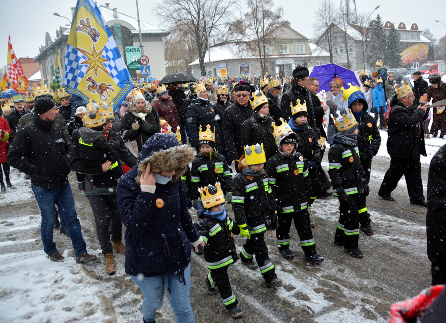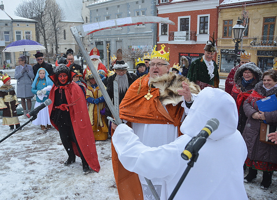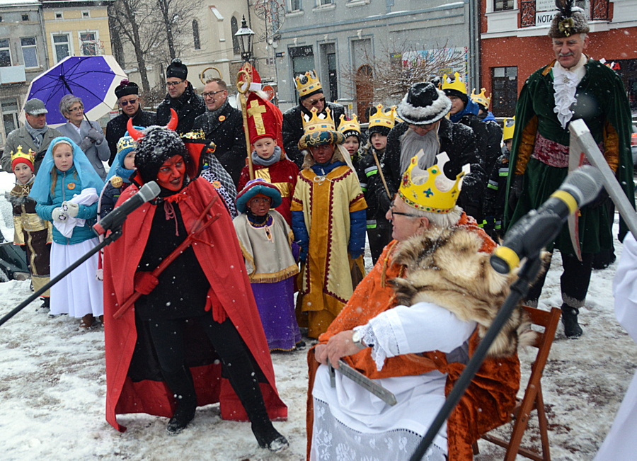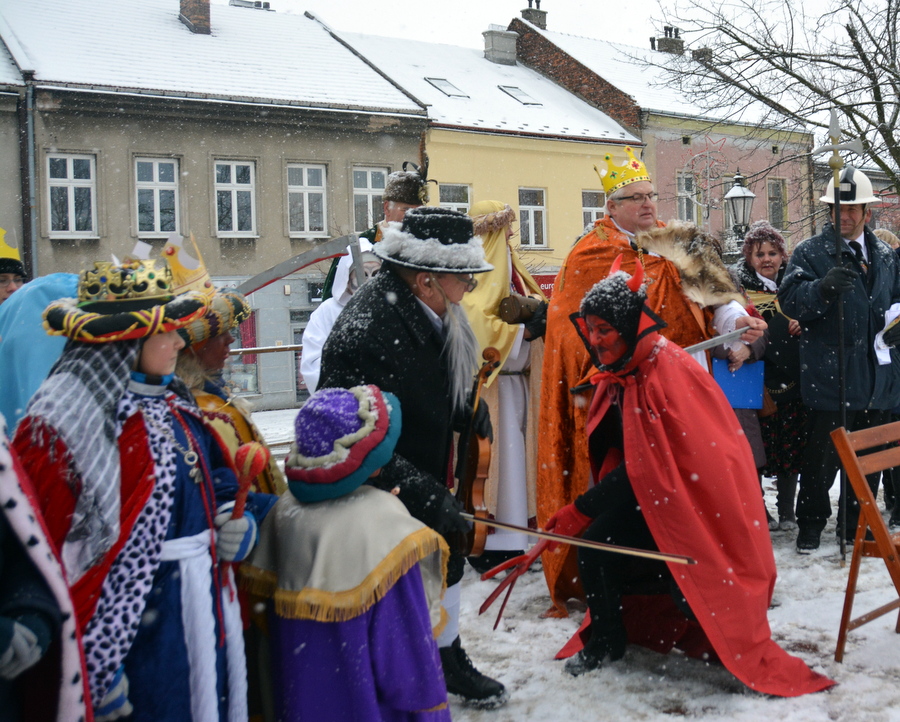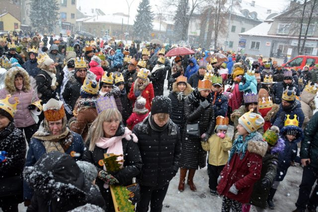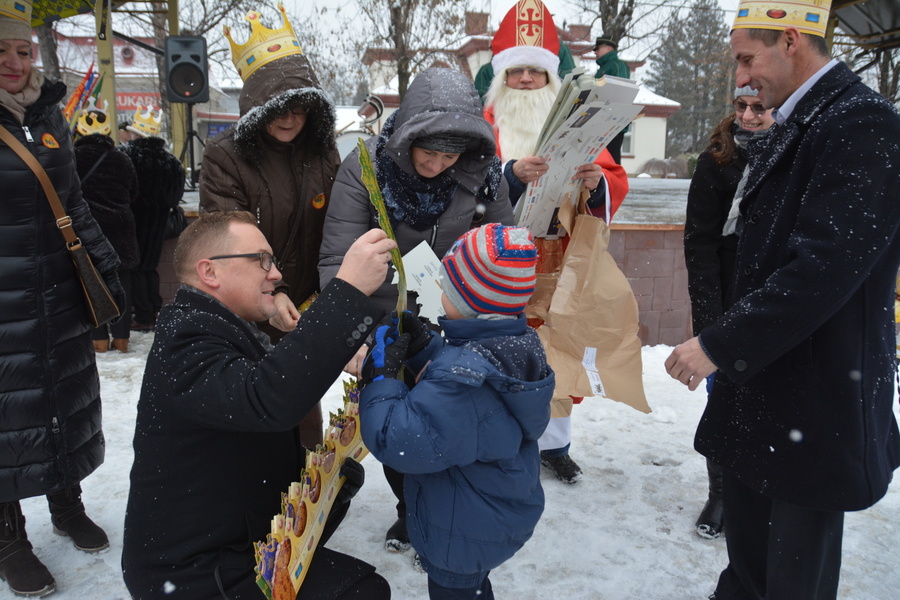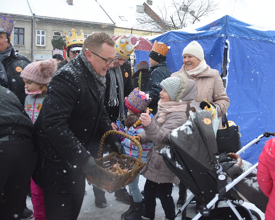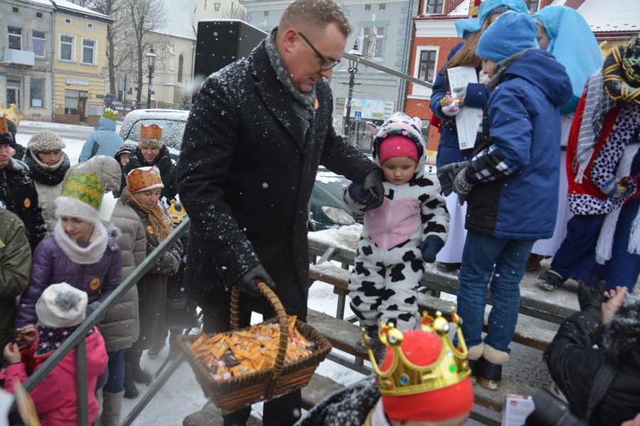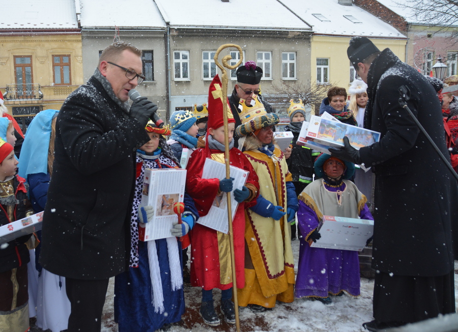 Już kilkanaście minut przed wymarszem na Plac Kazimierza tłumnie przybywali mieszkańcy, których burmistrz Tomasz Latocha oraz przewodnicząca rady miejskiej, Maria Kądziołka i miejscy radni obdarowywali koronami, śpiewnikami i pamiątkowymi naklejkami z symbolami Święta Trzech Króli, a ksiądz prałat Józef Drabik wraz z proboszczem parafii Miłosierdzia Bożego, prałatem Wojciechem Wernerem udzielili wszystkim błogosławieństwa.