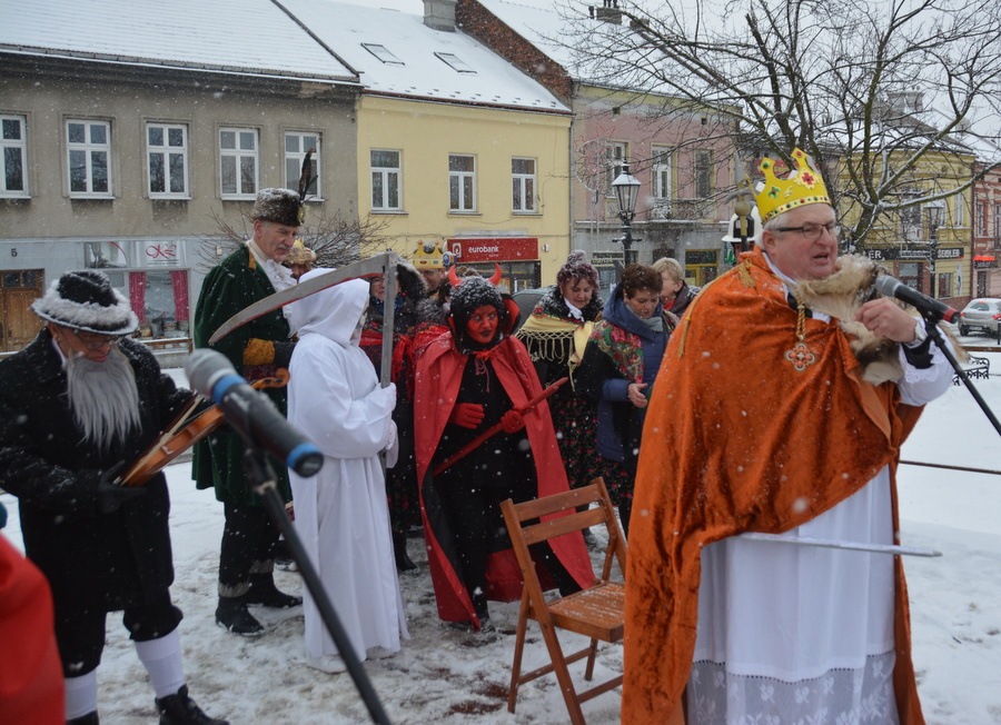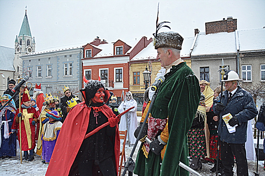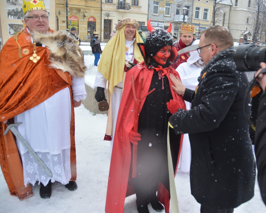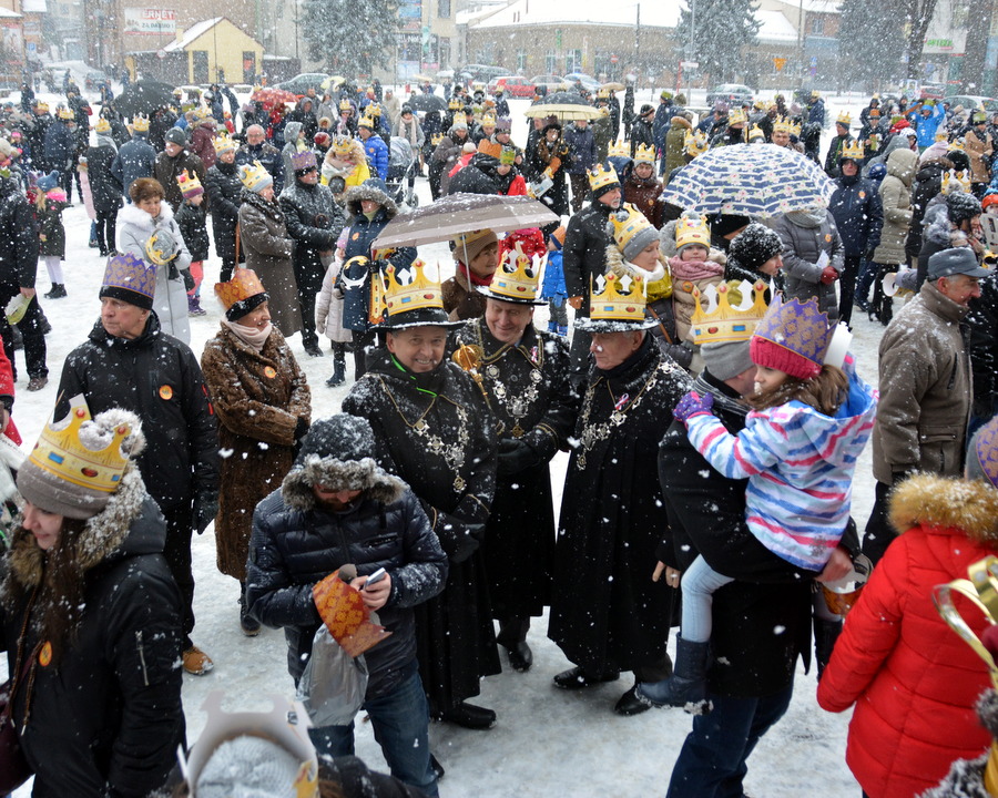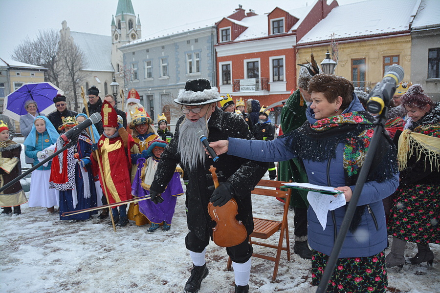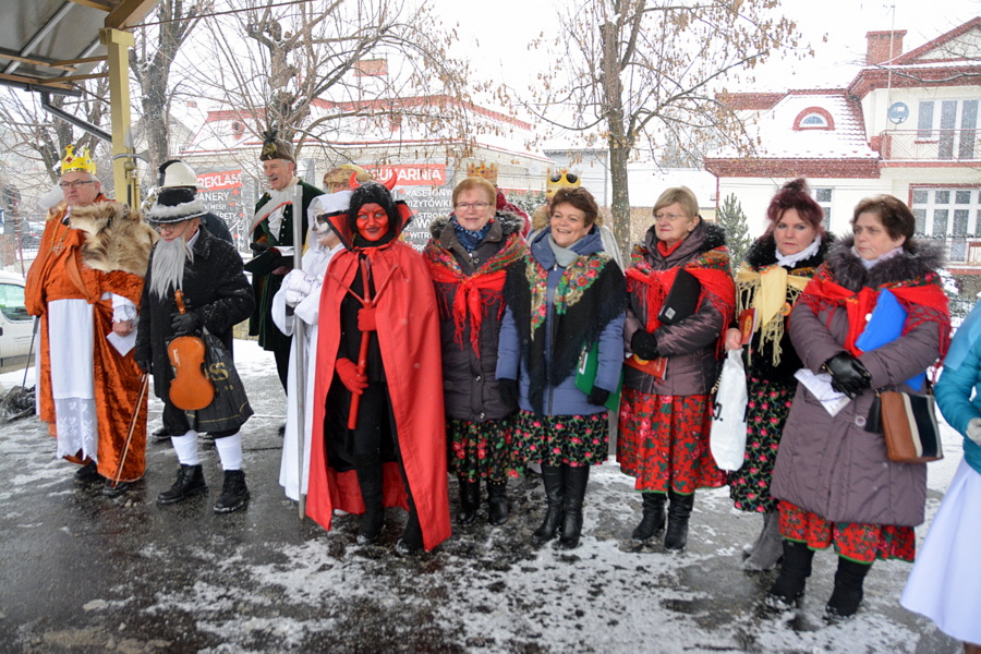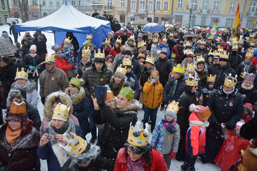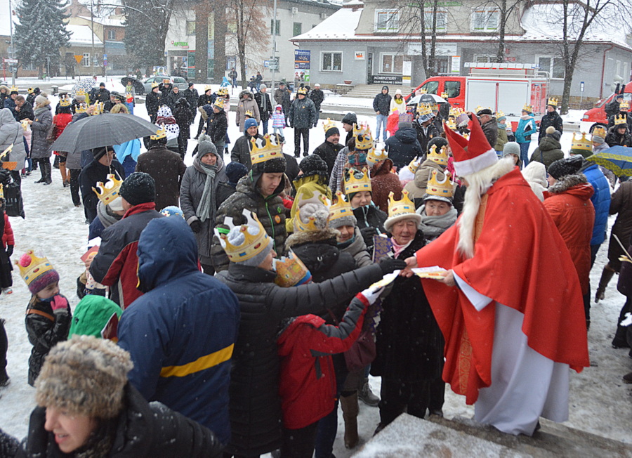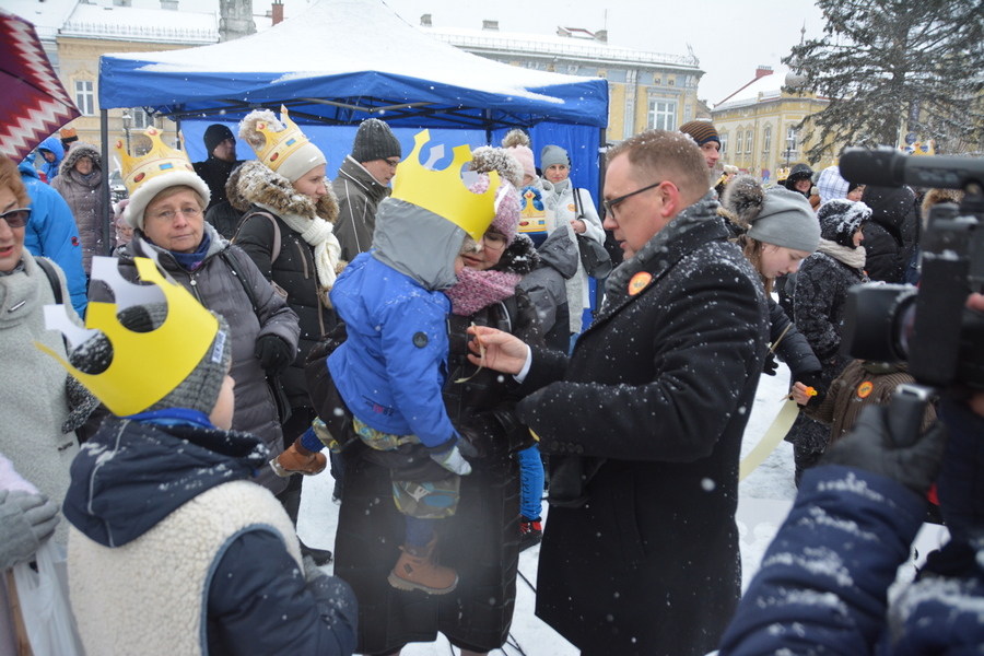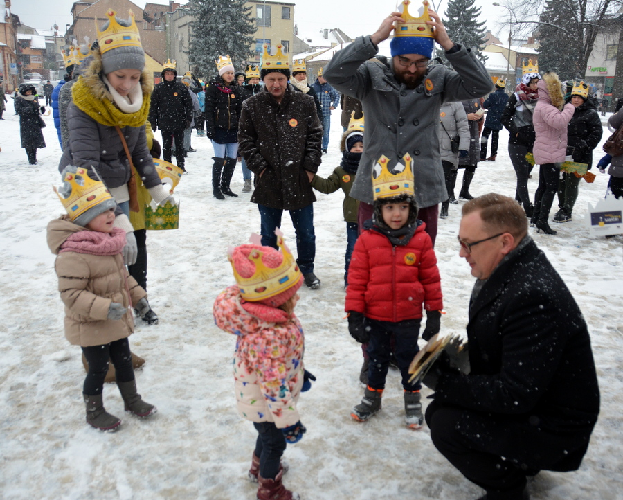 Już kilkanaście minut przed wymarszem na Plac Kazimierza tłumnie przybywali mieszkańcy, których burmistrz Tomasz Latocha oraz przewodnicząca rady miejskiej, Maria Kądziołka i miejscy radni obdarowywali koronami, śpiewnikami i pamiątkowymi naklejkami z symbolami Święta Trzech Króli, a ksiądz prałat Józef Drabik wraz z proboszczem parafii Miłosierdzia Bożego, prałatem Wojciechem Wernerem udzielili wszystkim błogosławieństwa.