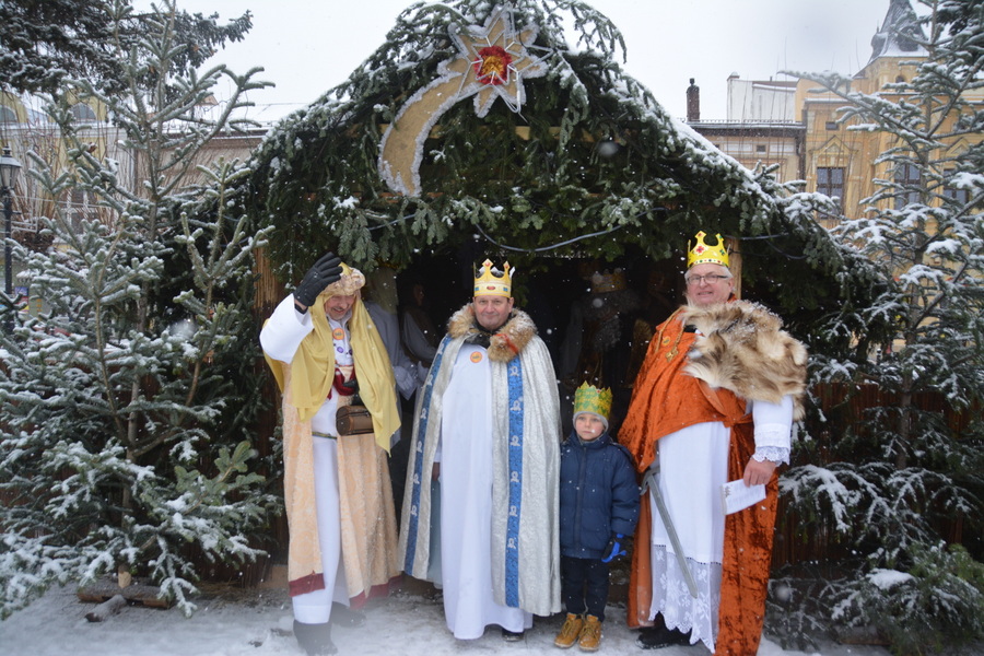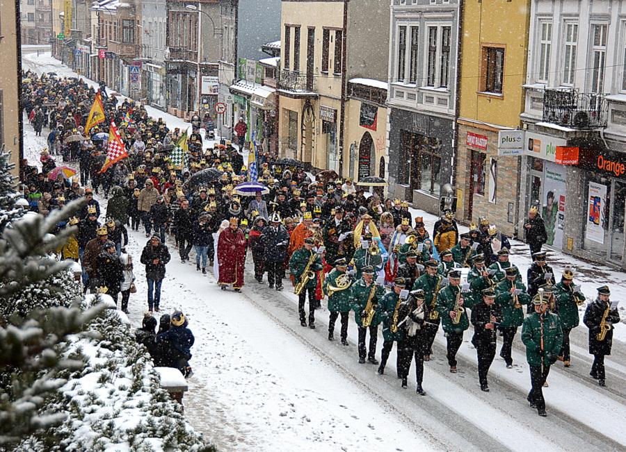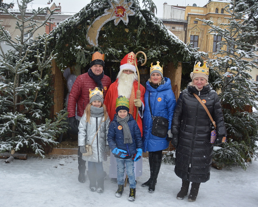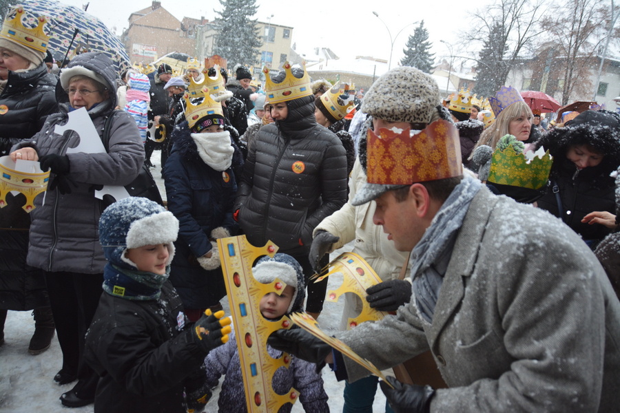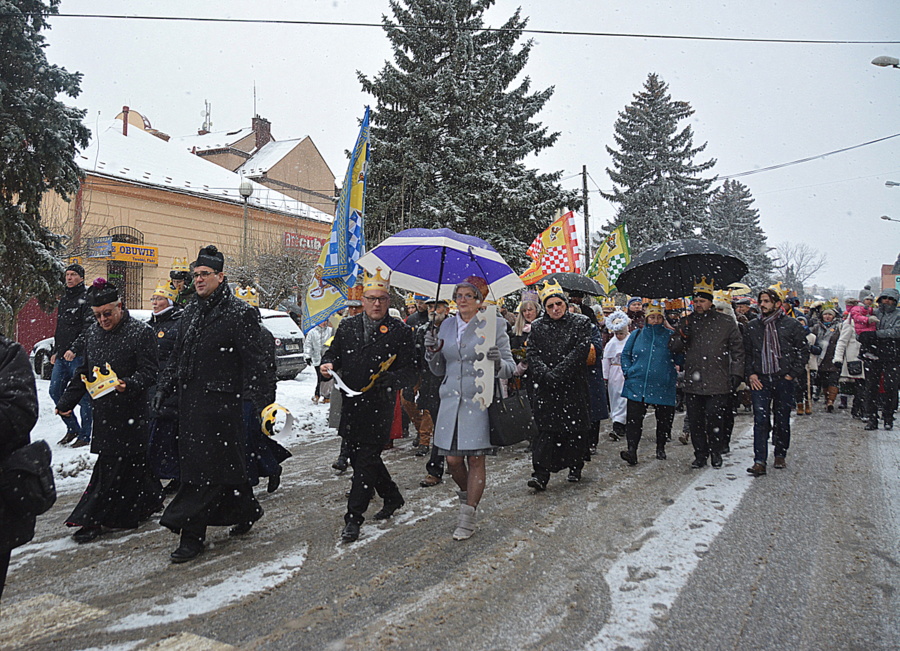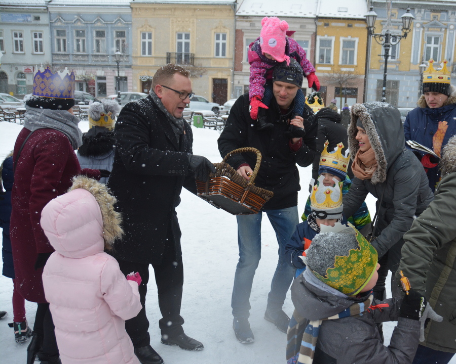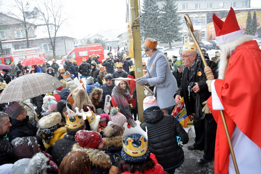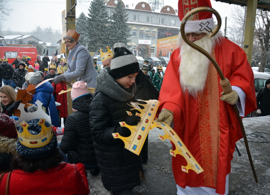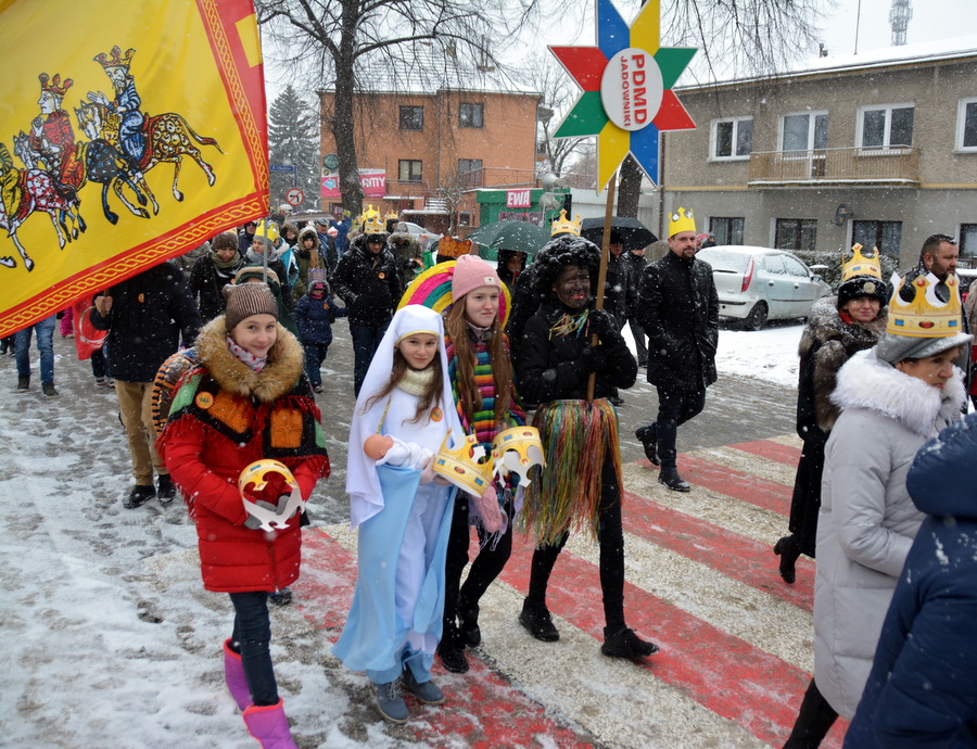 Już kilkanaście minut przed wymarszem na Plac Kazimierza tłumnie przybywali mieszkańcy, których burmistrz Tomasz Latocha oraz przewodnicząca rady miejskiej, Maria Kądziołka i miejscy radni obdarowywali koronami, śpiewnikami i pamiątkowymi naklejkami z symbolami Święta Trzech Króli, a ksiądz prałat Józef Drabik wraz z proboszczem parafii Miłosierdzia Bożego, prałatem Wojciechem Wernerem udzielili wszystkim błogosławieństwa.