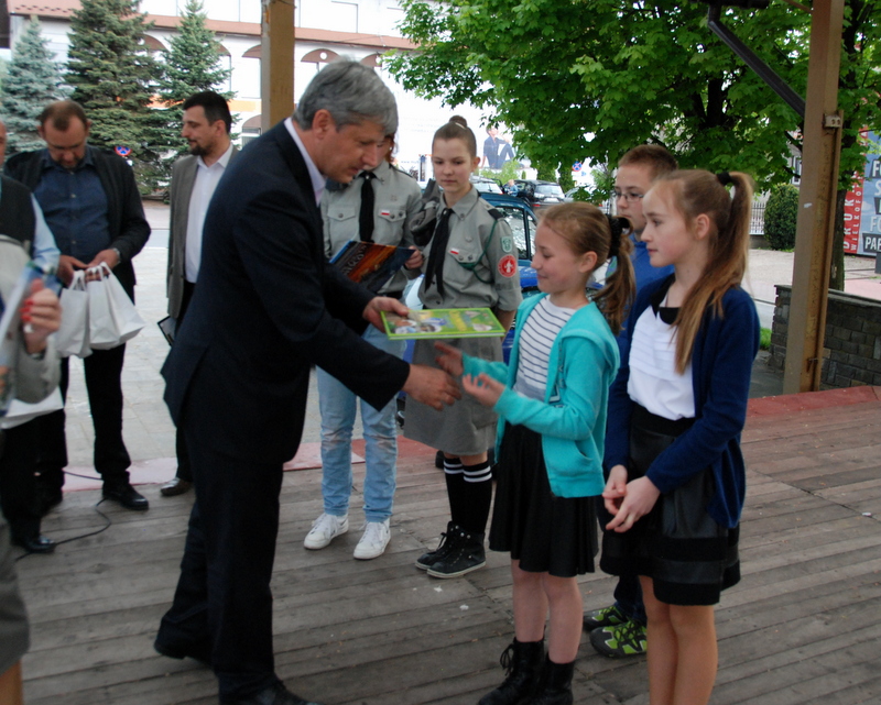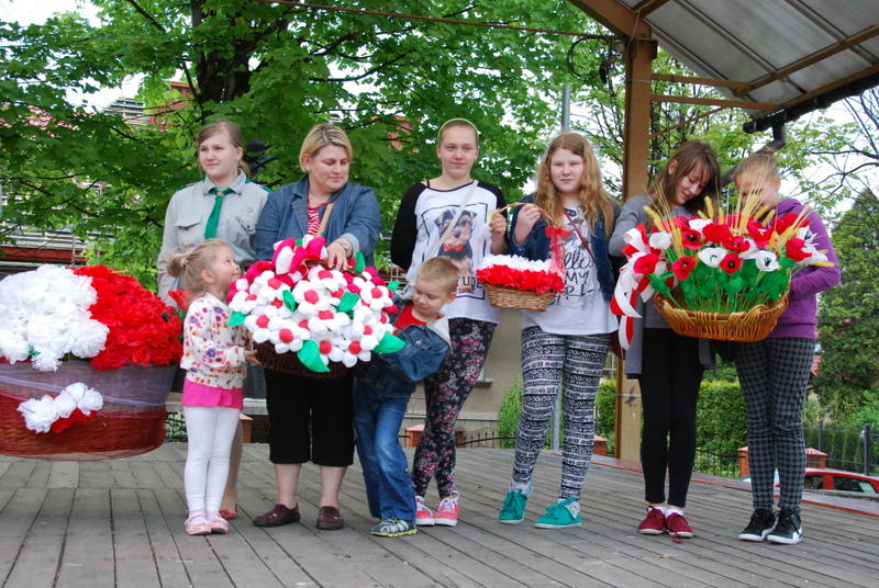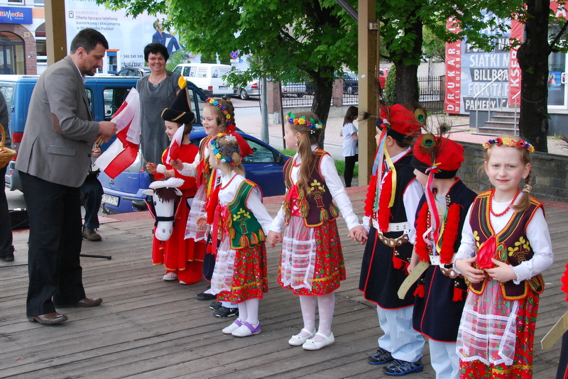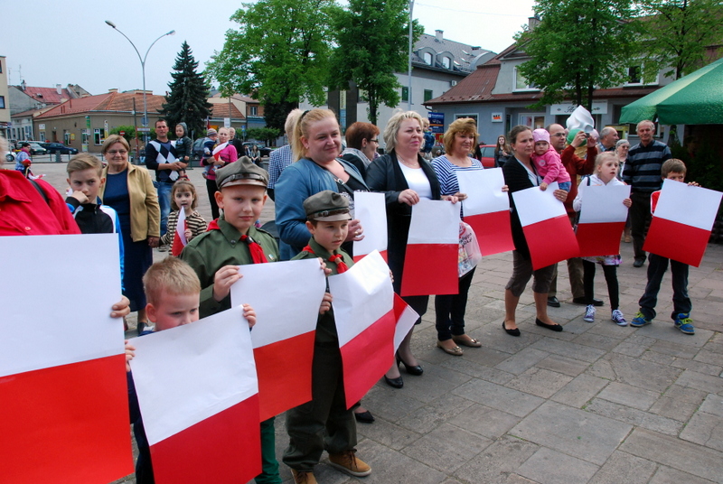 Na zakończenie, z okazji dzisiejszego święta wszyscy obecni otrzymali bezpłatnie flagi narodowe, a burmistrz Grzegorz Wawryka podziękował za uczestnictwo w tym wydarzeniu, za pielęgnację tego obyczaju, za przystrajanie swoich domów przy okazji świąt państwowych, zapraszając do obchodów Święta Narodowego 3 Maja.