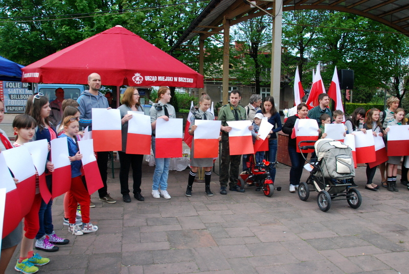 Organizatorzy uroczystości - Brzeski Hufiec ZHP im. M. Kopernika, Stowarzyszenie Ziemi Brzeskiej Porozumienie, wraz z Urzędem Miejskim przygotowali spotkanie w formie happeningu z wieloma konkursami. Rozpoczął się występem najmłodszych uczestników, przedszkolaków z PP Nr 9., po czym utworzono żywą flagę „Serce dla Białoczerwonej” która osiągnęła długość 41 metrów.