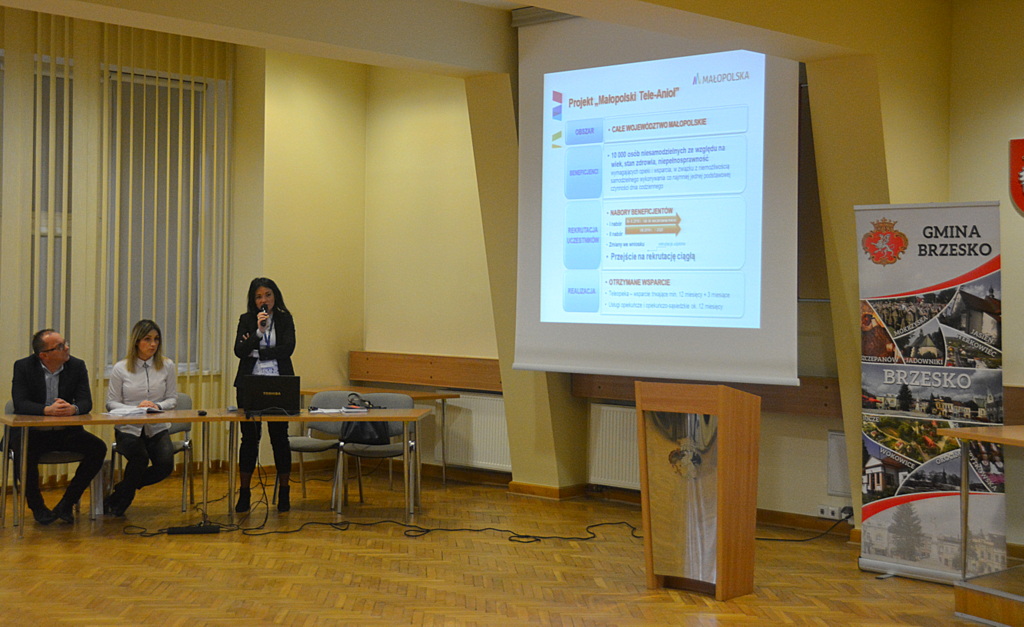 W Urzędzie Miejskim w Brzesku odbyło się spotkanie w sprawie projektu Małopolski Tele-Anioł. Na zaproszenie burmistrza Brzeska Tomasza Latochy w spotkaniu wzięła udział Agata Bartoszek – przedstawicielka Departamentu Zdrowia i Polityki Społecznej Urzędu Marszałkowskiego Województwa Małopolskiego w Krakowie. W spotkaniu uczestniczyli licznie przybyli przedstawiciele stowarzyszeń, organizacji non-profit działających na rzecz osób niepełnosprawnych i seniorów oraz przedstawiciele brzeskiego MOPS i PCPR. Uczestnicy spotkania mieli okazję do zapoznania się z zasadami realizacji projektu oraz ze sposobem wypełnienia formularza rekrutacyjnego.