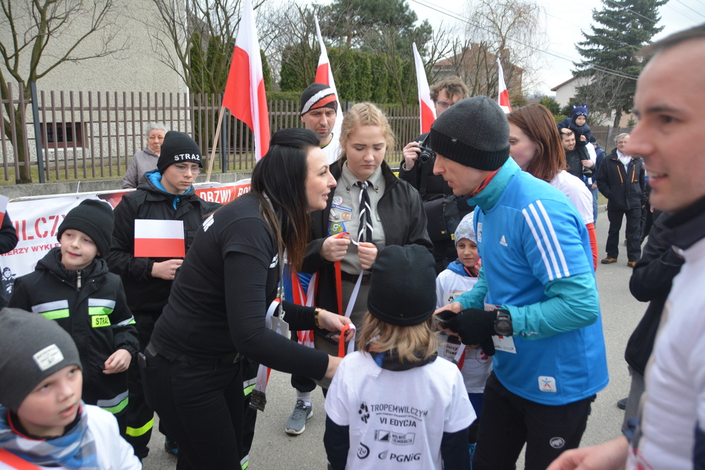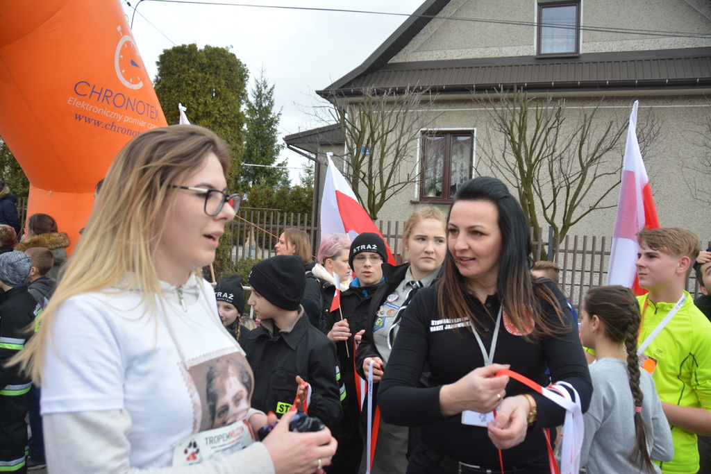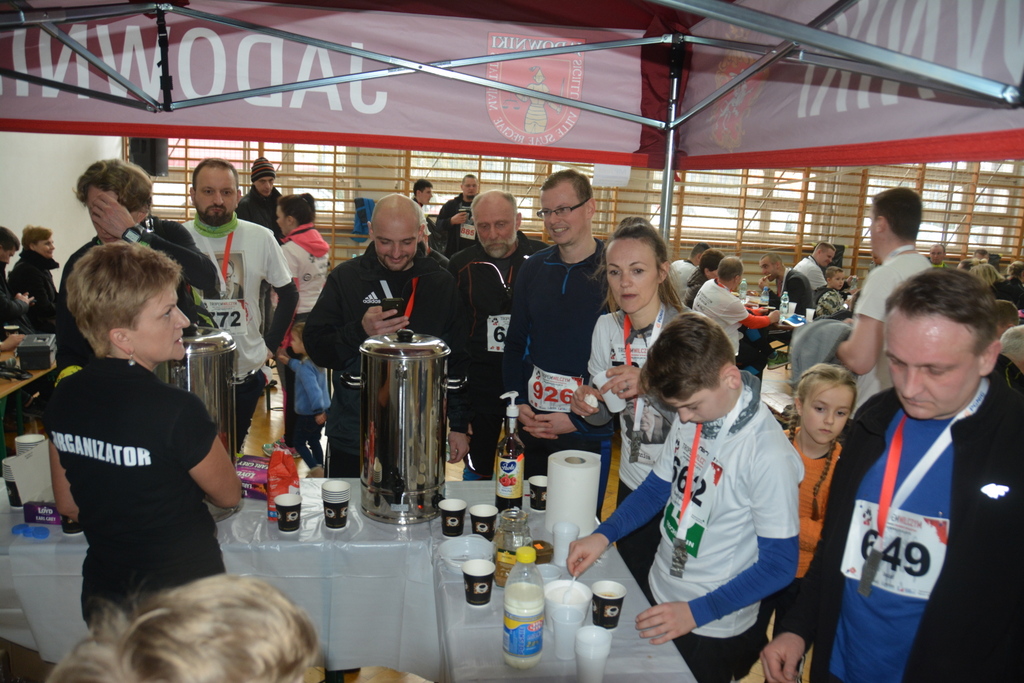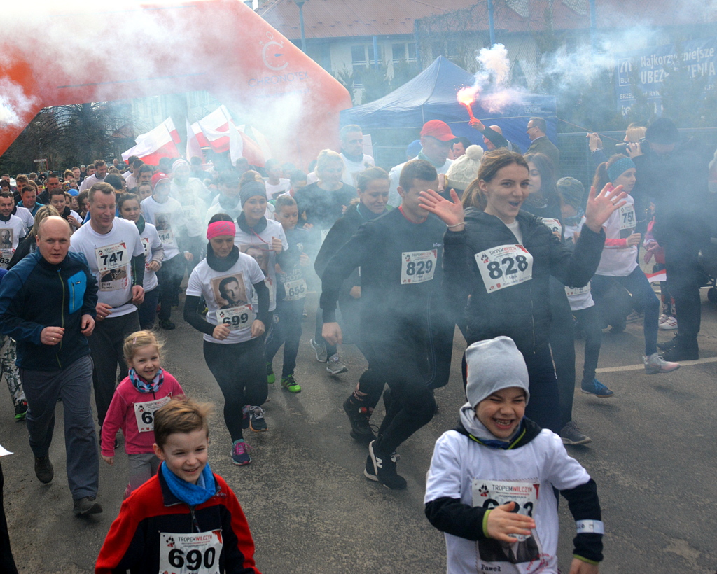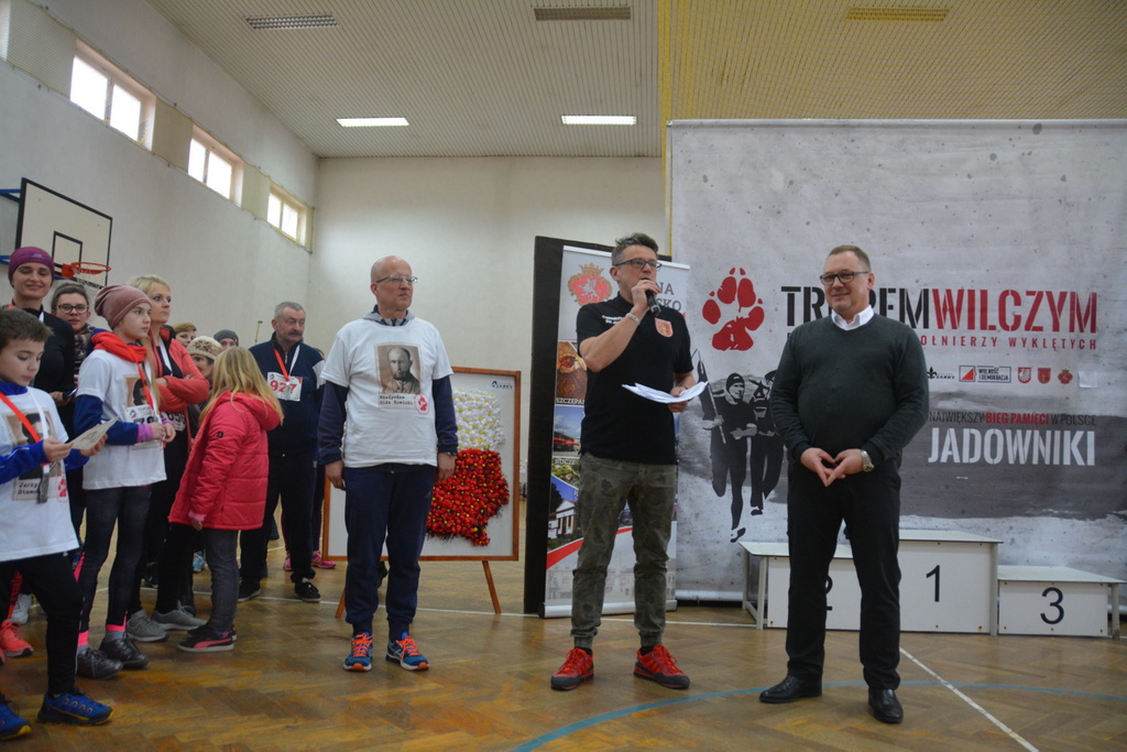 Od godziny dziewiątej trwały zapisy i odbieranie pakietów startowych. Punktualnie o godzinie 12-tej na sygnał dany przez wicestarostę Macieja Podobińskiego wystartowali uczestnicy biegu głównego. Dwadzieścia minut później sygnał do startu dla ponad stu pięćdziesięciu biegaczy na dystansie 1963 metrów dała radna Jadwiga Dadej. Na starcie i mecie usytuowanej przy Zespole Szkolno-Przedszkolnym w Jadownikach uczestników Biegu Tropem Wilczym oklaskiwali tłumnie przybyli mieszkańcy Jadownikach oraz rodziny biegaczy. O dobre samopoczucie i jak najlepsze wrażenia uczestników biorących udział w czwartej edycji biegu w Jadownikach zadbali: główny organizator biegu, sołtys Jarosław Sorys wraz z Michałem Krzywdą, prezesem Stowarzyszanie Nasze Jadowniki, harcmistrzem Bartłomiejem Turlejem, komendantem Szczepu Czarnego oraz liczne grono współpracowników na czele z Marią Rojkowicz, Marią Mularz, Agnieszką Dadej, Alicją Sorys, Jadwigą Dadej, Dominkiem Dadejem, Łukaszem Dadejem, Sławomirem Rojkowiczem i Wiesławem Piaseckim.