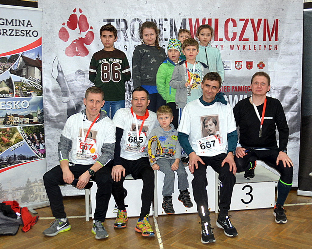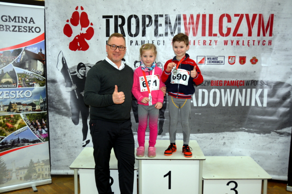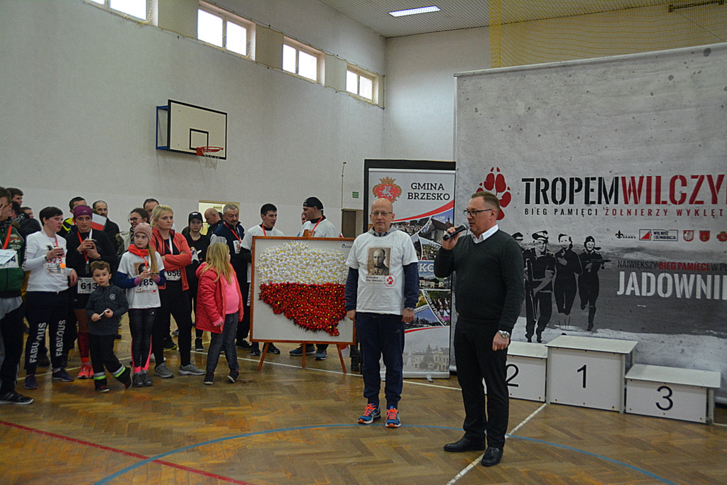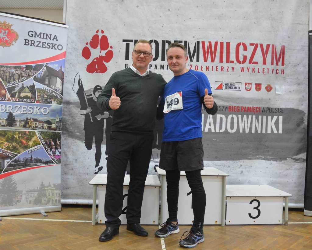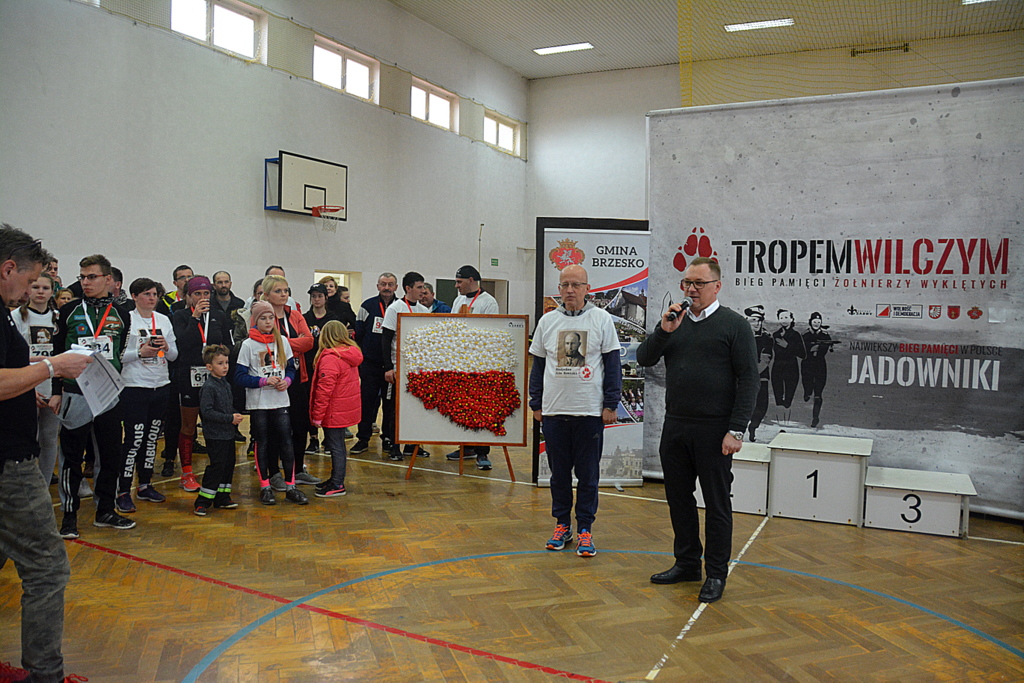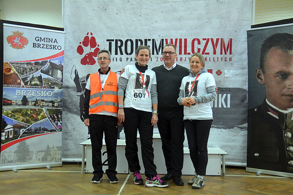 O godzinie 14-tej burmistrz Brzeska, Tomasz Latocha wraz z sołtysem, a zarazem radnym Jarosławem Sorysem, radną Jadwigą Dadej i radną powiatową Justyną Wojtowicz –Wodą wręczyli zwycięzcom puchary oraz nagrody rzeczowe.Pierwsze miejsce w biegu na 10 kilometrów w kategorii pań z czasem 41 minut 31 sekund zdobyła Patrycja Świerczek z Jadownik reprezentująca Klub Biegowy Perła. Drugie miejsce zajęła Katarzyna Kmieć z Perły, a trzecie Izabela Klecka z Brzeska.Wśród panów, pierwsze miejsce z czasem 37 minut 38 sekund zajął Piotr Moździerz z Tuchowa , reprezentujący LKS Burzyn. Drugie miejsce wywalczył Waldemar Matyaszek z Jasienia, reprezentujący Klub Biegowy Perła, a trzecie zajął Kamil Skiba z Tarnowa, reprezentant PTG Sokół Świat Pracy Tarnów.Na dystansie 1963 metrów zwyciężył Maciej Repetowski z Okocimia , reprezentujący GH Żołnierze Niezłomni, Niepokorni, Wyklęci, drugi był Tomasz Kuder z Jadownik, trzeci Remigiusz Mietła z Brzeska. Jako pierwsza wśród kobiet na tym dystansie była Adrianna Kuder z Jadownik, reprezentująca klub Cze-Mi, druga wśród kobiet była Eryka Brach z Brzeska, reprezentująca MLUKS Tarnów, trzecia była Weronika Matyaszek z Jasienia.Sponsorami czwartej edycji Biegu Tropem Wilczymw Jadownikach byli: burmistrz Brzeska Tomasz Latocha, MPEC Brzesko, Pro-Fil Aluminium, El-Mont Bogdan Cebula, MARK Brzesko, Rezonas Powiśle, Janusz Gladysz, firma Avangarde Łukasz i Dominik Dadej, Zakład Posadzkarsko-Murarski Janusz Mularz, firma Balustrady-Bramy Marcin Zacher, Elektro-Szyld Wiesław Piasecki.