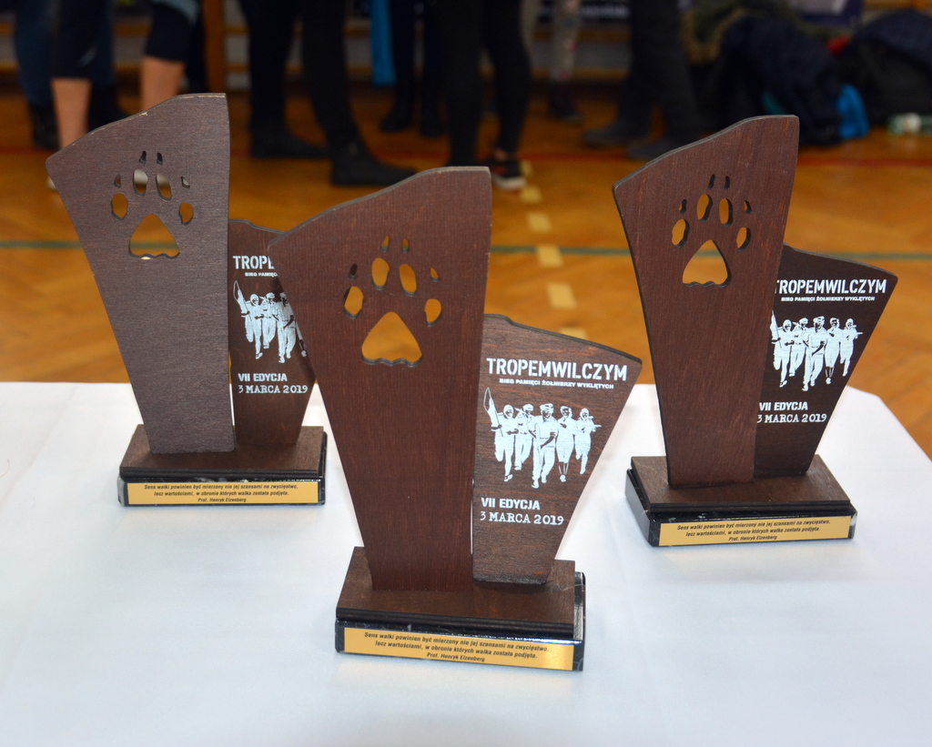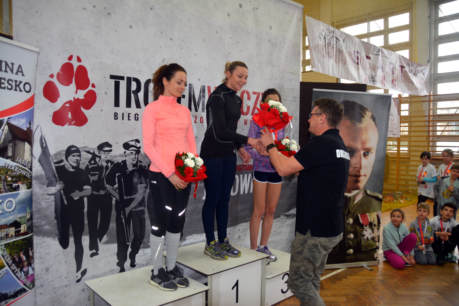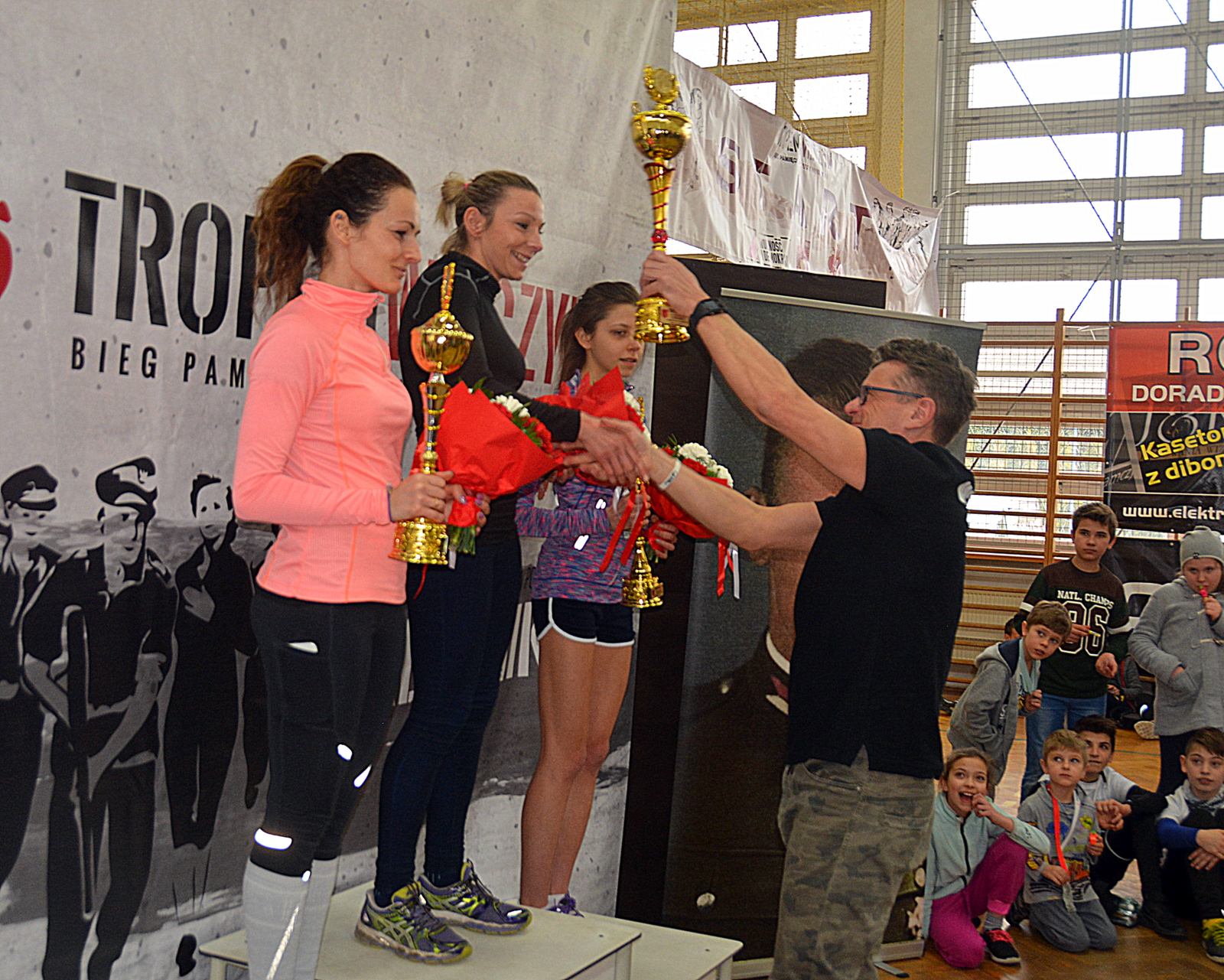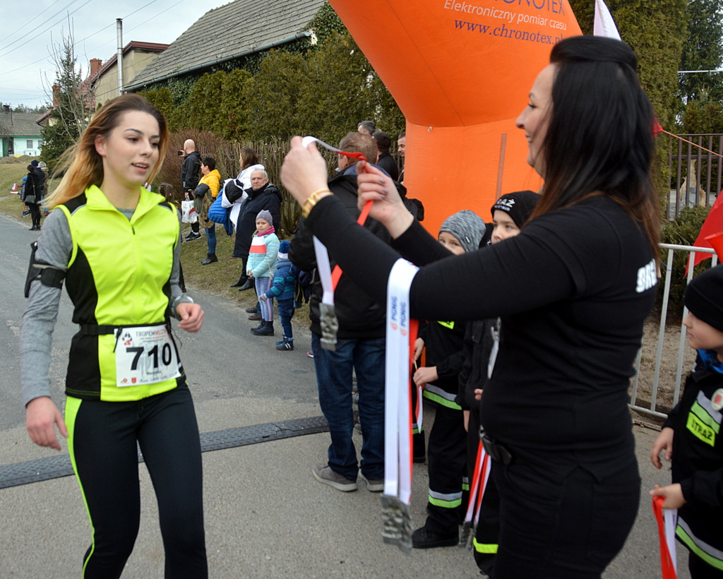 O godzinie 14-tej burmistrz Brzeska, Tomasz Latocha wraz z sołtysem, a zarazem radnym Jarosławem Sorysem, radną Jadwigą Dadej i radną powiatową Justyną Wojtowicz –Wodą wręczyli zwycięzcom puchary oraz nagrody rzeczowe.Pierwsze miejsce w biegu na 10 kilometrów w kategorii pań z czasem 41 minut 31 sekund zdobyła Patrycja Świerczek z Jadownik reprezentująca Klub Biegowy Perła. Drugie miejsce zajęła Katarzyna Kmieć z Perły, a trzecie Izabela Klecka z Brzeska.Wśród panów, pierwsze miejsce z czasem 37 minut 38 sekund zajął Piotr Moździerz z Tuchowa , reprezentujący LKS Burzyn. Drugie miejsce wywalczył Waldemar Matyaszek z Jasienia, reprezentujący Klub Biegowy Perła, a trzecie zajął Kamil Skiba z Tarnowa, reprezentant PTG Sokół Świat Pracy Tarnów.Na dystansie 1963 metrów zwyciężył Maciej Repetowski z Okocimia , reprezentujący GH Żołnierze Niezłomni, Niepokorni, Wyklęci, drugi był Tomasz Kuder z Jadownik, trzeci Remigiusz Mietła z Brzeska. Jako pierwsza wśród kobiet na tym dystansie była Adrianna Kuder z Jadownik, reprezentująca klub Cze-Mi, druga wśród kobiet była Eryka Brach z Brzeska, reprezentująca MLUKS Tarnów, trzecia była Weronika Matyaszek z Jasienia.Sponsorami czwartej edycji Biegu Tropem Wilczymw Jadownikach byli: burmistrz Brzeska Tomasz Latocha, MPEC Brzesko, Pro-Fil Aluminium, El-Mont Bogdan Cebula, MARK Brzesko, Rezonas Powiśle, Janusz Gladysz, firma Avangarde Łukasz i Dominik Dadej, Zakład Posadzkarsko-Murarski Janusz Mularz, firma Balustrady-Bramy Marcin Zacher, Elektro-Szyld Wiesław Piasecki.