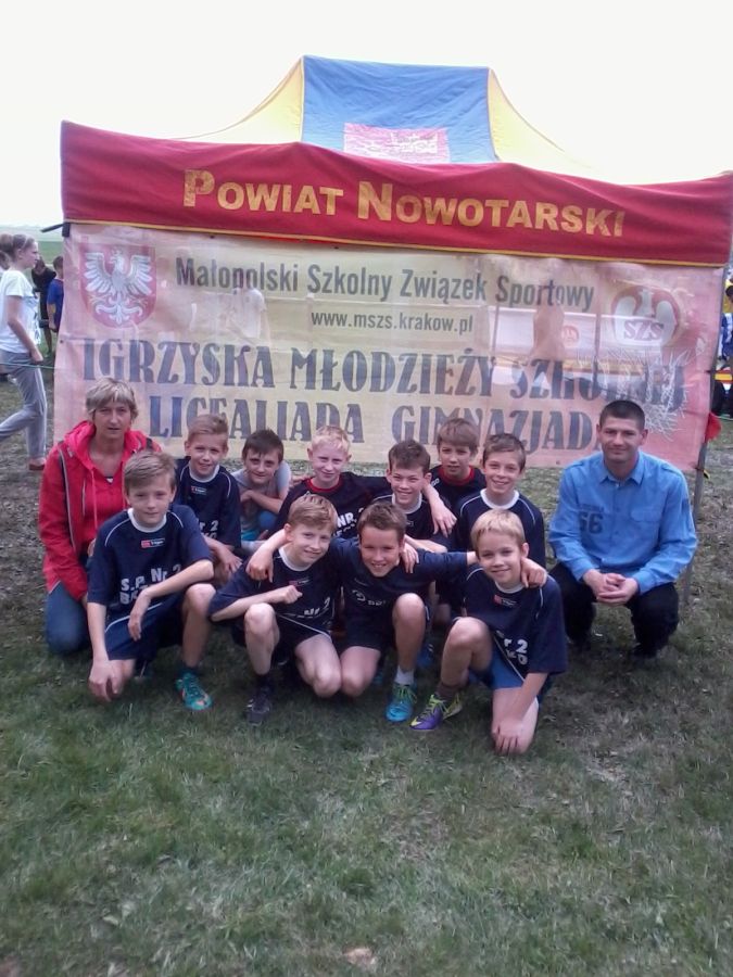 Wielki sukces odnieśli zawodnicy Publicznej Szkoły Podstawowej nr 2 w Brzesku, którzy w konkurencji 9x1000m, po wspaniałym biegu zajęli rewelacyjne trzecie miejsce, ulegając jedynie szkołom ze Słopnic i z Gdowa. Na sukces pracowali: najmłodszy startujący Kamil Hebda (klasa III), Damian Boroń, Piotr Owca (klasy IV), Mateusz Bolek, Remigiusz Mietła, Mateusz Łanocha (klasy V), Bartłomiej Damasiewicz, Arkadiusz Zapiór, Jakub Mendel (klasy VI). Rezerwowym w finale był Jakub Widła z klasy piątej, a w zawodach gminnych dodatkowo występowali Aleksander Jadczak (kl. IV) i Kacper Kmiecik (kl. VI). Opiekunem był Marcin Gromadzki.
