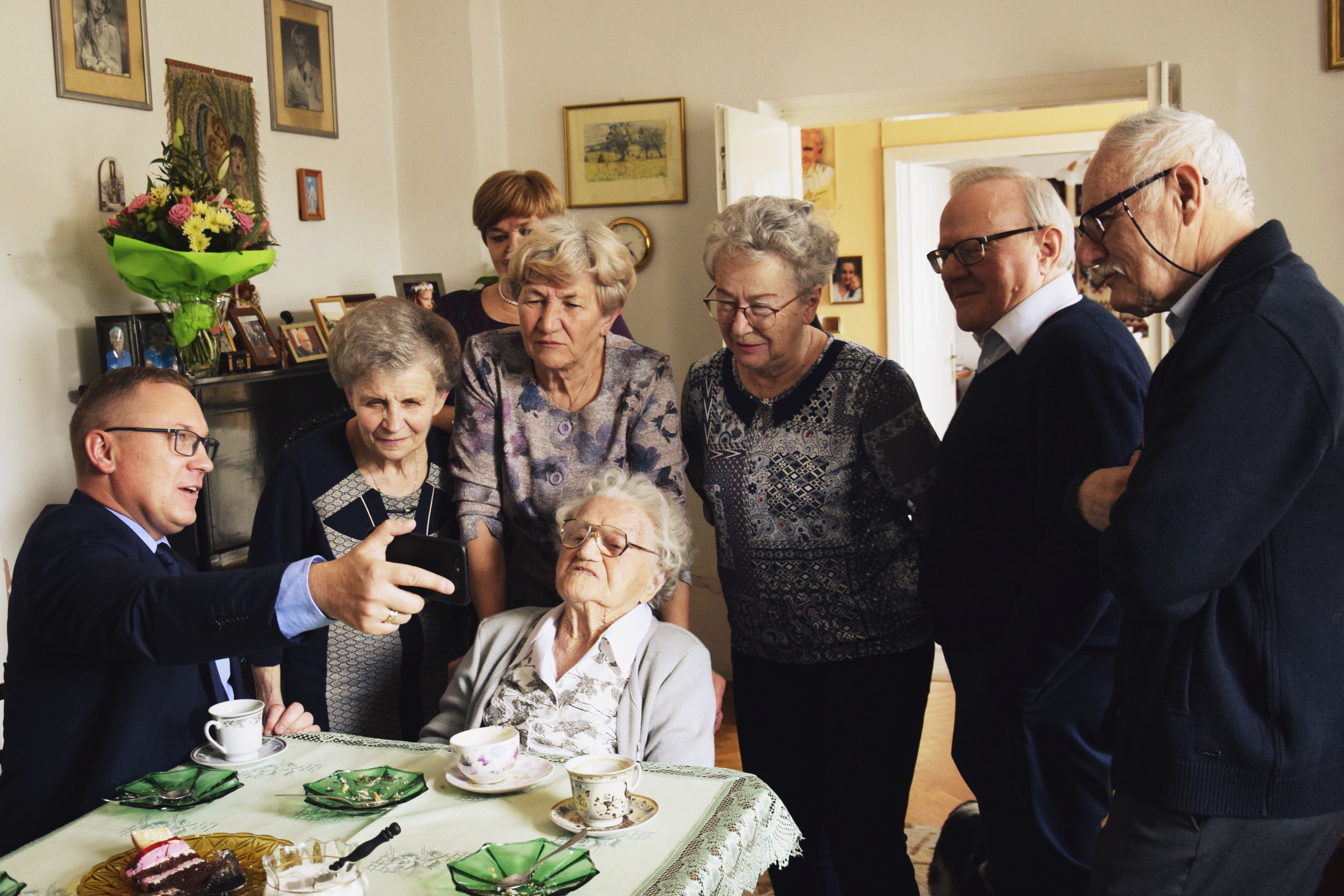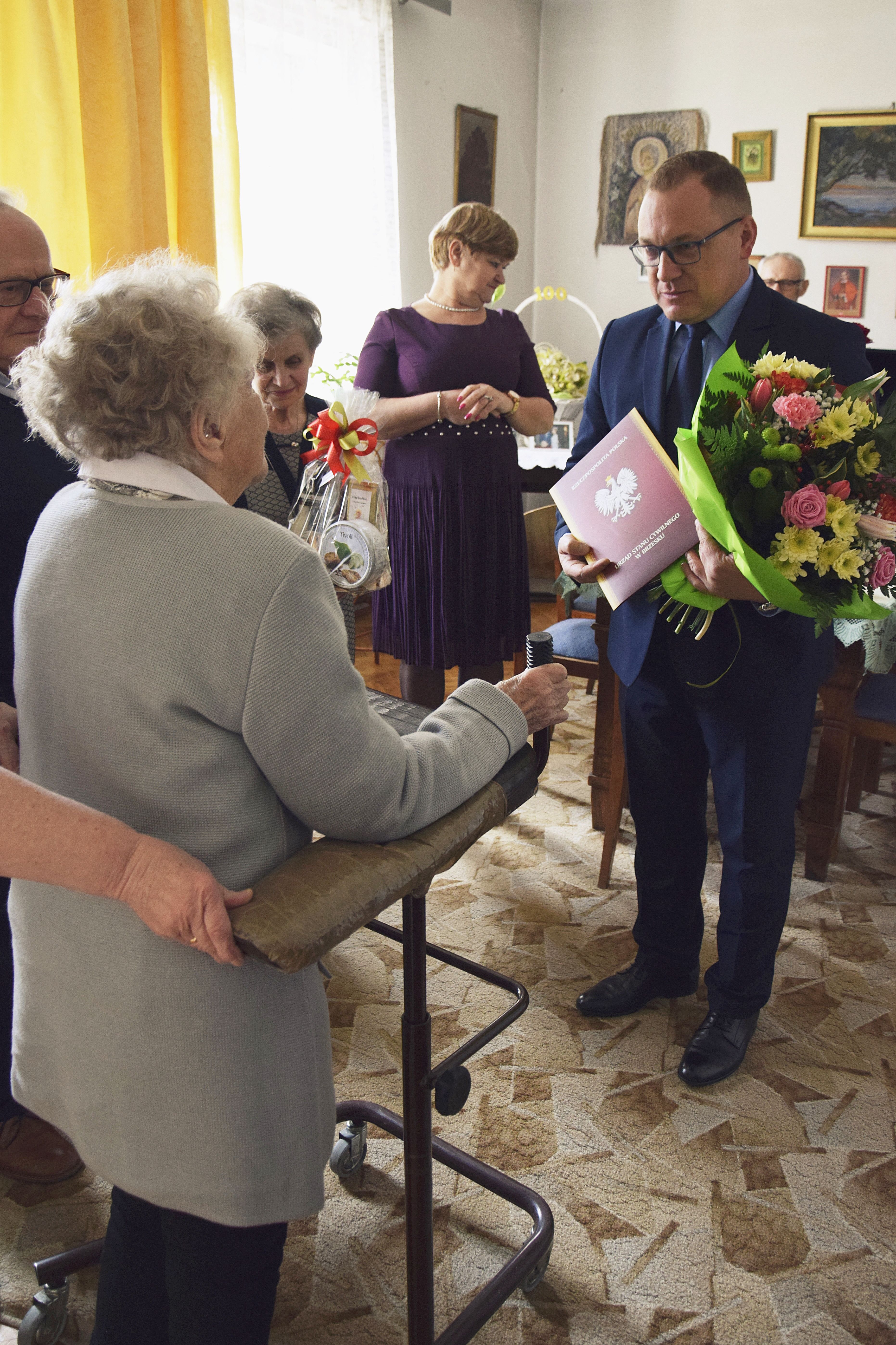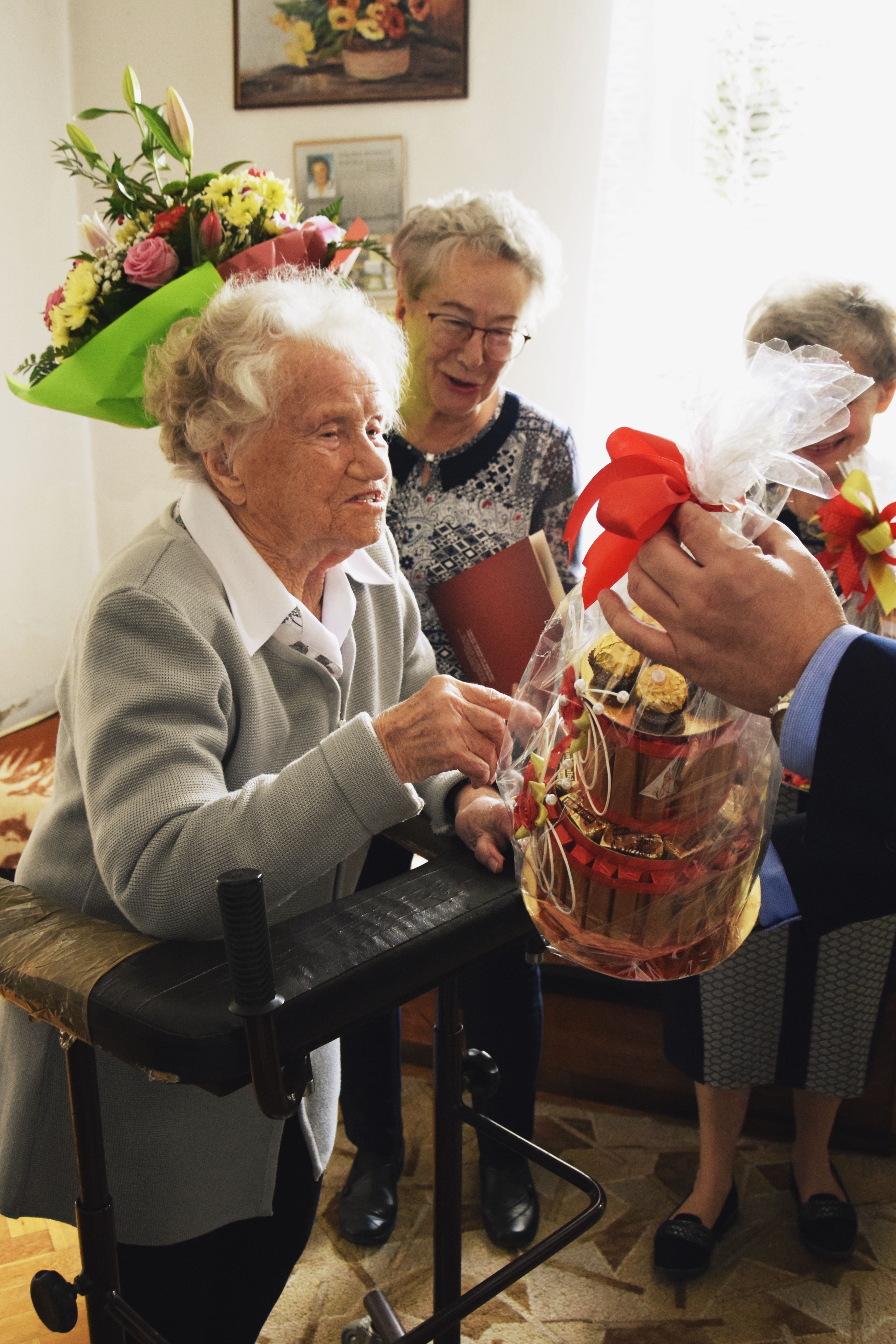Pani Halina Biernat z Brzeska świętowała 102. urodziny, wizytę Jubilatce złożyli radna Maria Kucia, szefowa Urzędu Stanu Cywilnego Aleksandra Fijałkowska oraz burmistrz Tomasz Latocha, który składał Pani Halinie życzenia oraz wręczył okolicznościowy list i kwiaty.
