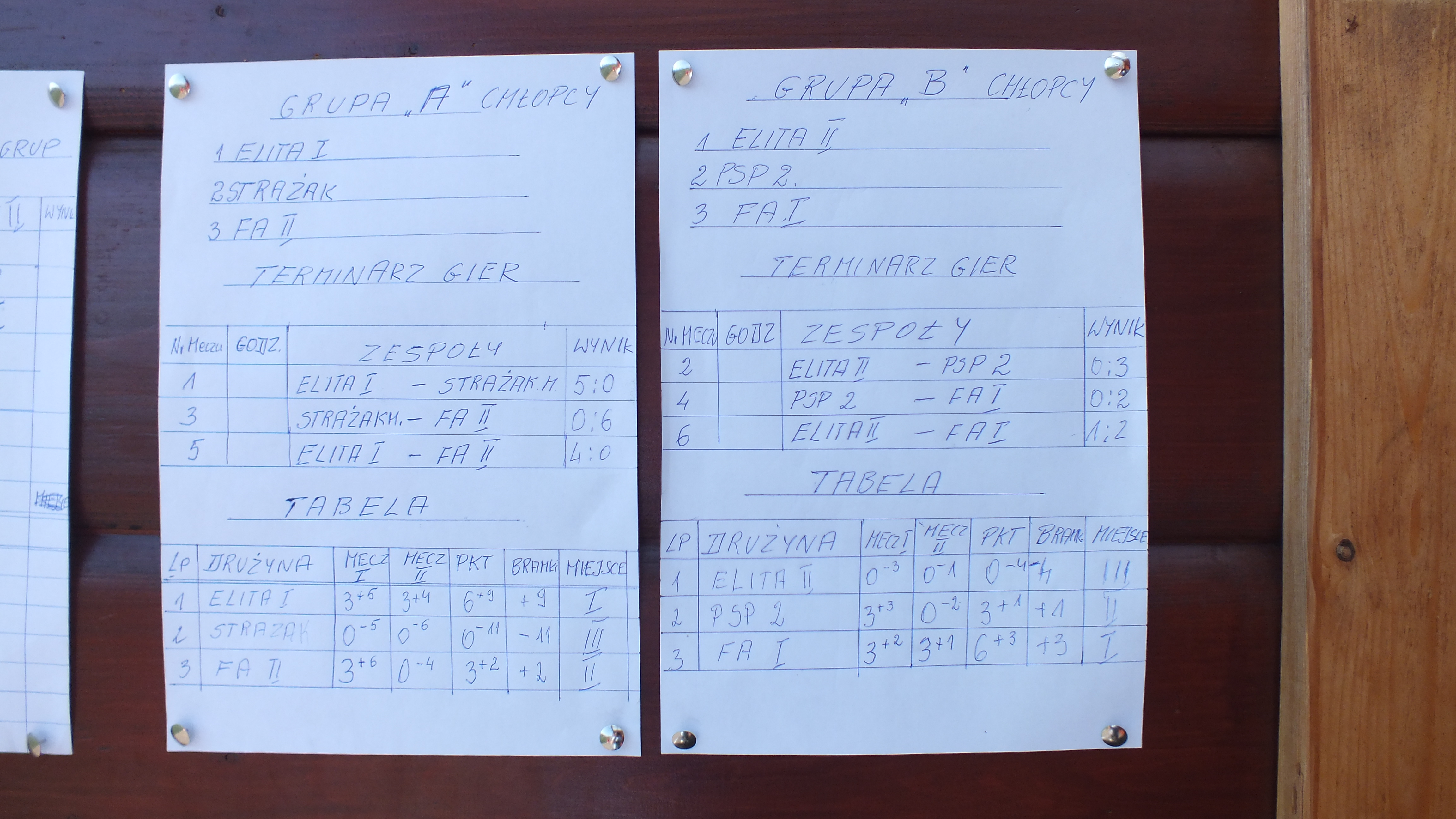 Wyniki turniejuDziewczęta: 1.Dębno, 2.Aslan Jadowniki, 3.Mokrzyska, 4.Volley.Chłopcy: 1.Footbal Academy 1, 2.PSP nr 2 Brzesko, 3.Elita 1, 4.Footbal Academy 2, 5. Elita 2, 6. Strażak Mokrzyska.
