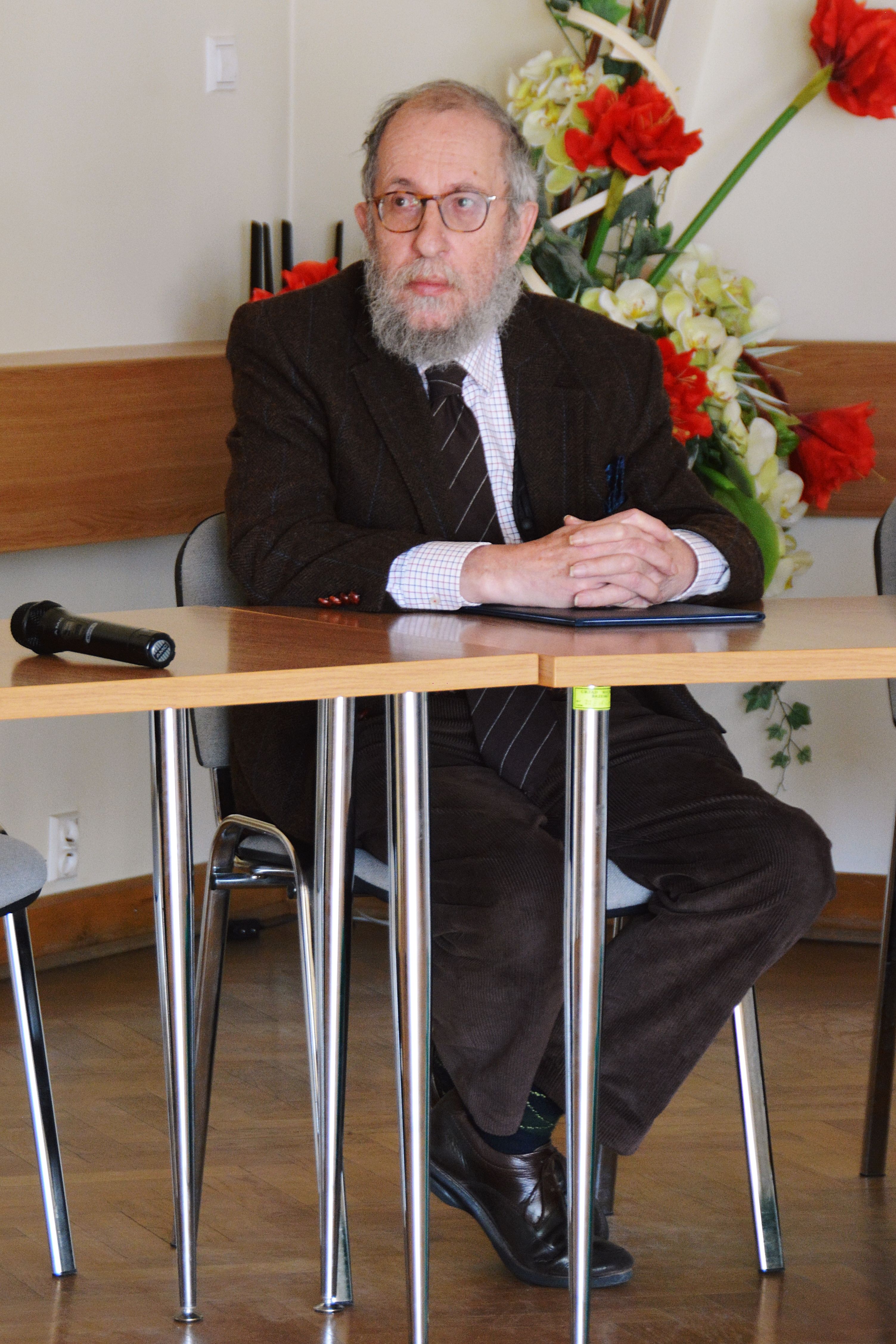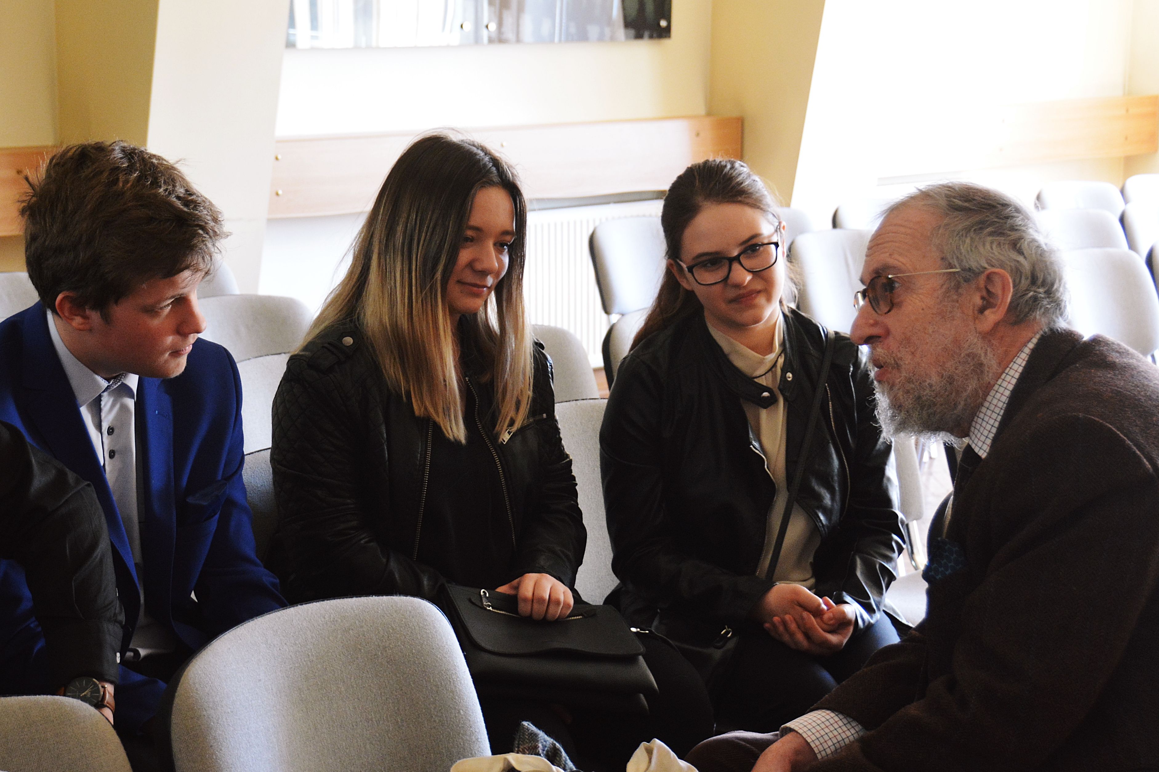Młodzież z wielką uwagą słuchała wykładu przygotowanego przez prof. Jonathana Webbera - brytyjskiego antropologa społecznego, profesora w Instytucie Europeistyki Uniwersytetu Jagiellońskiego. Przez dwadzieścia lat wykładał na Uniwersytecie w Oksfordzie, a następnie, przez osiem lat, do 2010 roku, kierował Katedrą UNESCO do Badań Stosunków Międzywyznaniowych przy Uniwersytecie w Birmingham. Członek-założyciel Międzynarodowej Rady Oświęcimskiej. Od 1989 sprawuje honorowy urząd skarbnika w Instytucie Studiów Polsko-Żydowskich w Oksfordzie. Do licznych przedsięwzięć, którym przewodniczył lub których był organizatorem, należą m.in. wspólny brytyjsko-niemiecko-polski projekt, dotyczący społeczeństwa i zmian społecznych w Europie po Auschwitz, założenie Europejskiego Stowarzyszenia Studiów nad Holokaustem oraz cztery międzynarodowe konferencje na temat przyszłości Oświęcimia. Odznaczony złotym Krzyżem Zasługi przez prezydenta Rzeczpospolitej Polskiej, za wkład w dialog polsko-żydowski. Profesor mówił o relacjach panujących między Żydami i Polakami przed wojną, a także o piętnie Holocaustu, które odcisnęło się na ich powojennych stosunkach.