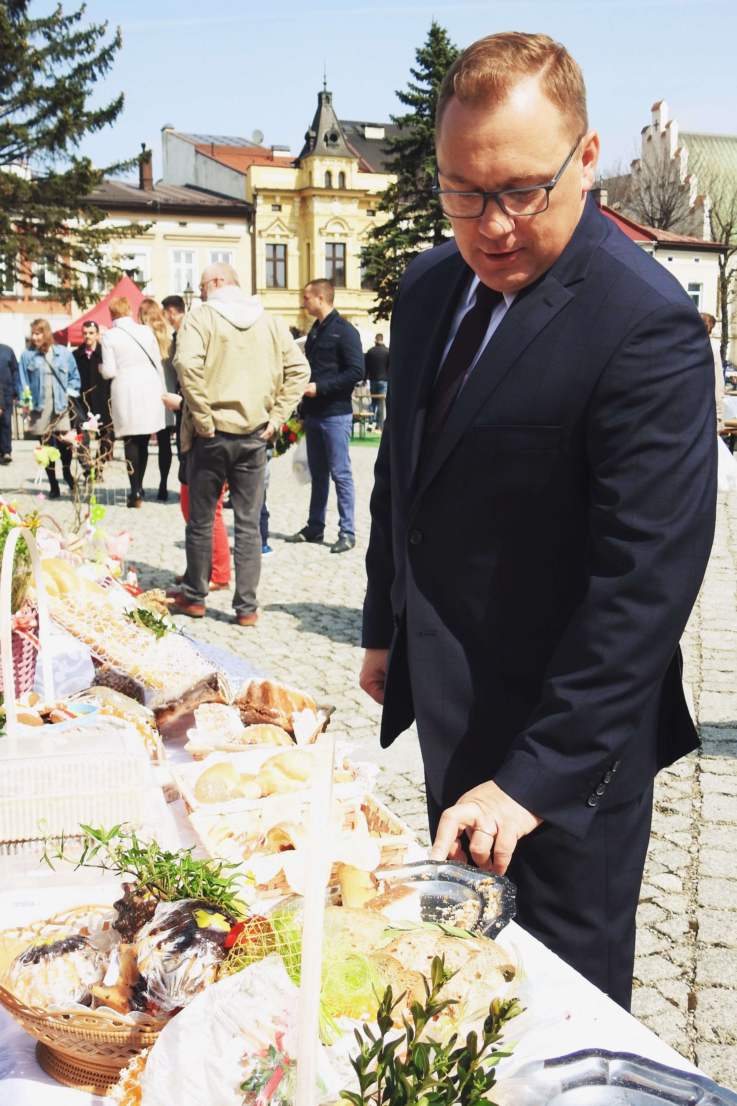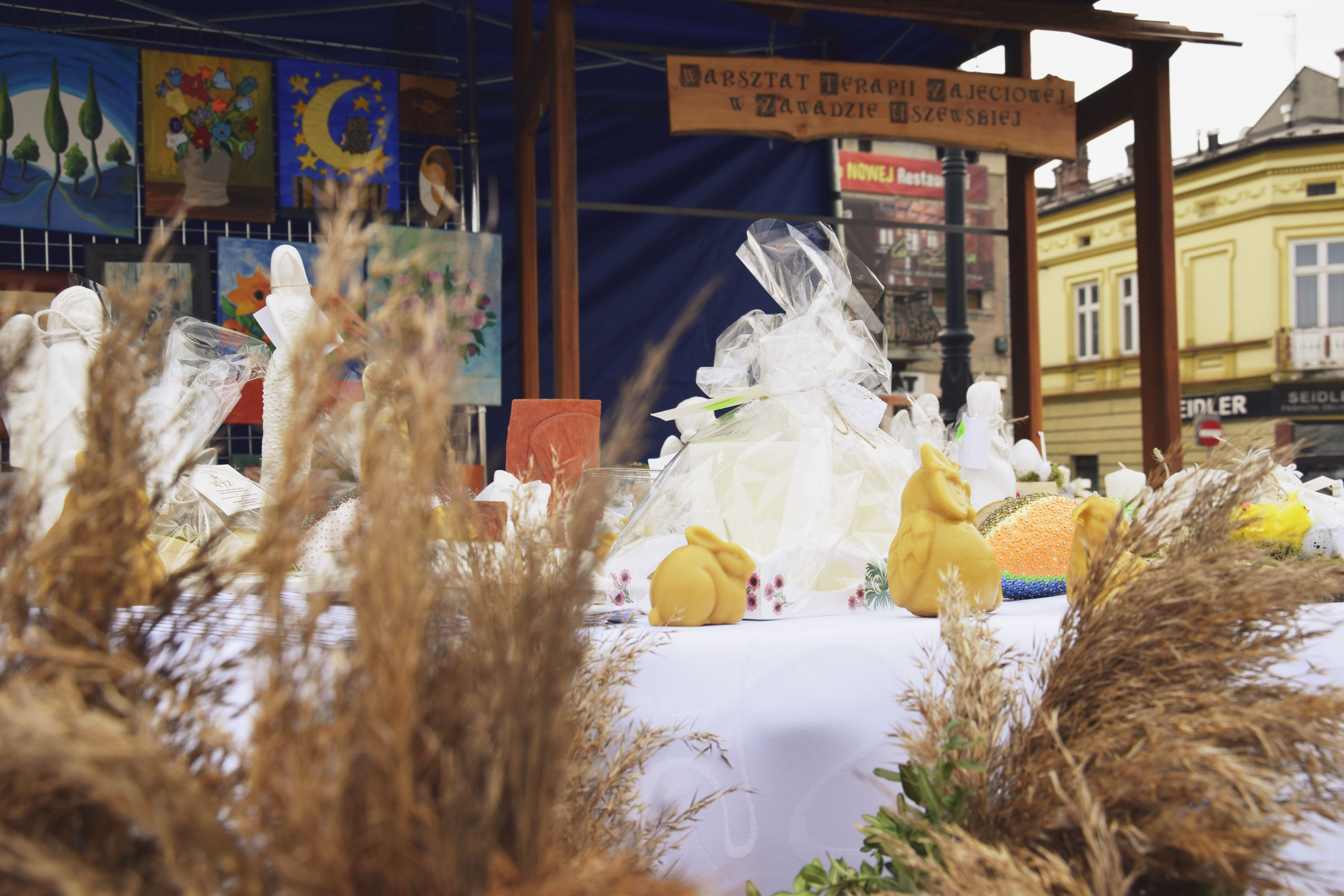 Już od rana Rynek tętnił życiem – czynne były stoiska oferujące świąteczne artykuły – od ozdób stołu i koszyka po znakomite potrawy. Wyśmienita pogoda oraz bogactwo oferowanych produktów spowodowały, że mieszkańcy chętnie robili zakupy, szukali świątecznych inspiracji, a Rynek stał się miejscem towarzyskich i rodzinnych spotkań. W trakcie jarmarku odbył się konkurs na najwyższą i najładniejszą wielkanocną palmę. Wzięło w nim udział kilkadziesiąt osób. Zwycięzcy zostali nagrodzeni przez burmistrza Tomasza Latochę.