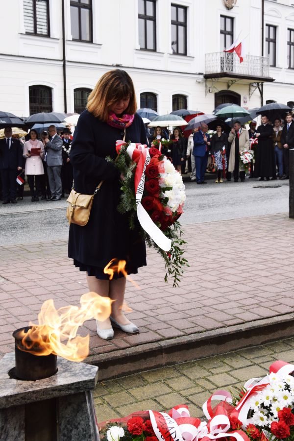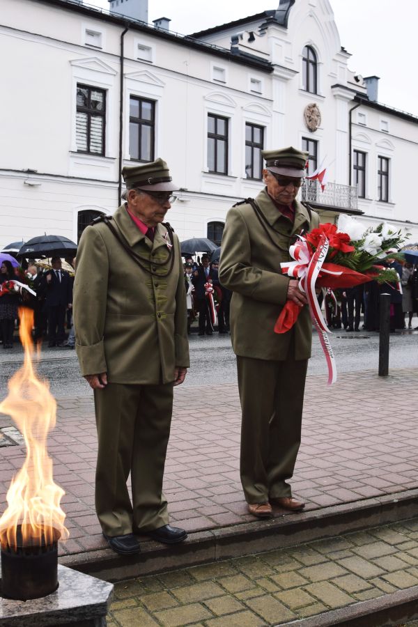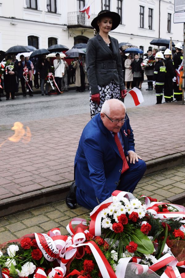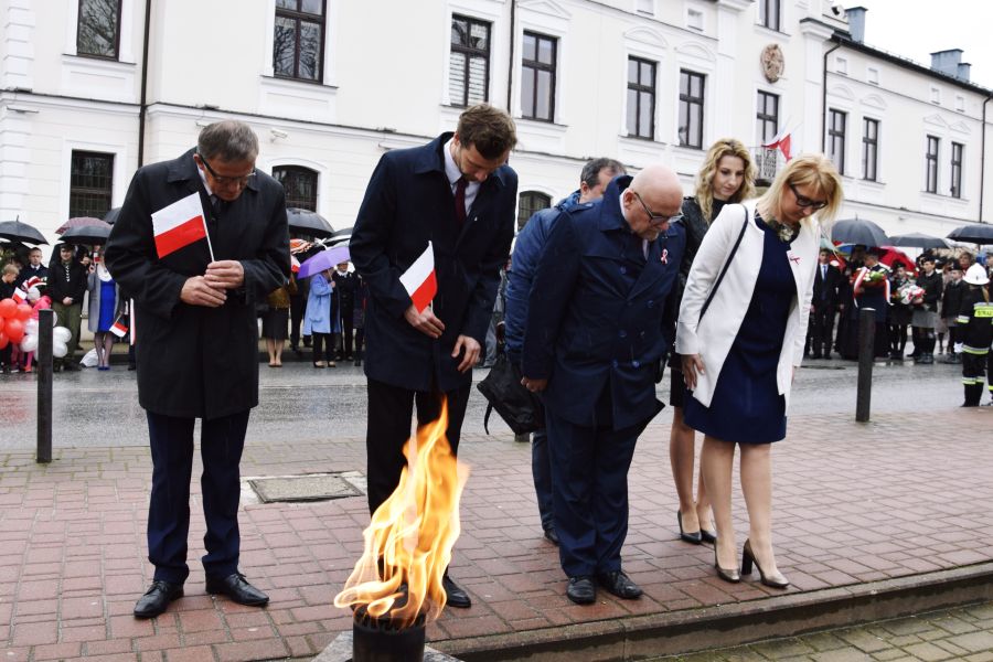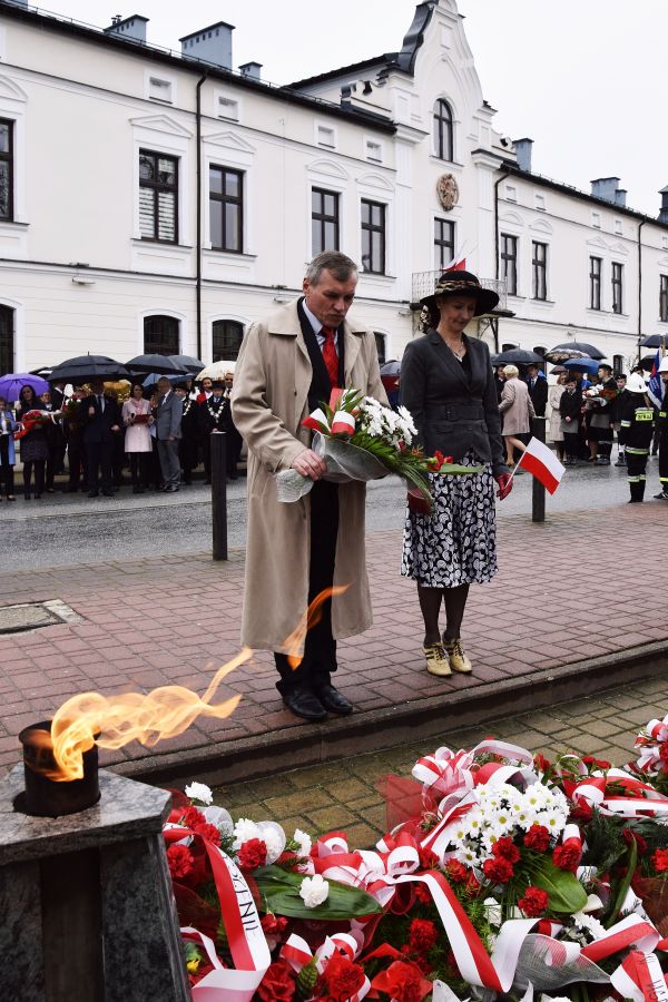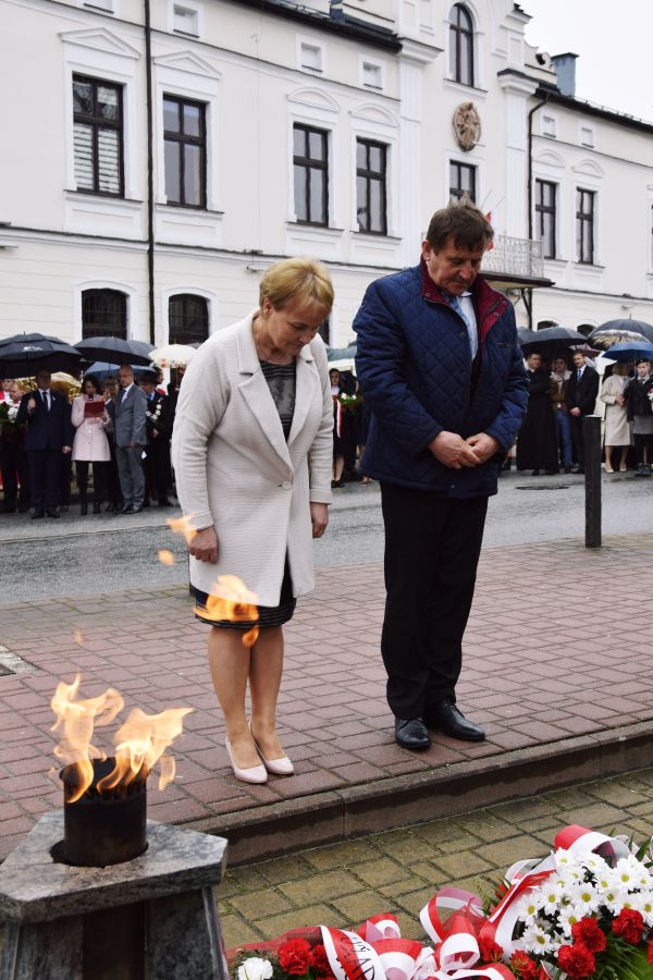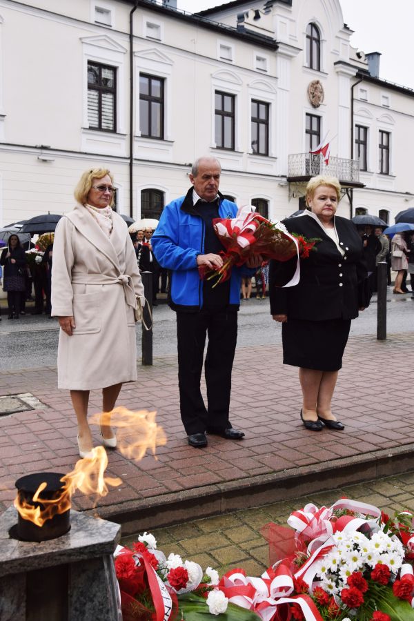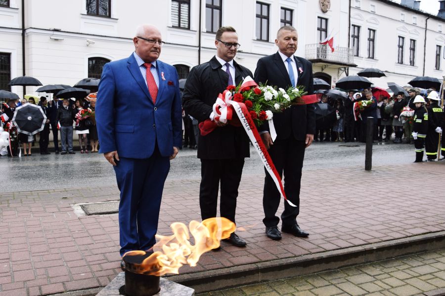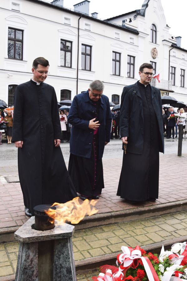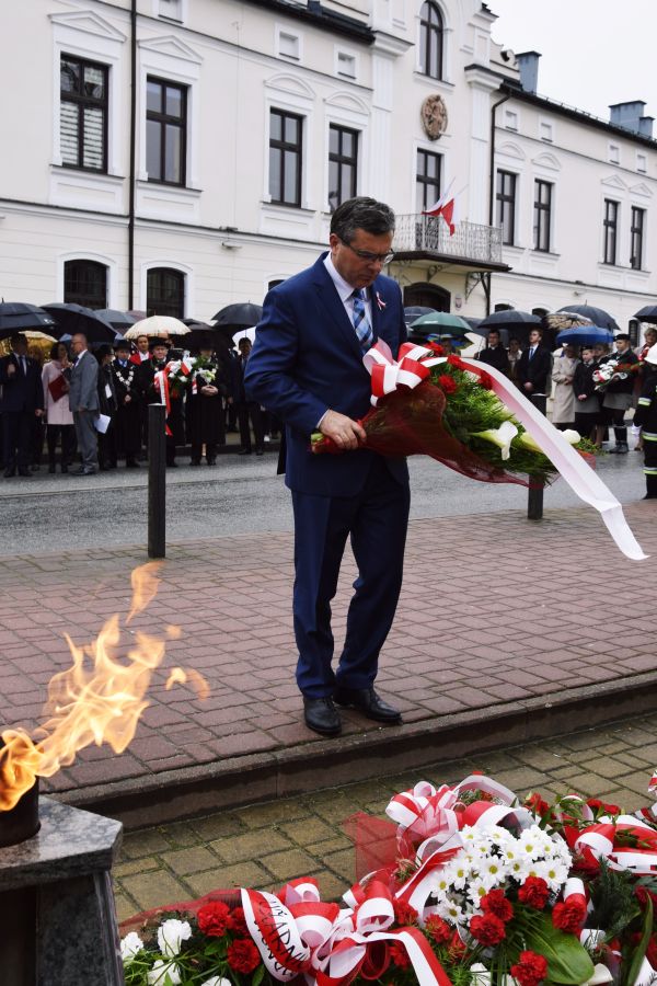 Po mszy, ulicami Chopina, Legionów Piłsudskiego, Ogrodową, Władysława Jagiełły i Kościuszki jej uczestnicy przeszli pod Pomnik Nieznanego Żołnierza, gdzie składano kwiaty. W imieniu mieszkańców kwiaty składał burmistrz Tomasz Latocha wraz z radnymi – Marią Kucią, Piotrem Dudą i Rafałem Cichońskim. Kwiaty składali także minister Józefa Szczurek-Żelazko, europoseł Edward Czesak, marszałek województwa małopolskiego Marta Malec-Lech, przedstawiciele władz powiatowych z wicestarostą Maciejem Podobińskim, dziecięce drużyny pożarnicze z Poręby Spytkowskiej i Jadownik, harcerze, delegacje partii politycznych, związków zawodowych, zakładów pracy, stowarzyszeń oraz szkół z terenu gminy Brzesko.