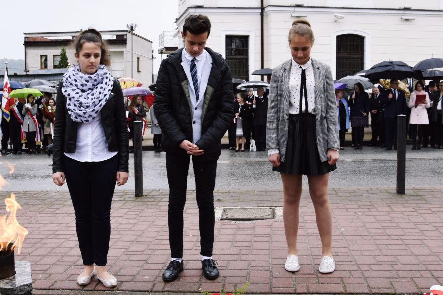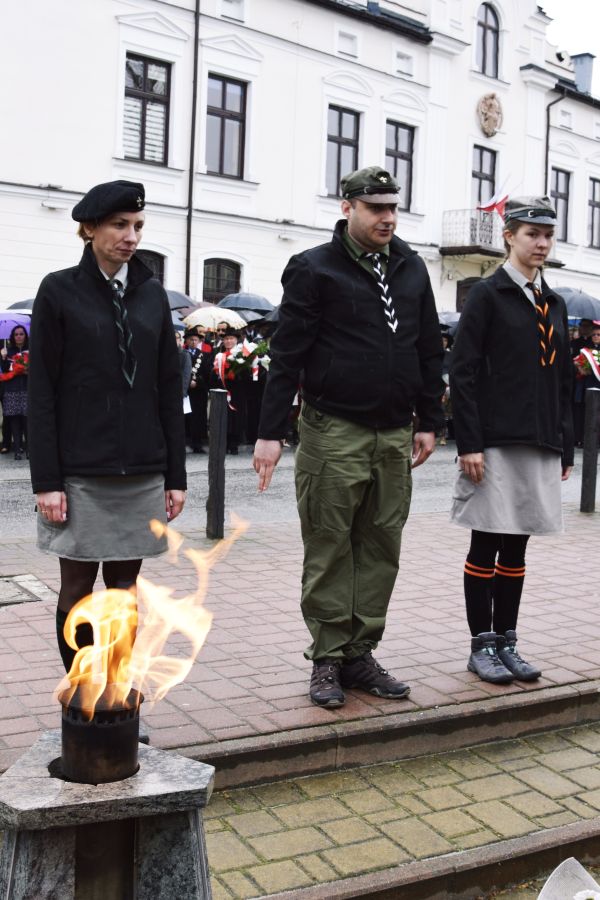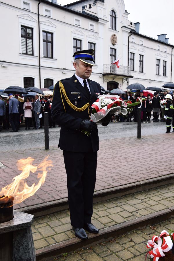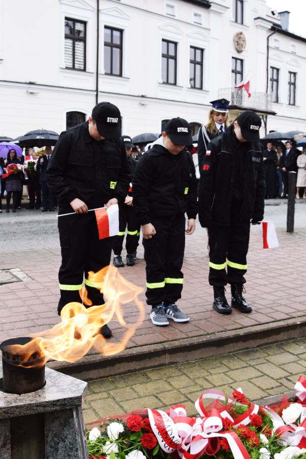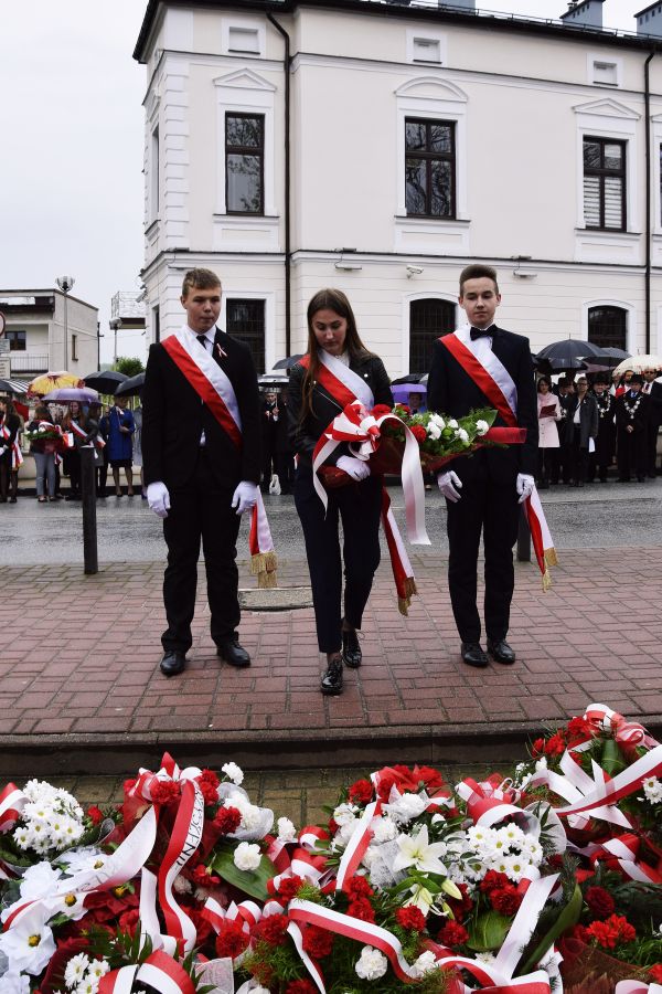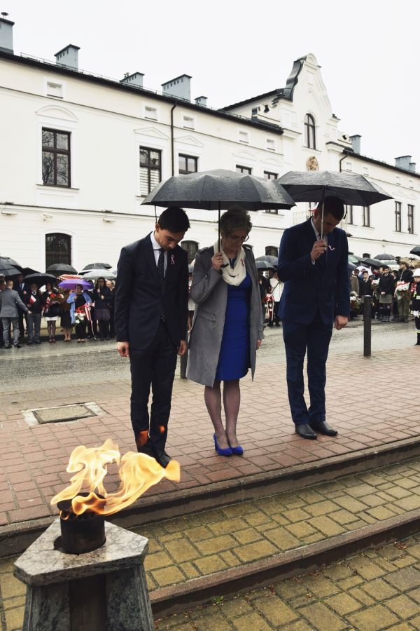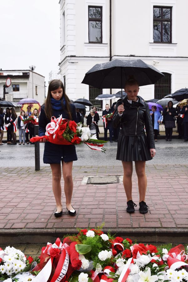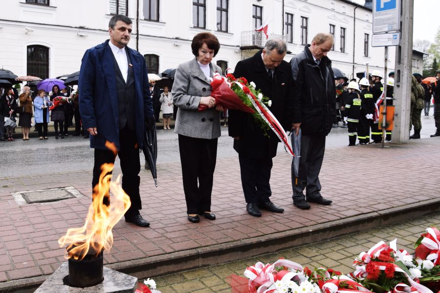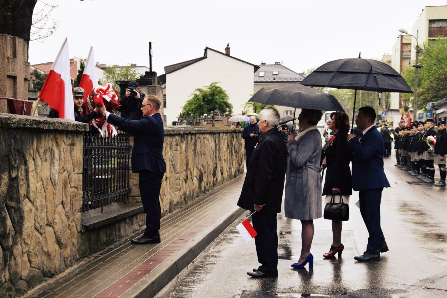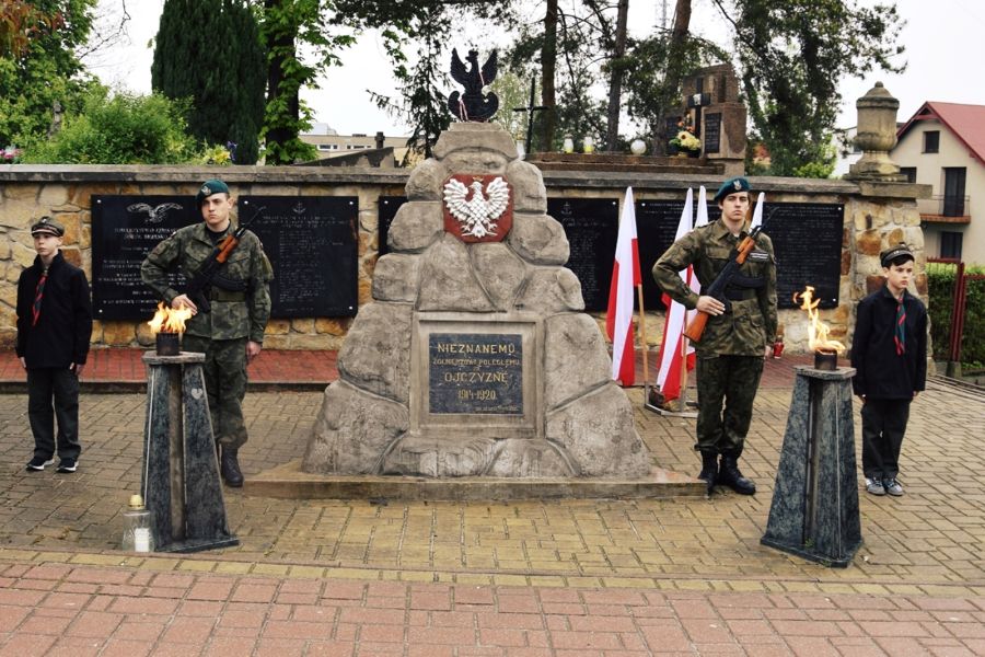 Po mszy, ulicami Chopina, Legionów Piłsudskiego, Ogrodową, Władysława Jagiełły i Kościuszki jej uczestnicy przeszli pod Pomnik Nieznanego Żołnierza, gdzie składano kwiaty. W imieniu mieszkańców kwiaty składał burmistrz Tomasz Latocha wraz z radnymi – Marią Kucią, Piotrem Dudą i Rafałem Cichońskim. Kwiaty składali także minister Józefa Szczurek-Żelazko, europoseł Edward Czesak, marszałek województwa małopolskiego Marta Malec-Lech, przedstawiciele władz powiatowych z wicestarostą Maciejem Podobińskim, dziecięce drużyny pożarnicze z Poręby Spytkowskiej i Jadownik, harcerze, delegacje partii politycznych, związków zawodowych, zakładów pracy, stowarzyszeń oraz szkół z terenu gminy Brzesko.