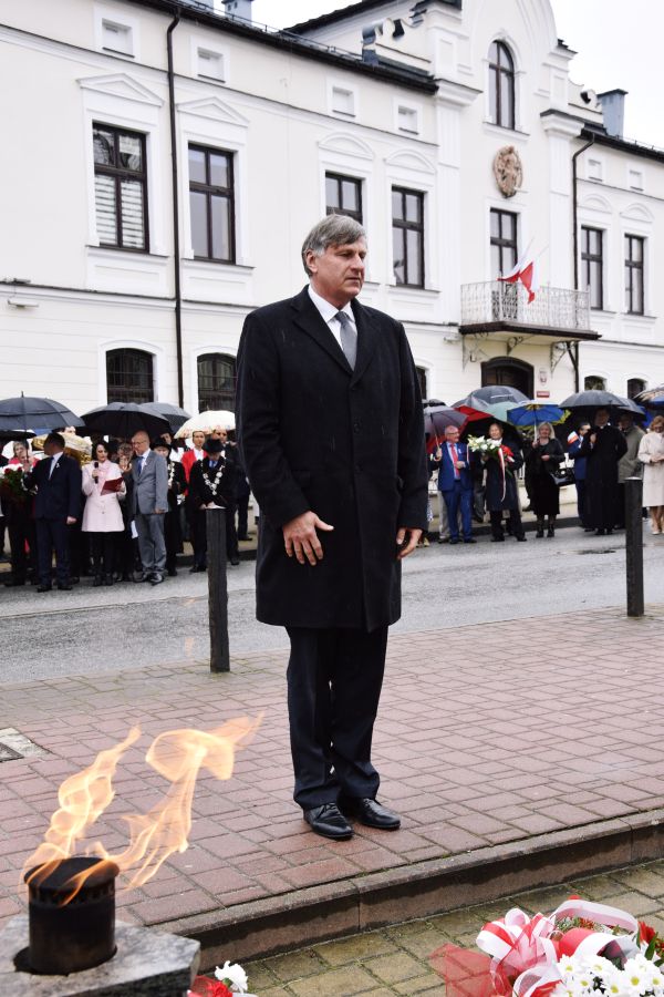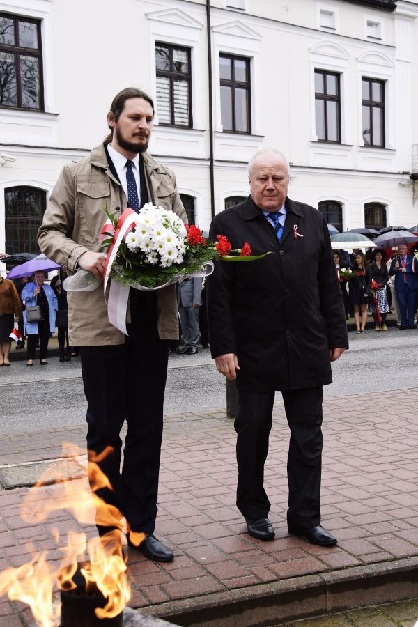 Burmistrz Tomasz Latocha wraz z grupą radnych złożyli także kwiaty pod pomnikiem upamiętniającym mieszkańców ziemi brzeskiej, którzy zostali pomordowani w hitlerowskich więzieniach i obozach zagłady.