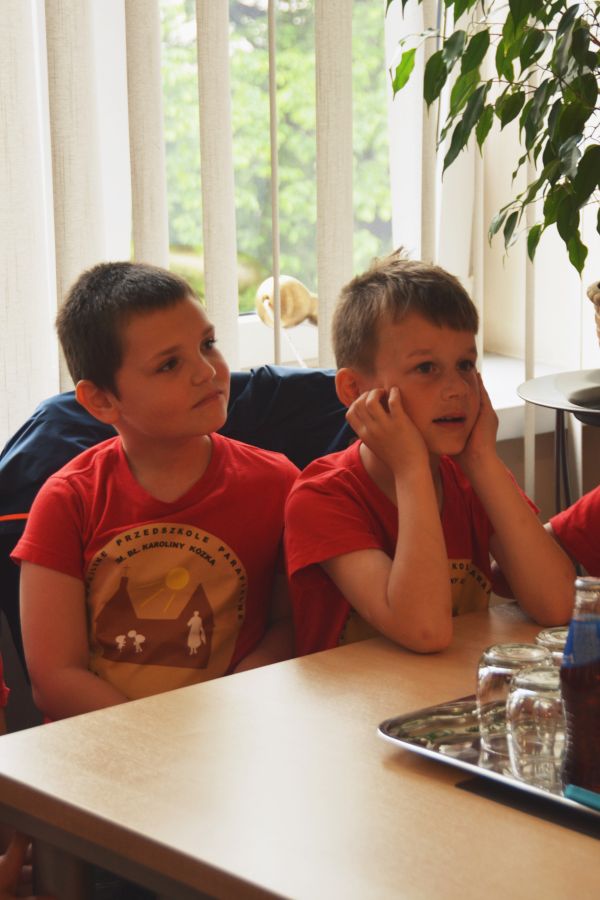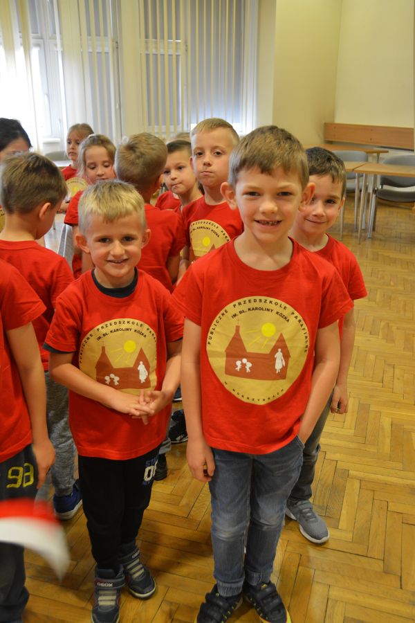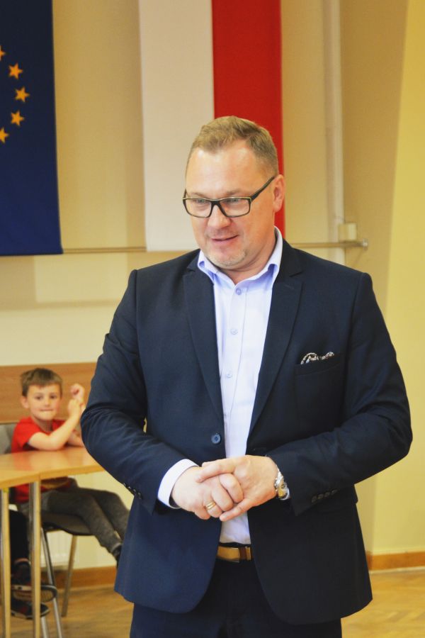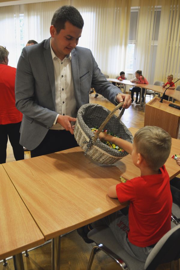 Na zakończenie miłej wizyty dzieci dostały słodycze, był też czas na zrobienie pamiątkowej fotografii. Burmistrzowi towarzyszył wiceprzewodniczący rady miejskiej, Kamil Trąba.
