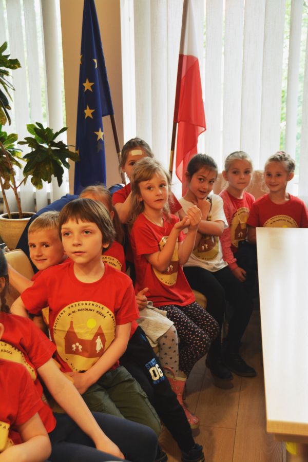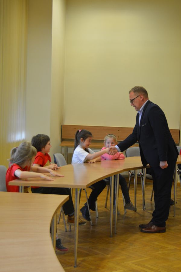 Maluchy z przedszkola z Mokrzysk przyjechały z wizytą do Urzędu Miejskiego w Brzesku. Miłych gości przyjął burmistrz Tomasz Latocha, który w przystępny sposób tłumaczył dzieciom, na czym polega zarządzanie gminą. W czasie oglądania sali obrad maluchy dowiedziały się, jak wygląda praca radnych i stanowienie lokalnego prawa.