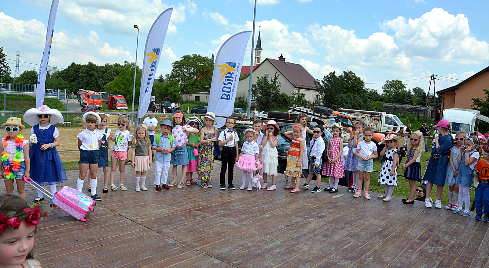 Dla dzieci przygotowano wiele konkursów, zabaw i warsztatów, mogły korzystać z dmuchanych zjeżdżalni, symulatorów gry, zabaw z chustą animacyjną, były przejażdżki na kucyku, milusińscy mogli zwiedzać strażackie i policyjne auta. Było także malowanie twarzy, bańki mydlane, grill, lody, popcorn i przede wszystkim cudowna atmosfera. Dzieci z radością brały udział w warsztatach kulinarnych, plastycznych, języka angielskiego, układania kwiatów, rzeźbiarskich i pierwszej pomocy. Odbywały się także pokazy aut terenowych i zabytkowych. Dzięki firmom Koral i Mrozik burmistrz Tomasz Latocha mógł częstować dzieci pysznymi lodami.