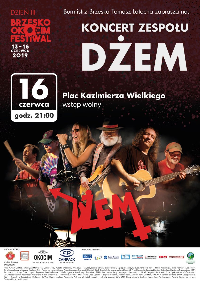 Burmistrz Brzeska Tomasz Latocha, starosta Andrzej Potępa i Miejski Ośrodek Kultury zapraszają na cykl imprez przygotowanych w ramach Brzesko Okocim Festiwal, który trwać będzie w dniach od 13 do 16 czerwca 2019 roku.