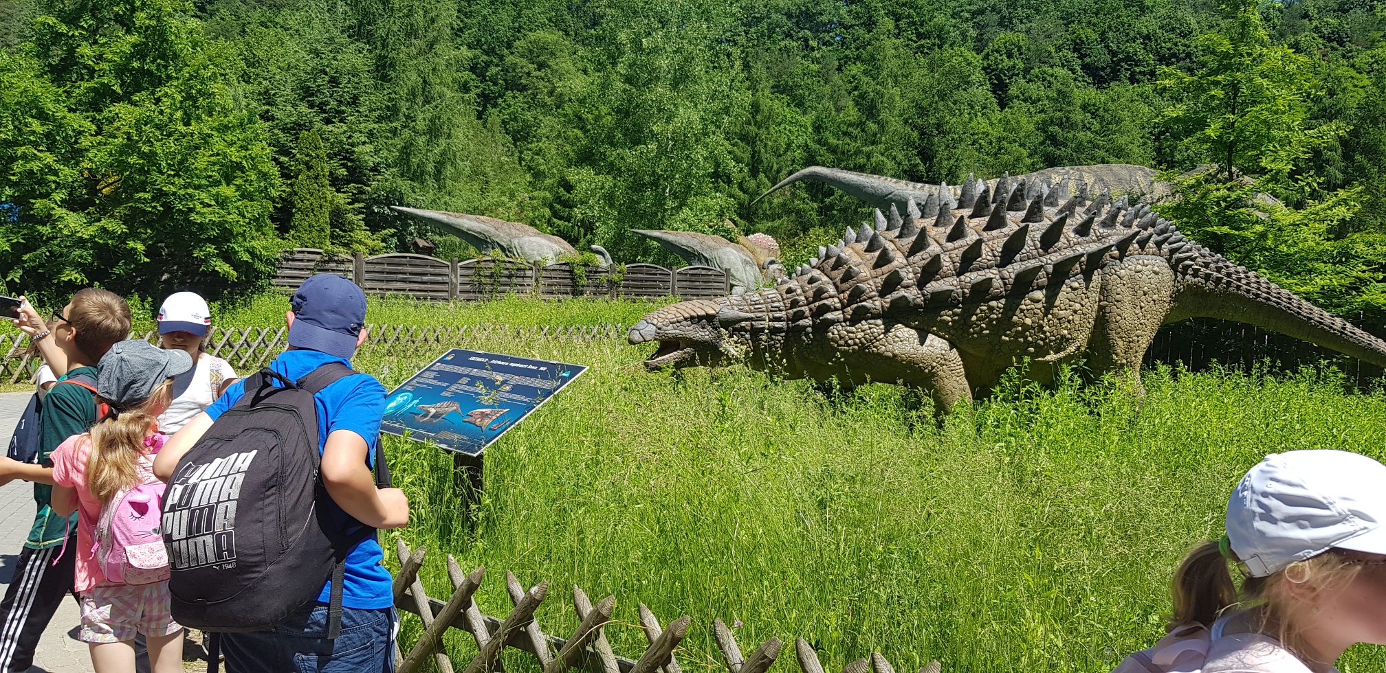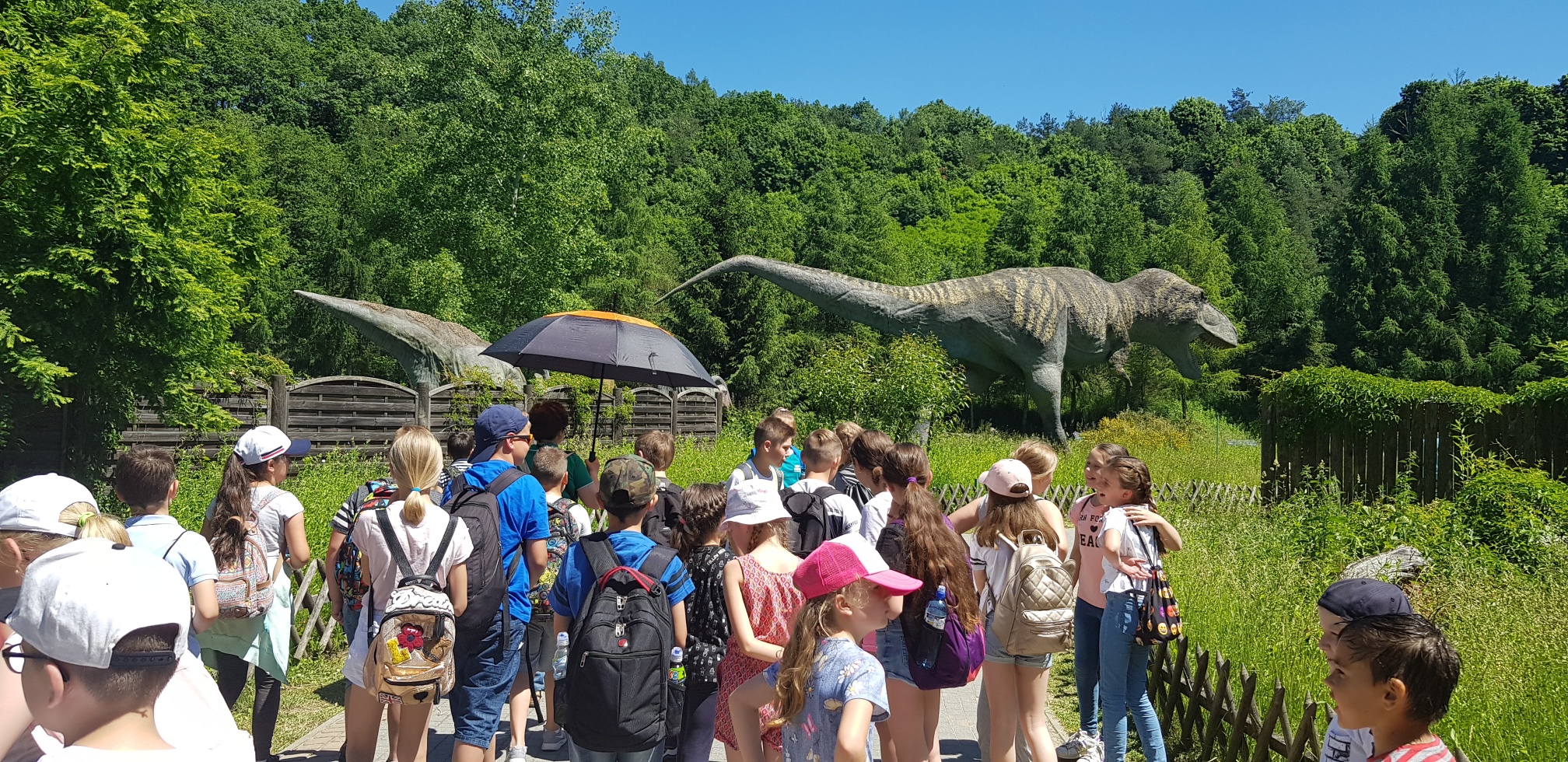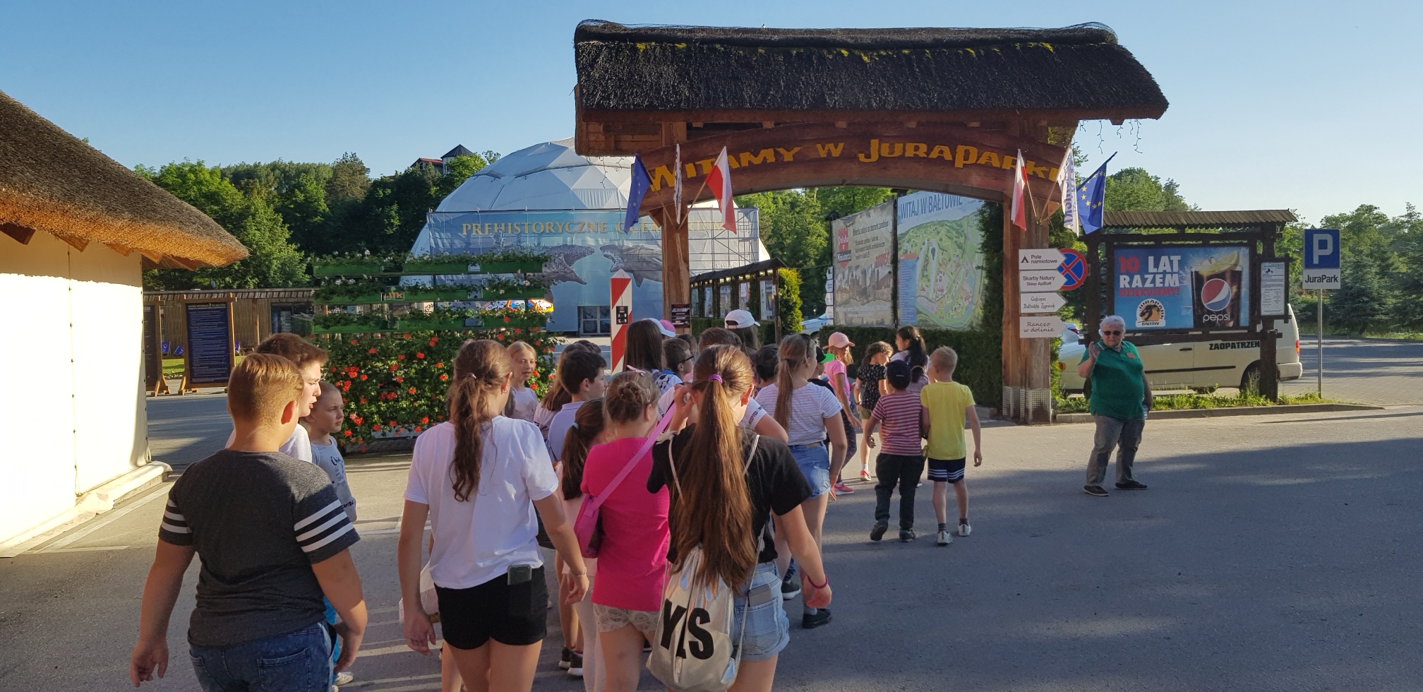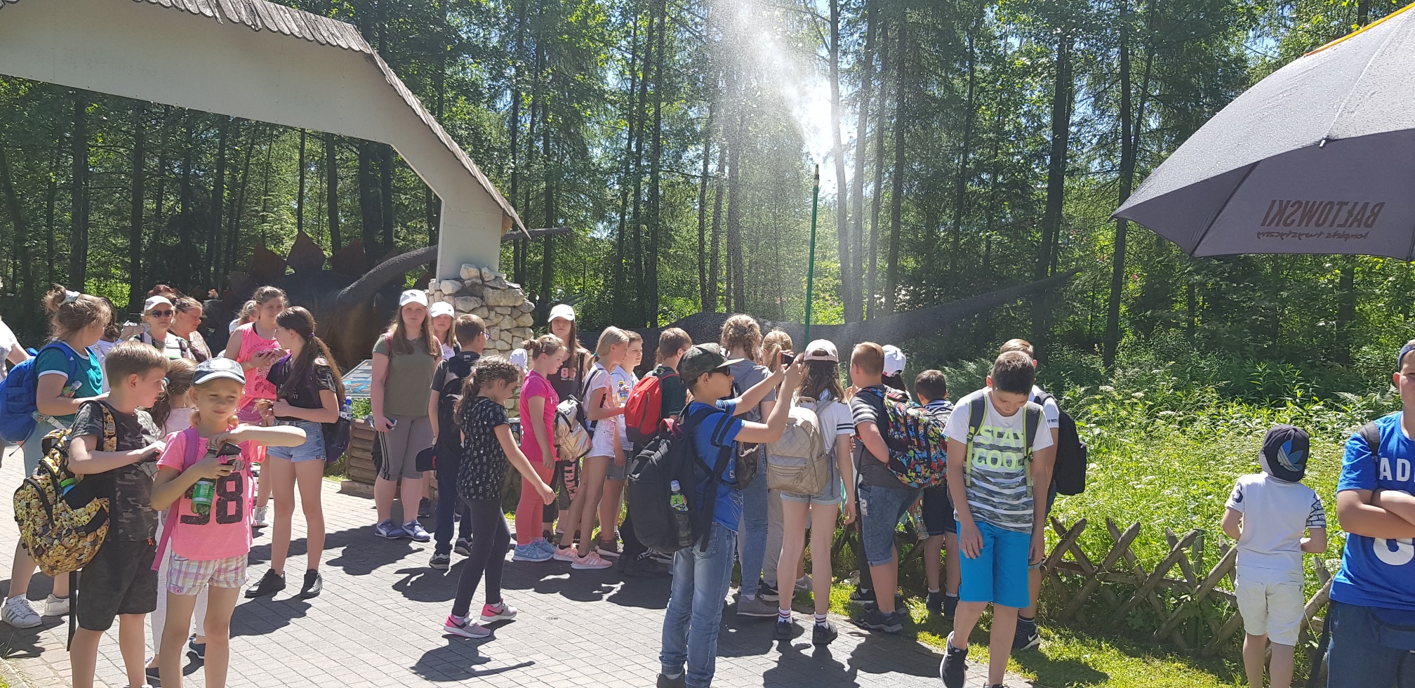 Niezwykłą przygodę z Bałtowem dzieci rozpoczęły od zwiedzania JuraParku, gdzie przeniosły się w czasy prehistoryczne oglądając różne okazy dinozaurów. Dużo emocji wzbudził model roślinożercy jurajskiego – sejsmozaura, którego długość wynosi prawie 50 metrów. Podczas wędrówek bardzo ciekawie o minionych czasach opowiadała oprowadzająca dzieci po parku pani przewodnik. Kolejnym punktem programu wycieczki był Zwierzyniec Bałtowski, tzw. afrykańskie safari. Uczniowie odbyli podróż amerykańskim schoollbusem pomiędzy egzotycznymi zwierzętami, potem w dolnej części zwierzyńca oglądały różnorodne gatunki ptaków i ssaków.