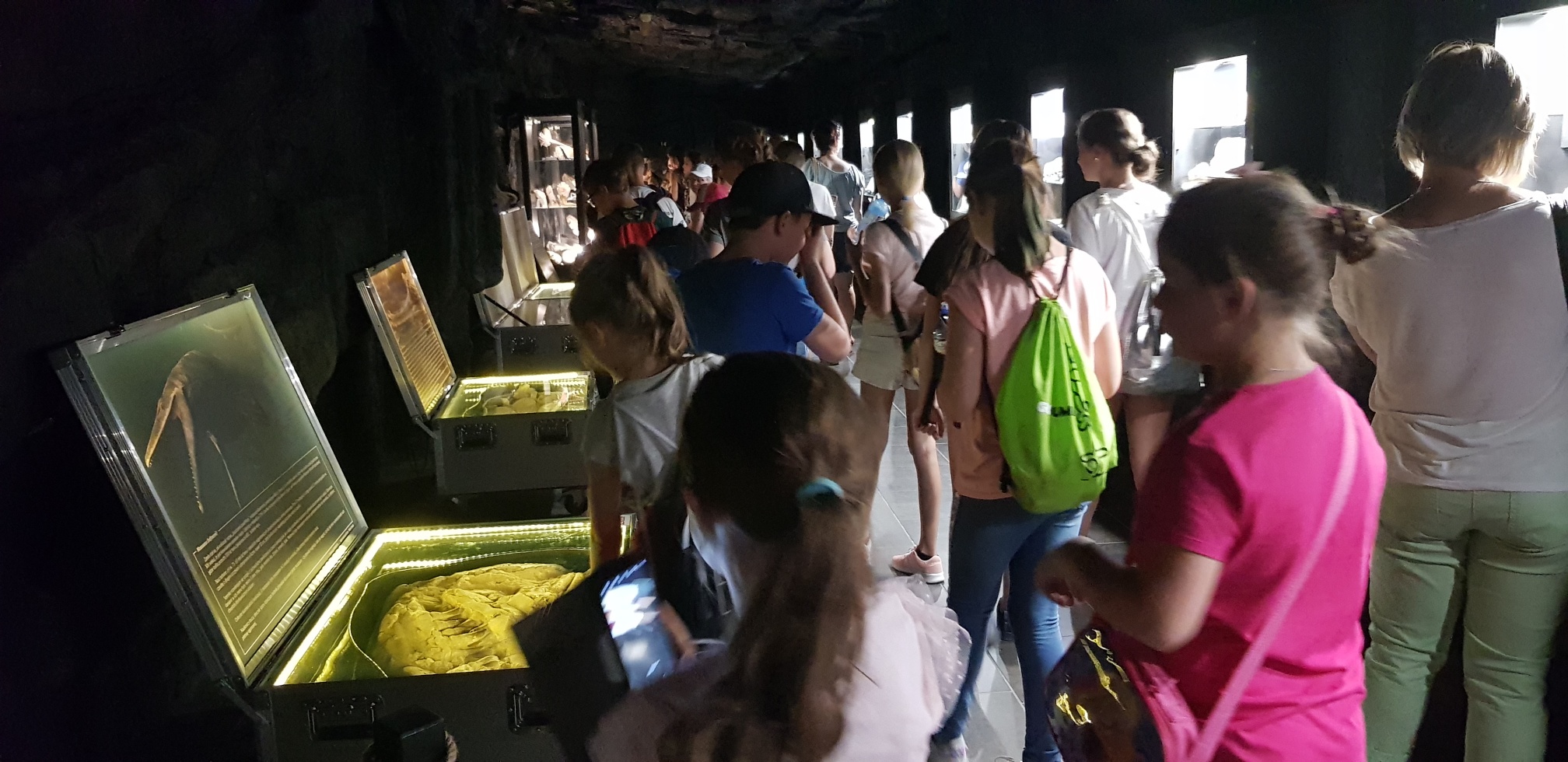 W drugim dniu pobytu dzieci szukały śladów dinozaurów, wraz z przewodnikiem wyruszyły na marszrutę wąwozem zwanym żydowskim jarem. Uczestniczyły także w warsztatach plastyczno-paleontologicznych, podczas których każdy wykonał obrazek przy użyciu kolorowego piasku. Była to świetna lekcja utrwalenia zdobytej wiedzy. Na zakończenie wycieczki była znakomita zabawa w parku rozrywki, gdzie dzieci bez ograniczeń mogły korzystać z karuzel, gier, dmuchańców, trampolin, wielkiego statku pirackiego oraz kina 5D.