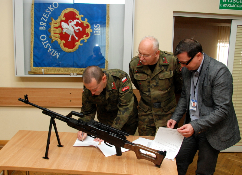 Karabin maszynowy UKM 2000 trafił do brzeskiego Związku "Strzelec", organizacji podarowały go Zakłady Mechaniczne Tarnów. - Jesteśmy dumni z tego, że możemy pomóc organizacji propagującej tak szczytne cele - mówił prezes ZM Krzysztof Jagiełło, podczas przekazania broni, które odbyło się wczoraj w Urzędzie Miejskim. „Strzelec” to organizacja społeczno-wychowawcza, kultywująca ideały braterstwa, posłuszeństwa i męstwa w duchu miłości do ojczyzny. W praktyce stowarzyszenie przygotowuje młodzież do pracy w służbach mundurowych i pracy dla dobra kraju.