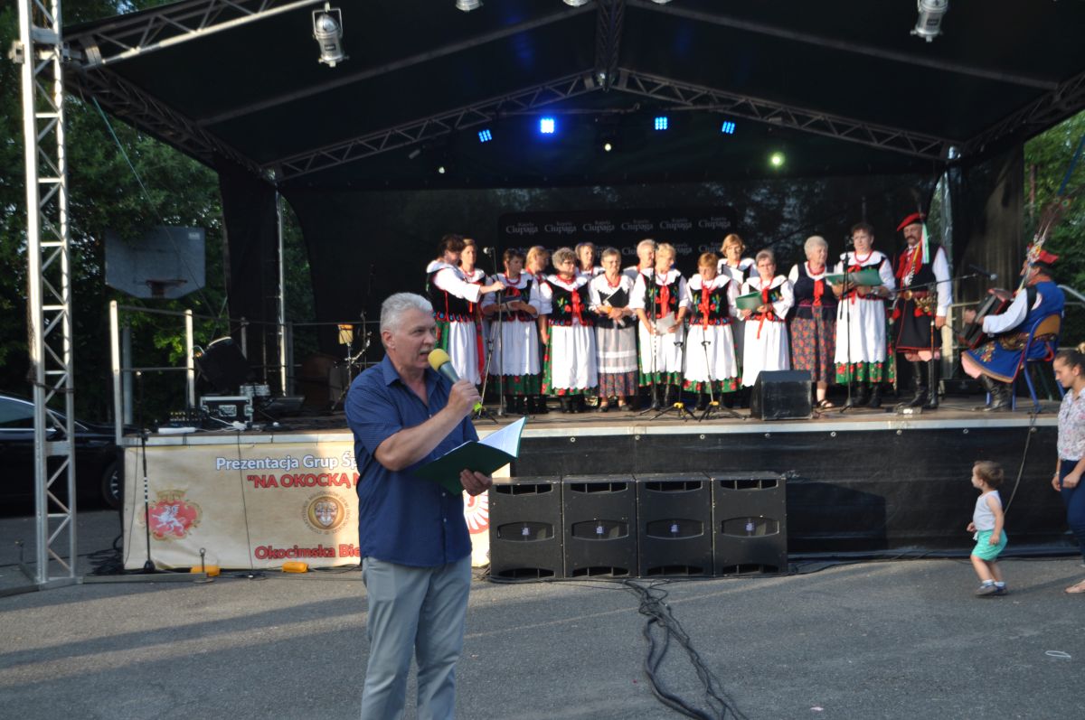 Chwilę potem na scenę wkroczyły grupy i zespoły śpiewacze – Bodzanowianki, Piganeczki i Okocanki. Te ostatnie wystąpiły w nowych strojach zakupionych w ramach grantu realizowanego przez Stowarzyszenie Miłośników Ziemi Okocimskiej w konkursie zorganizowanym przez LGD Kwartet na Przedgórzu.