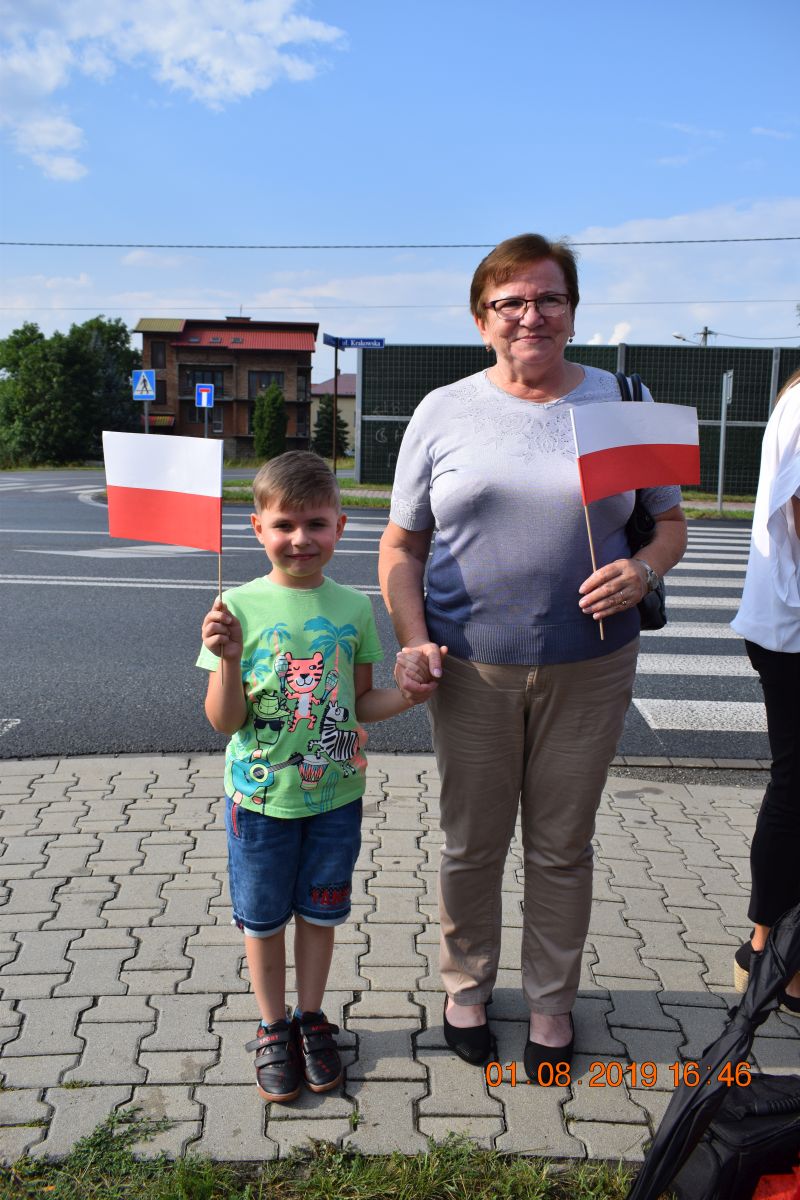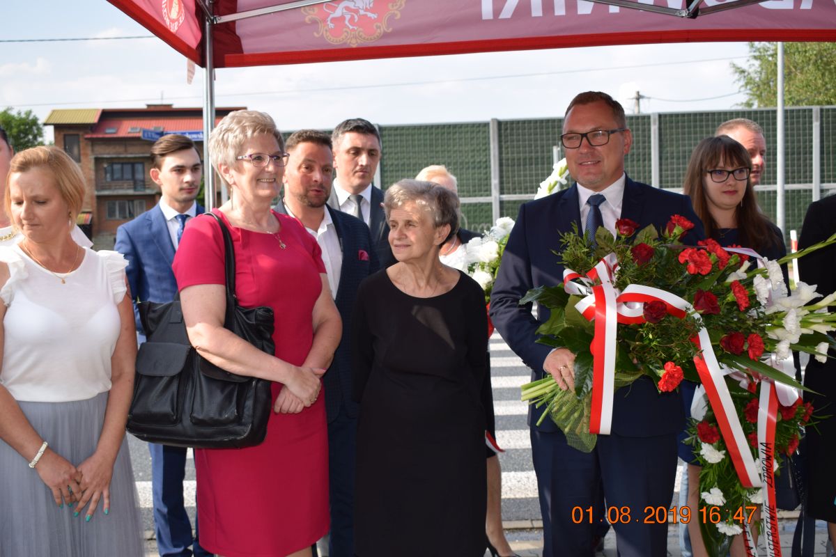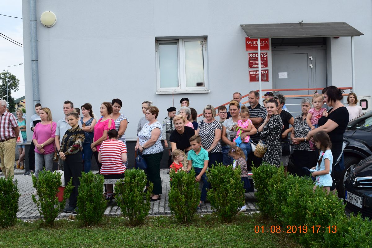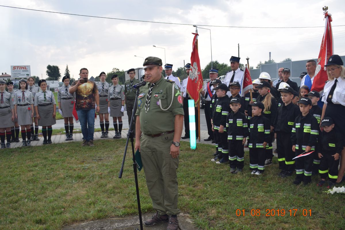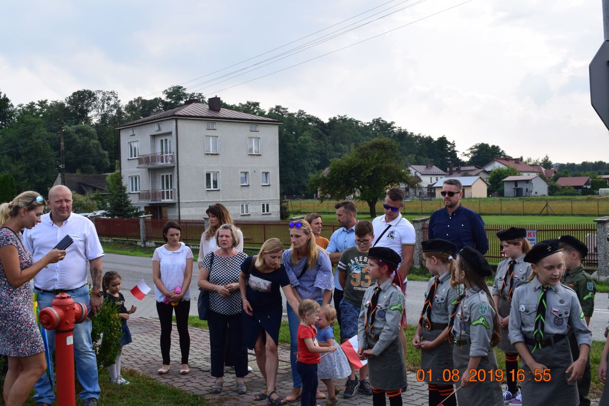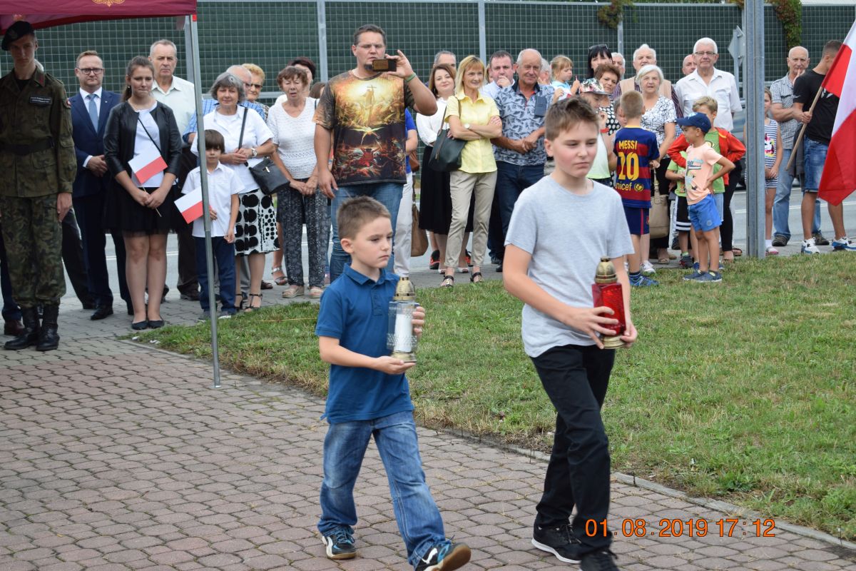 Punktualnie o godzinie 17.00 dźwięk syreny z remizy OSP przypomniał o godzinie rozpoczęcia tego wielkiego, heroicznego zrywu mieszkańców stolicy. Poczet flagowy harcerzy Szczepu Czarnego wciągnął biało-czerwoną flagę na maszt, a zgromadzeni uczestnicy uroczystości odśpiewali hymn Polski. Przedstawiciele przybyłych delegacji złożyli pod obeliskiem wiązanki kwiatów i zapalili znicze. Uczestnicy uroczystości mieli również możliwość obejrzenia w domu ludowym wystawy poświęconej Powstaniu Warszawskiemu.